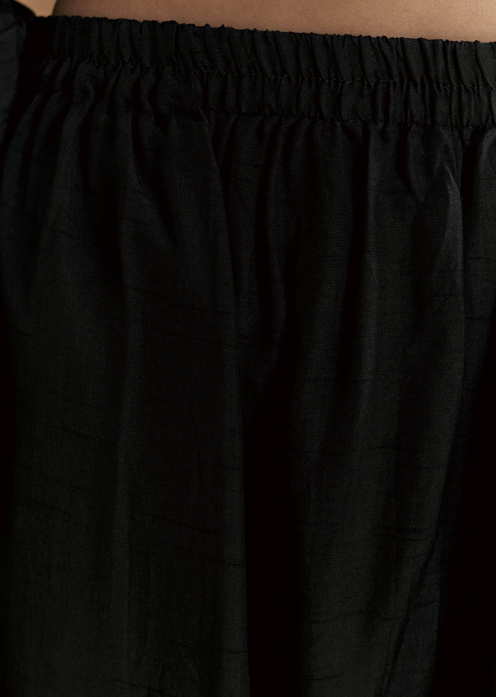 Detail takes the spotlight as this black silk kurta set is traced with zardosi and resham for a crisp, dressy finish. The base remains sleek so the embroidery stands out... More Product Details