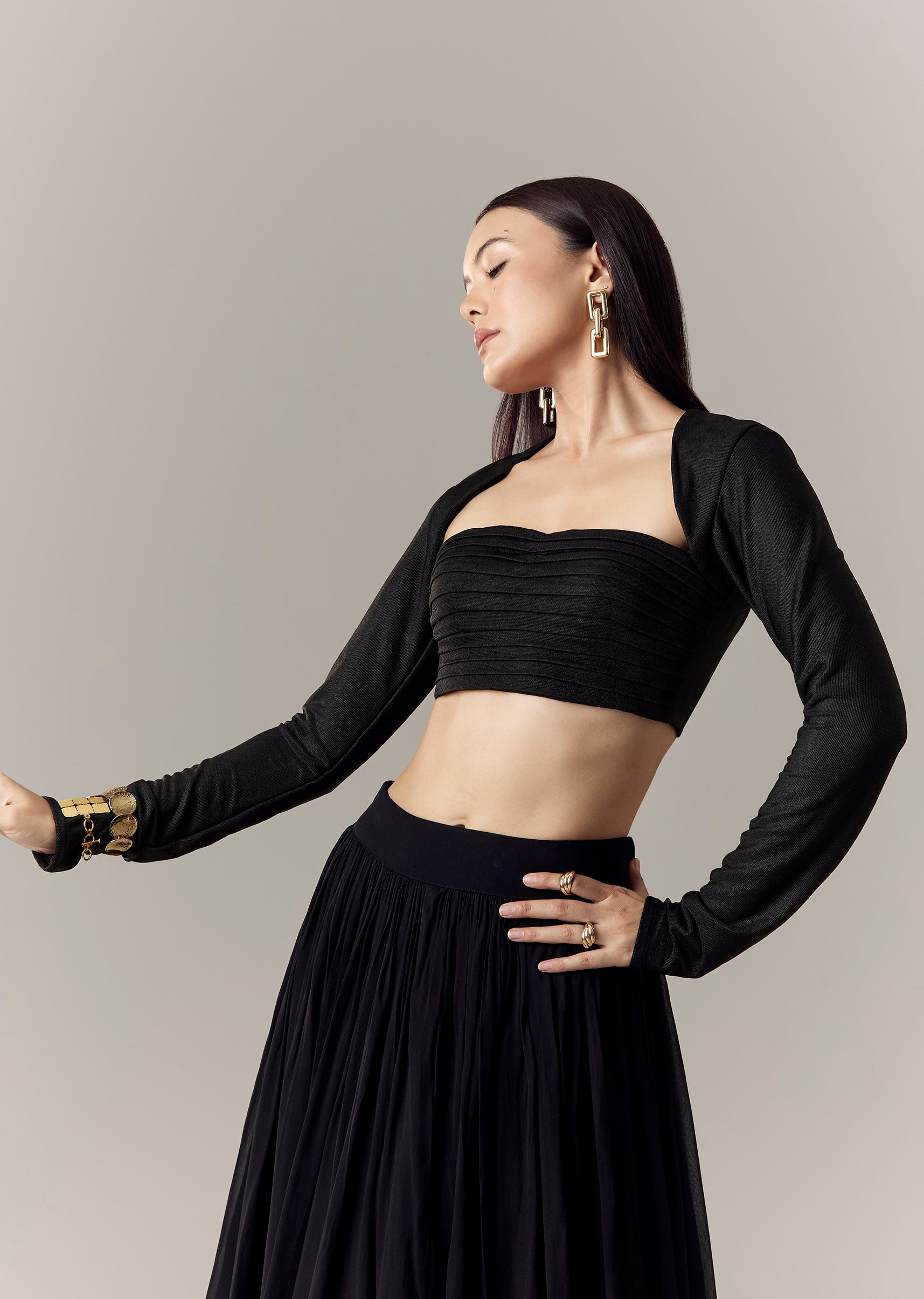 Black Square Neck Full Sleeve Dori Blouse