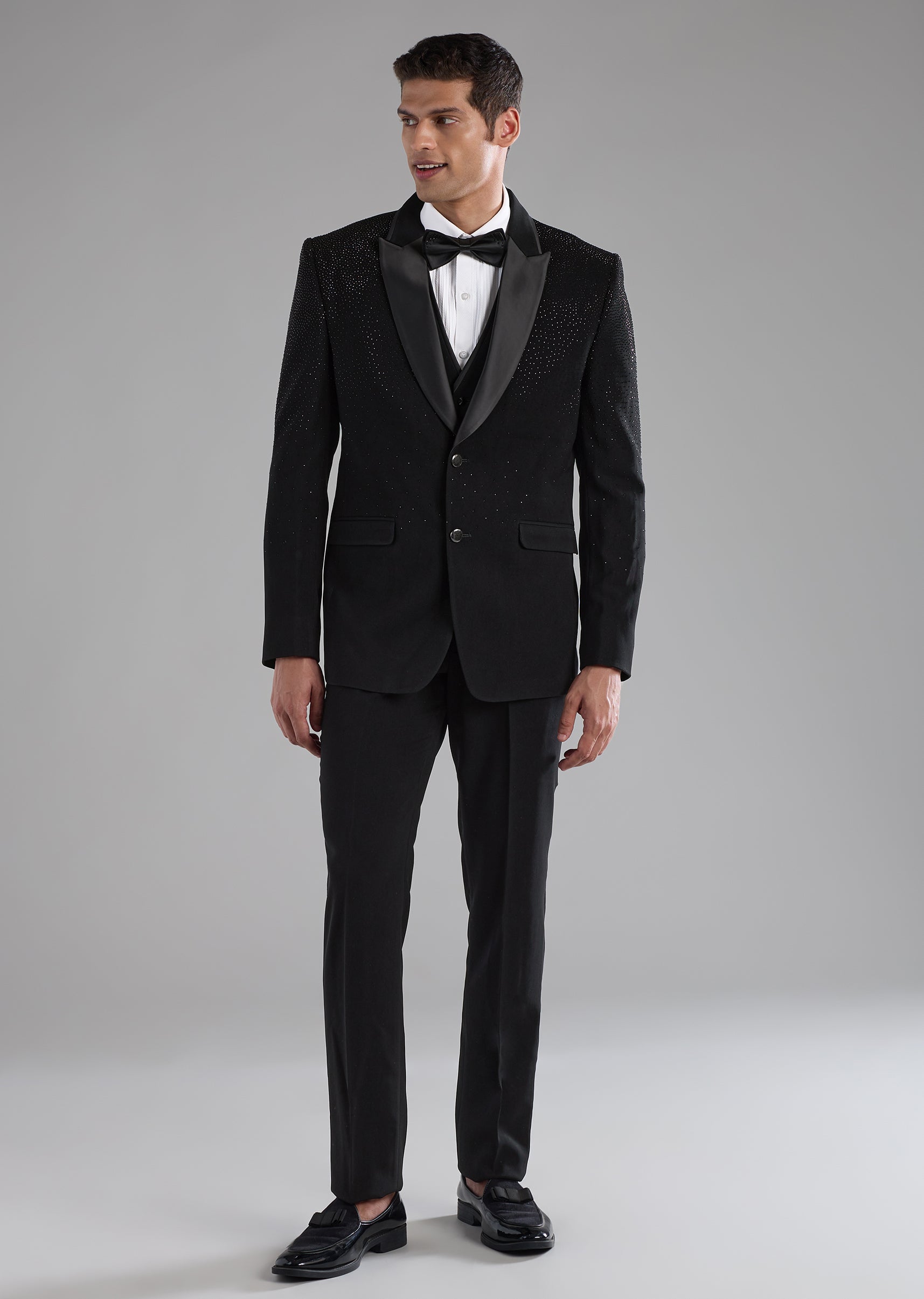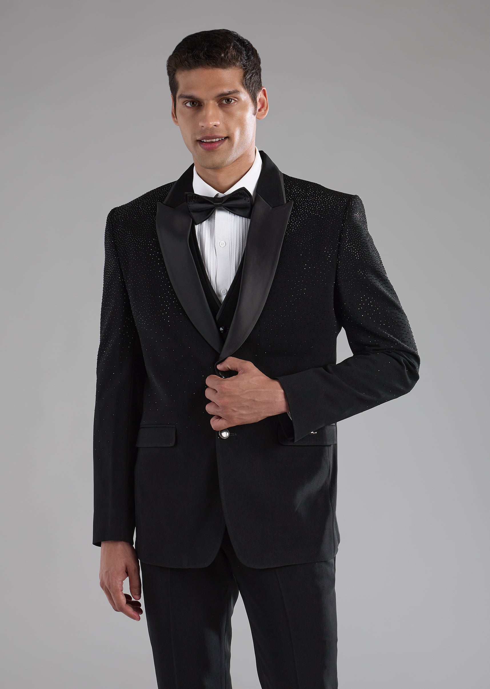 Black Stone Embellished Tuxedo and Bow Set
