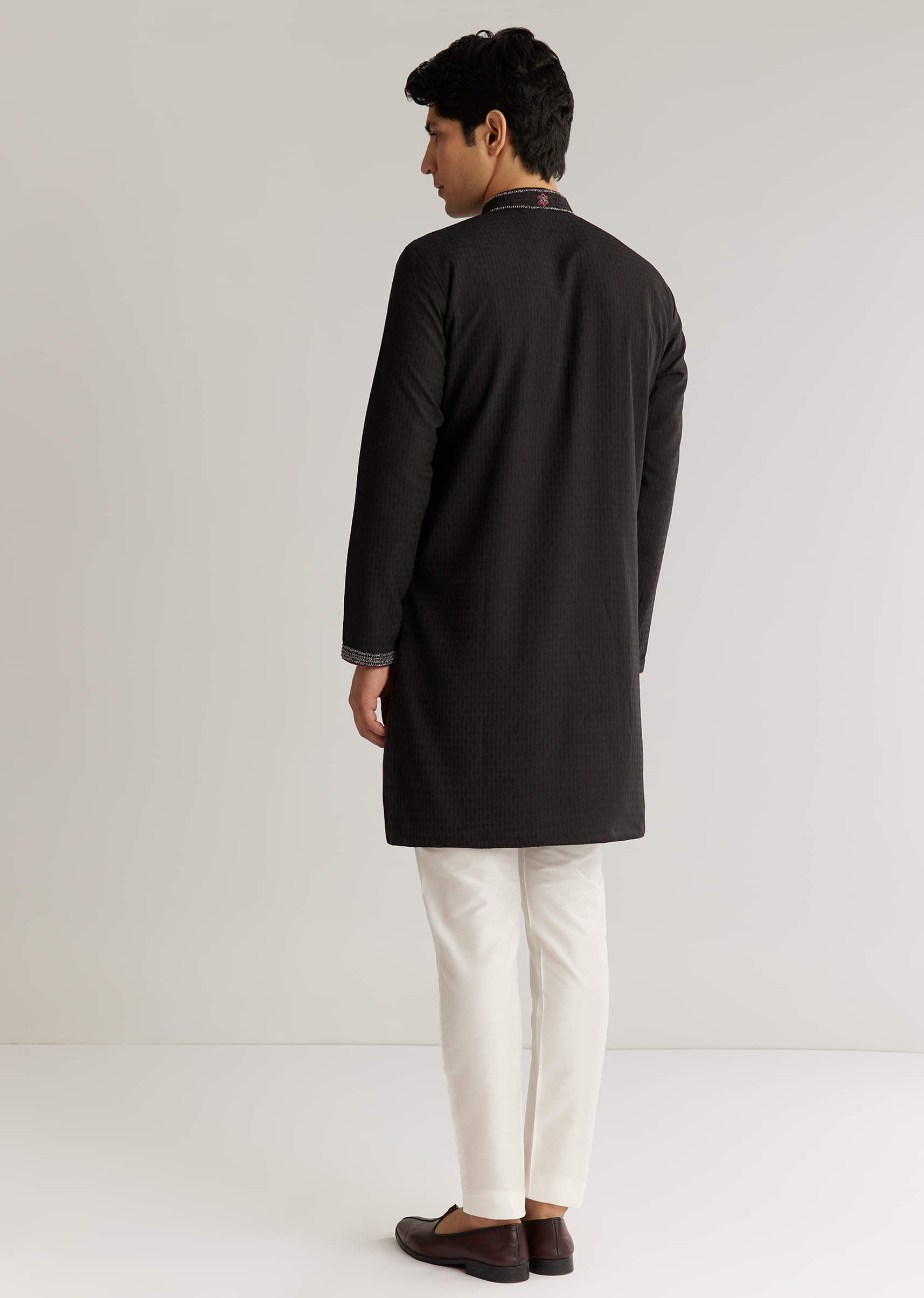 Black Suiting Sequin Resham Threadwork Kurta Set