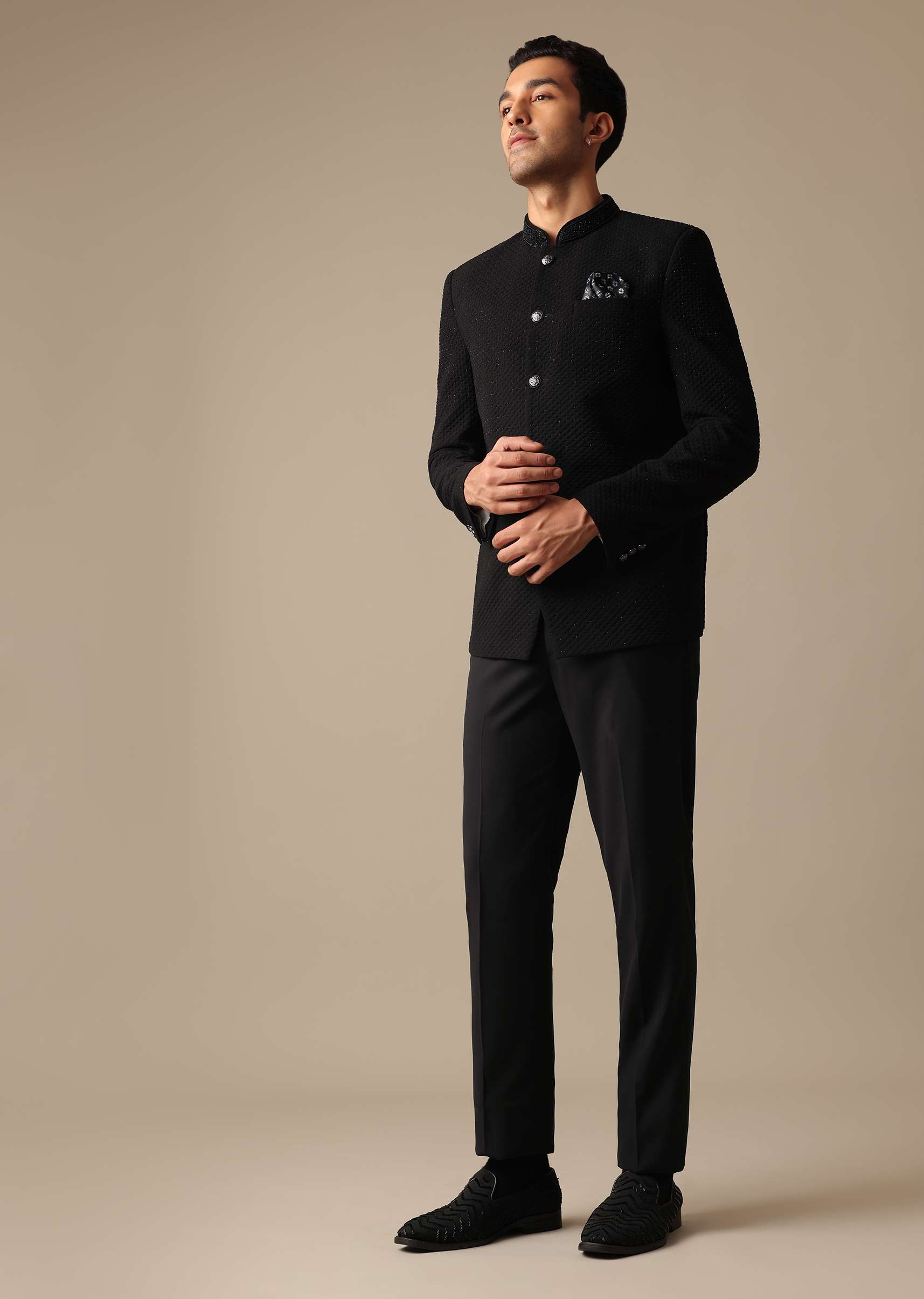 Black Jodhpuri Textured Bandhgala And Pant Set