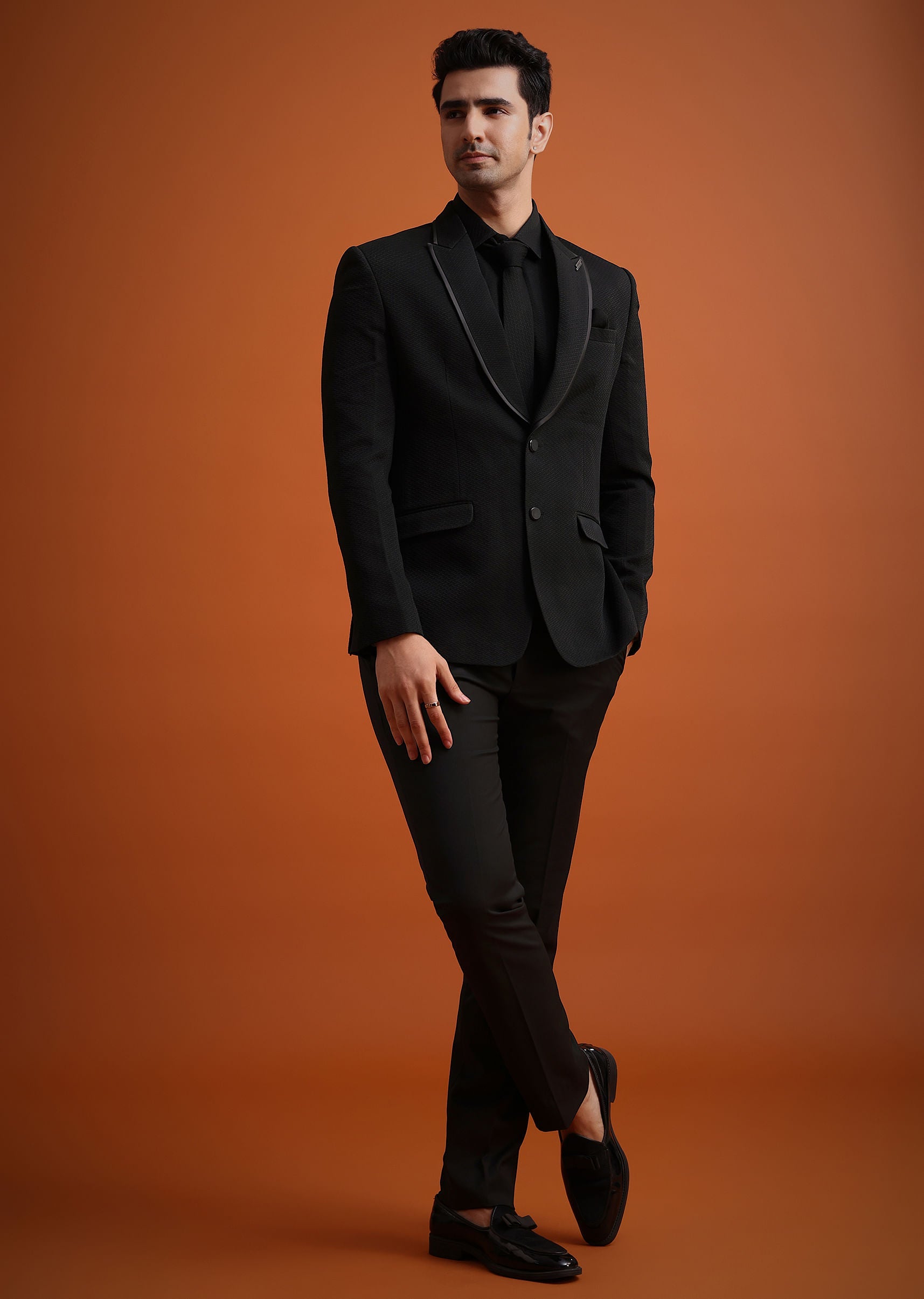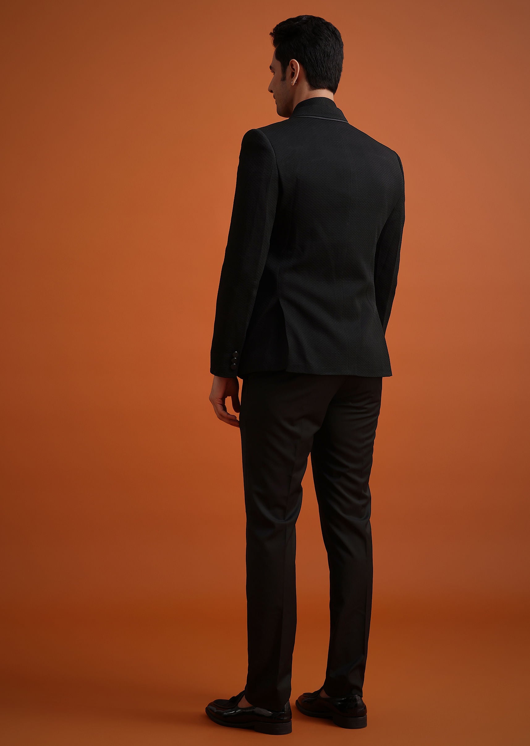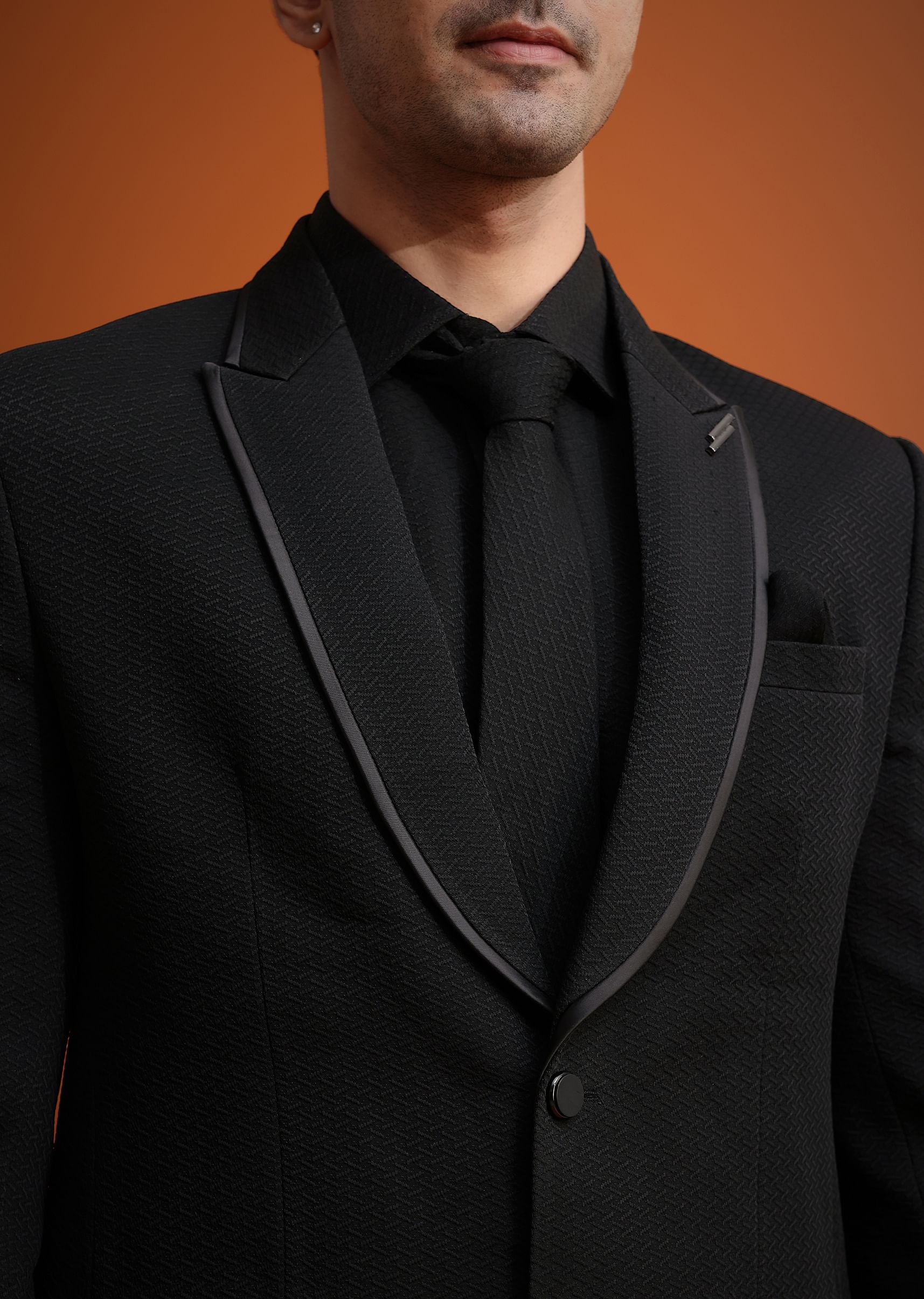 Black Tuxedo And Shirt Set With Pocket Square