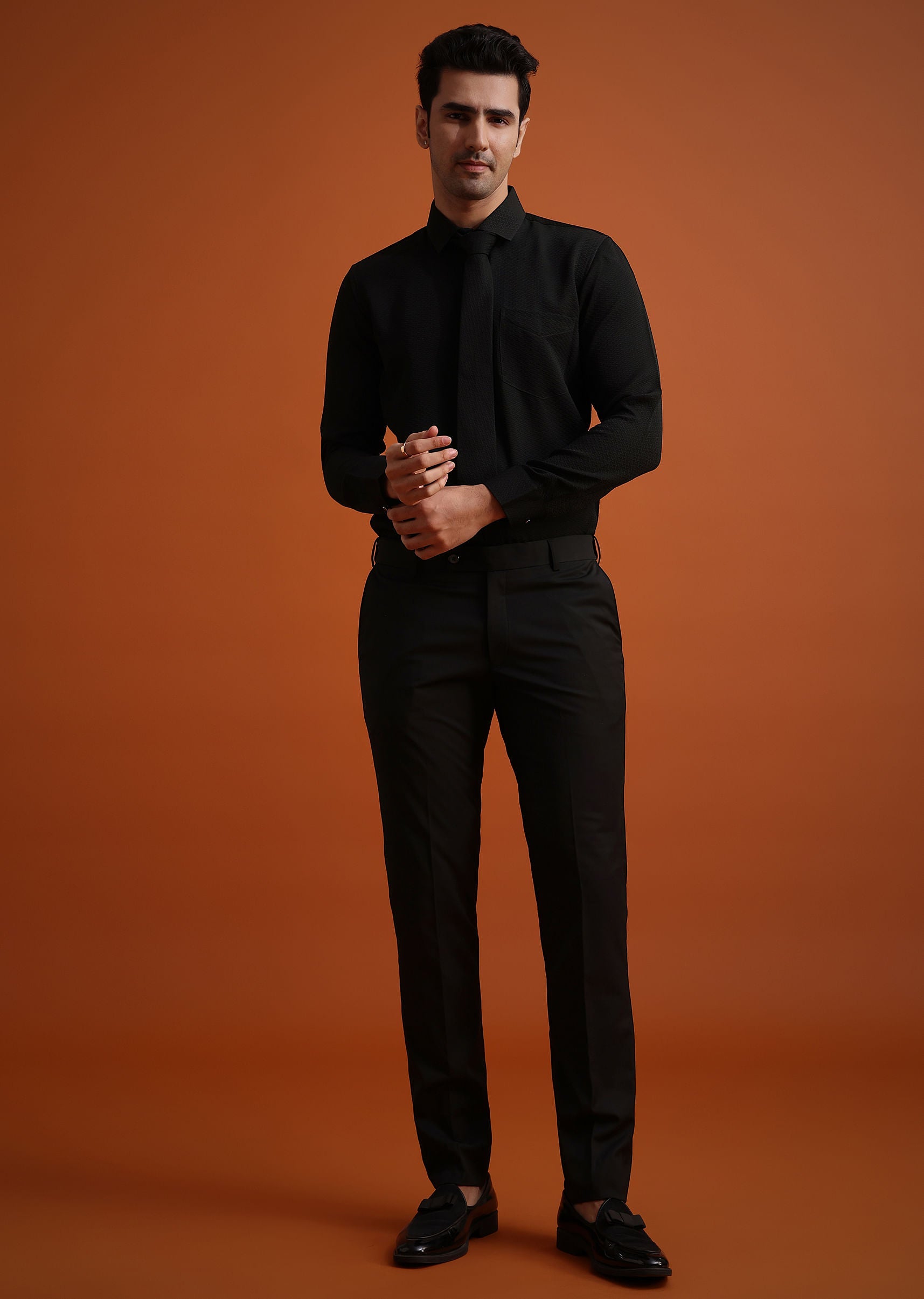 - Completed with a matching tie pocket square shirt and coordinating trousers don this ensemble to charm the crowd at cocktail parties and formal occasions.