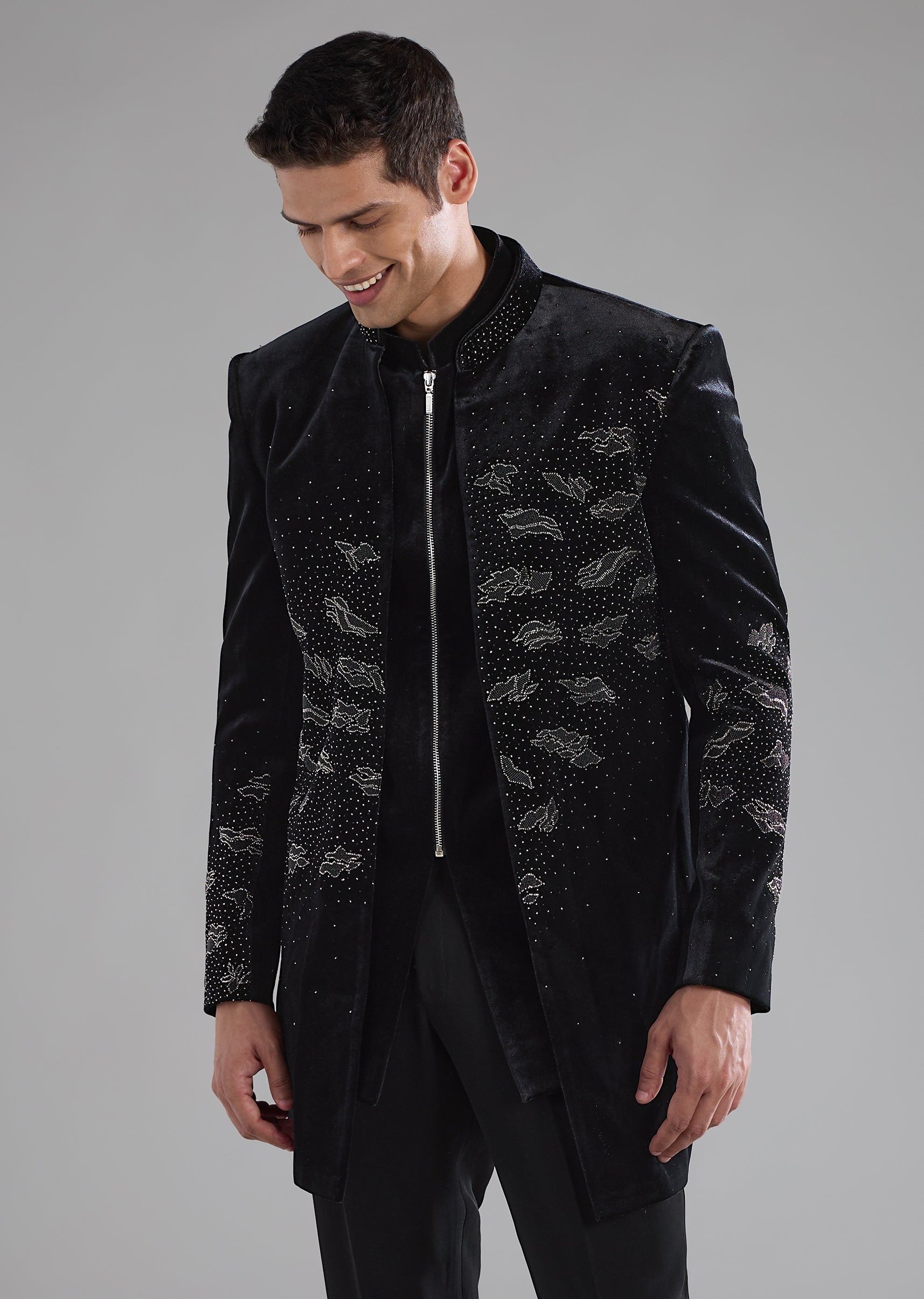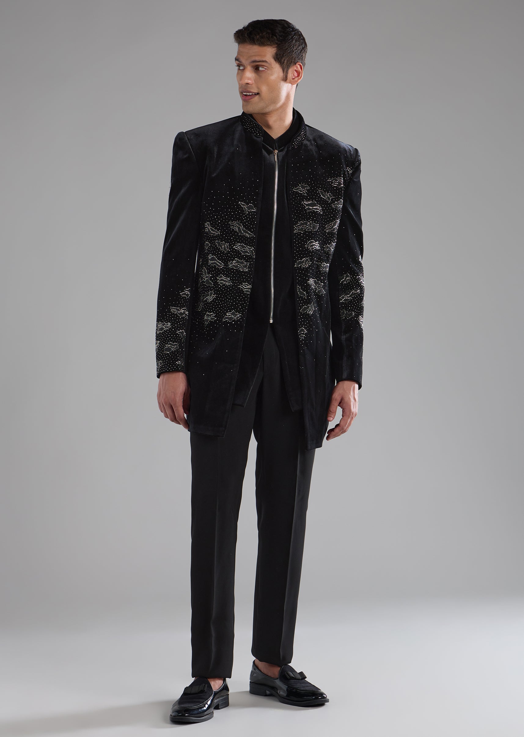 Black Velvet Indowestern Jacket Set with Bead Work