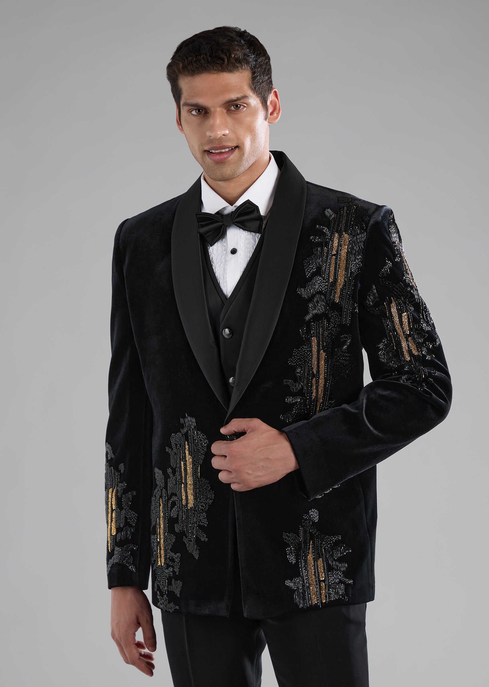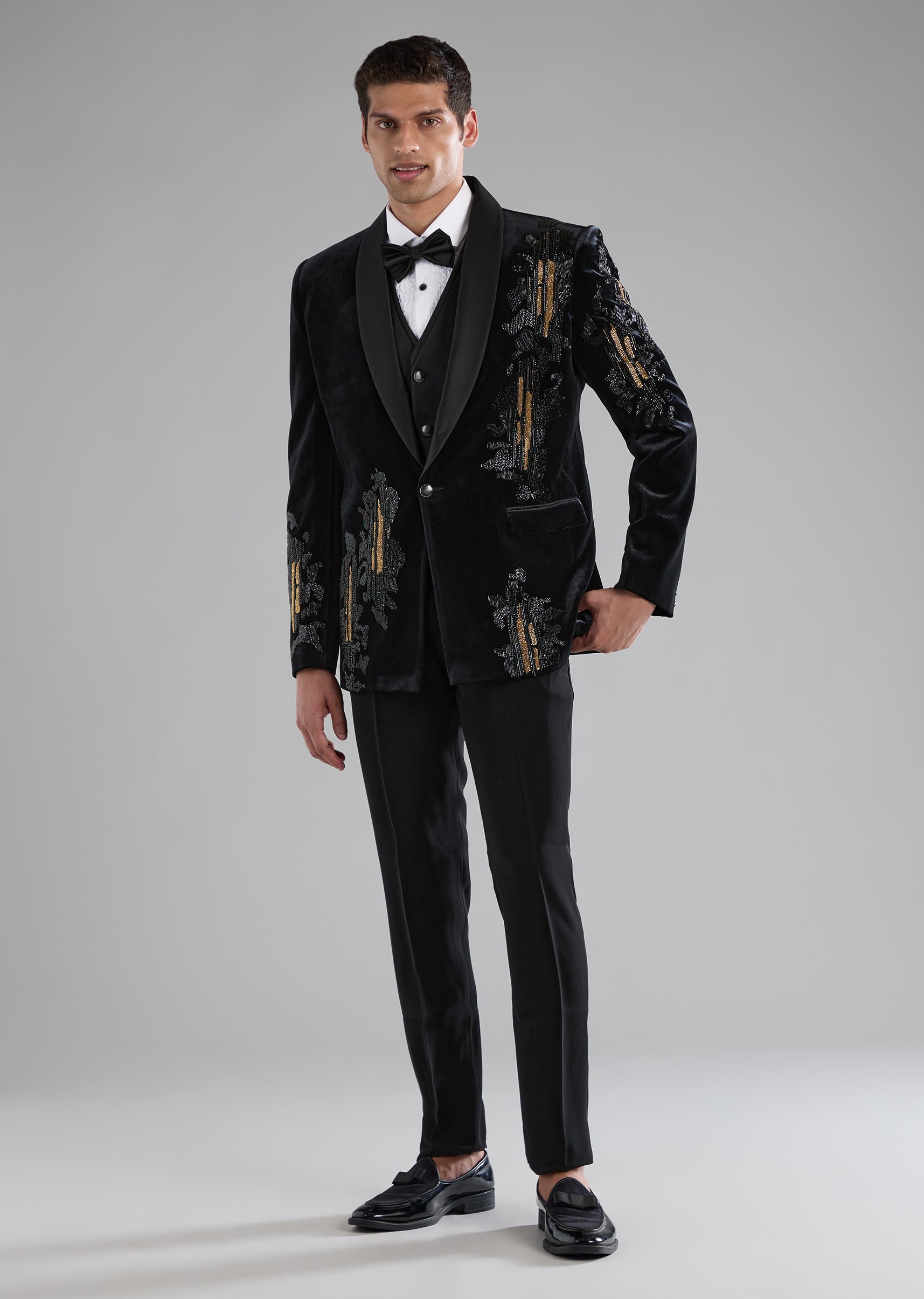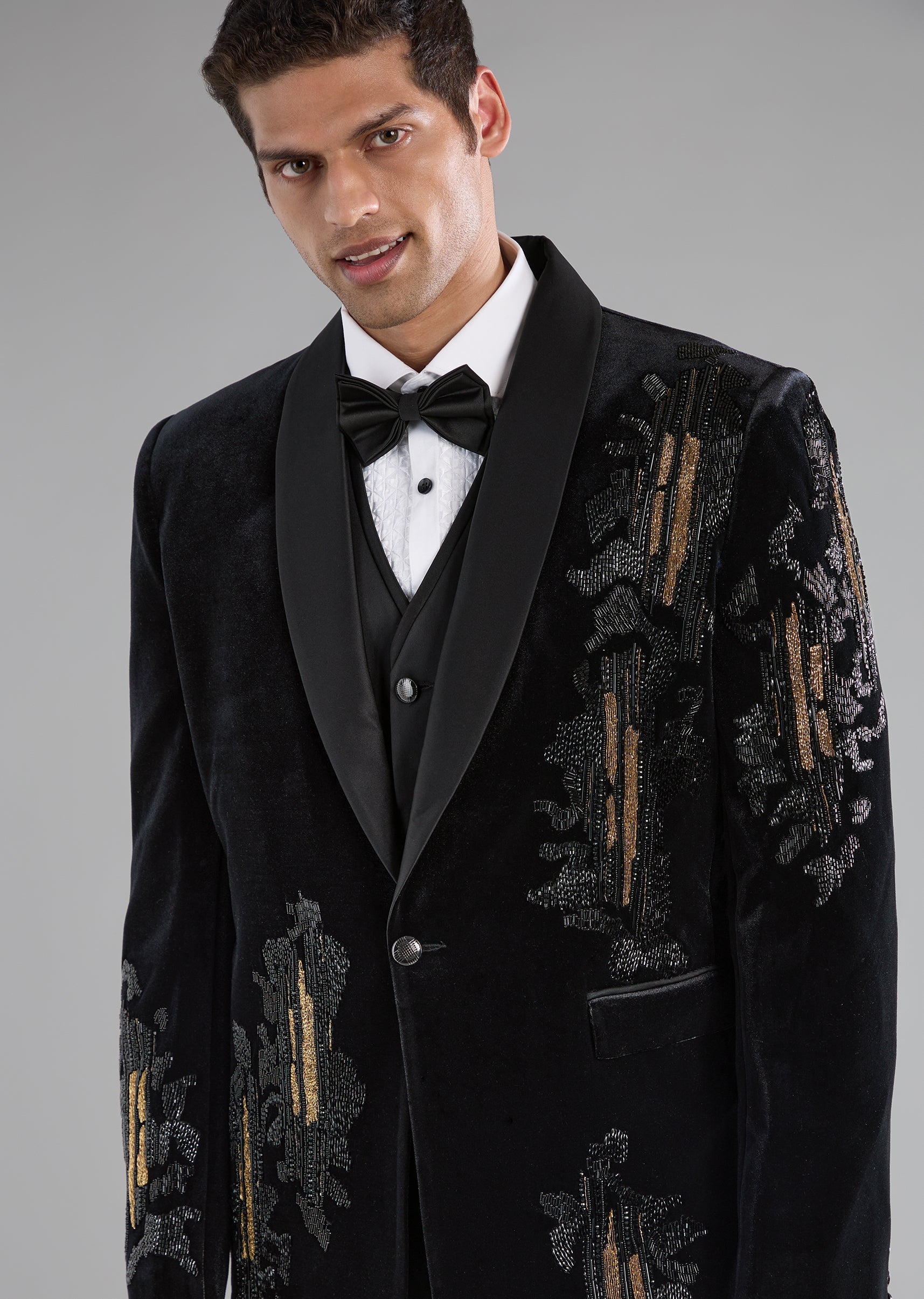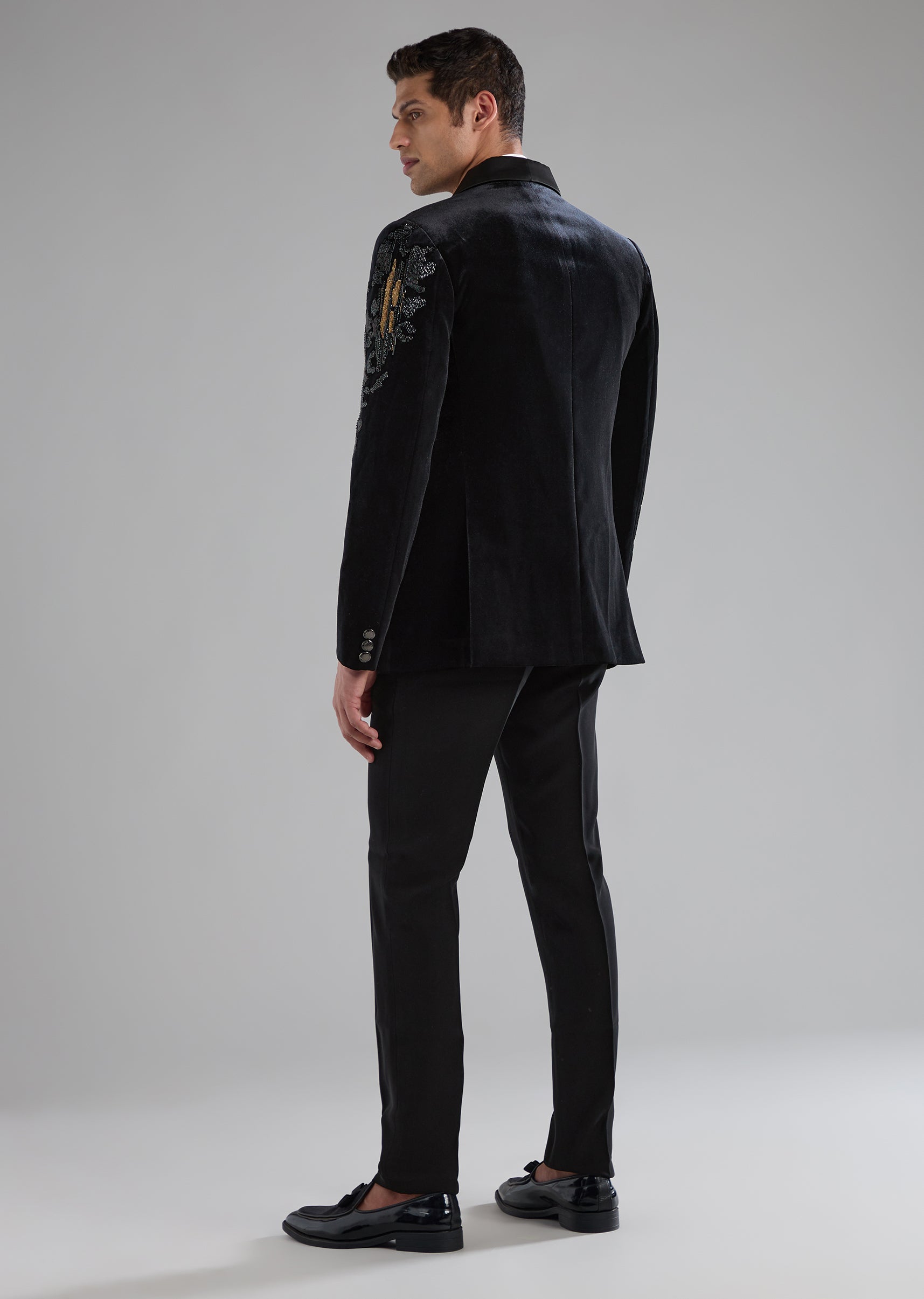 Black Velvet Tuxedo with Zardozi Embellished Detail