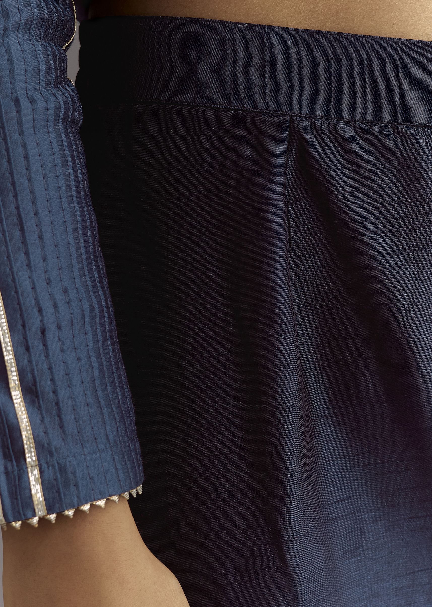 A tale of ombre hues and tradition, this chanderi Angrakha kurta with zardosi neckline and butti dupatta radiates poise for your festive pooja moments.Standard Lenght of Anarkali is... More Product Details