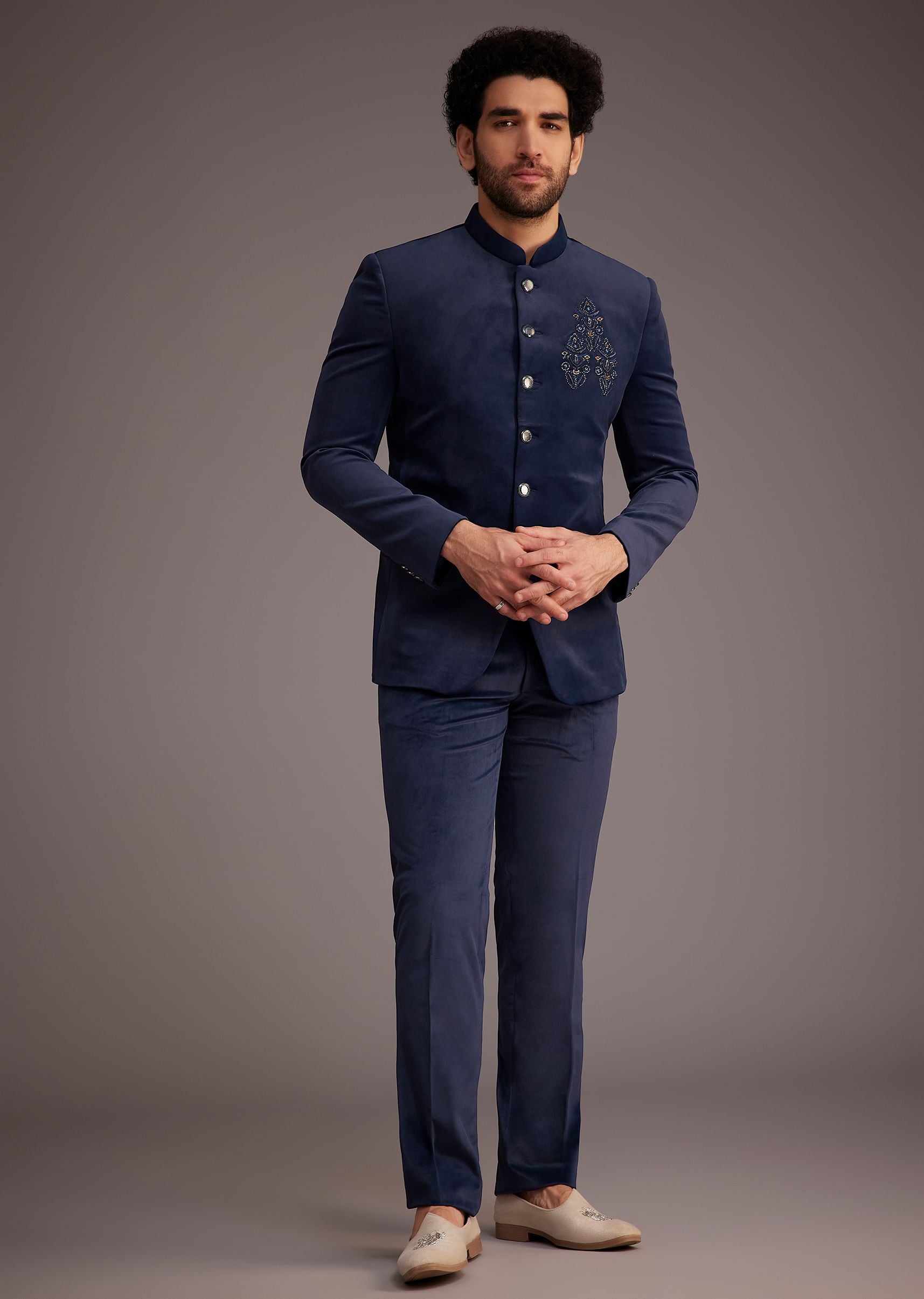 This exquisite bandhgala features a rich blue hue adorned with an intricately embroidered motif offering a perfect balance of elegance and style. The luxurious fabric and structured silhouette make it ideal for weddings receptions and formal events. Designed with attention to detail it seamlessly blends traditional aesthetics with a contemporary touch making it a statement piece for grand occasions. Awarded as the Most Trusted Brand, we're delivering styles you love, just as promised.