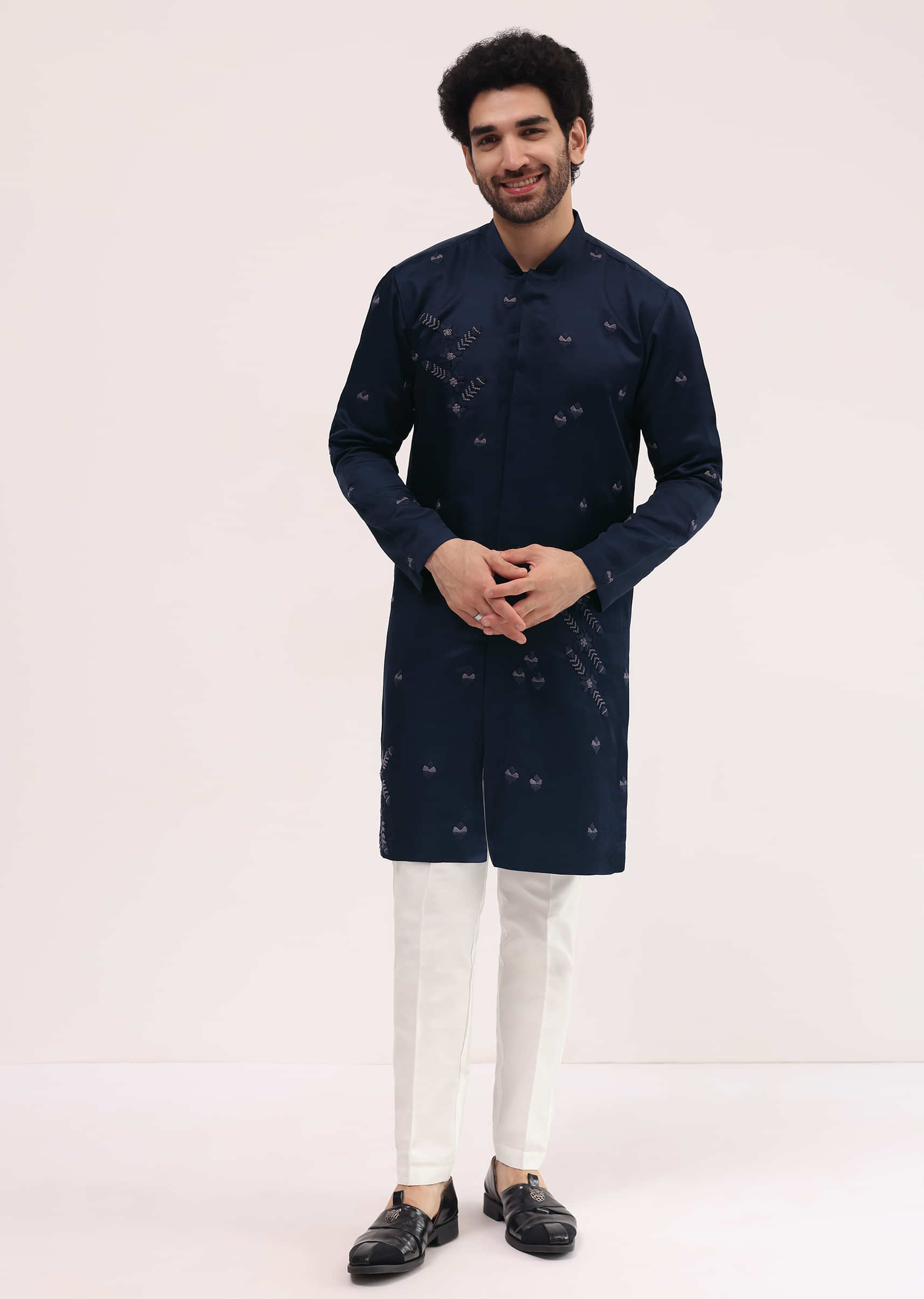 - Indulge in the enchanting elegance of our blue kurta set expertly tailored for festive occasions.