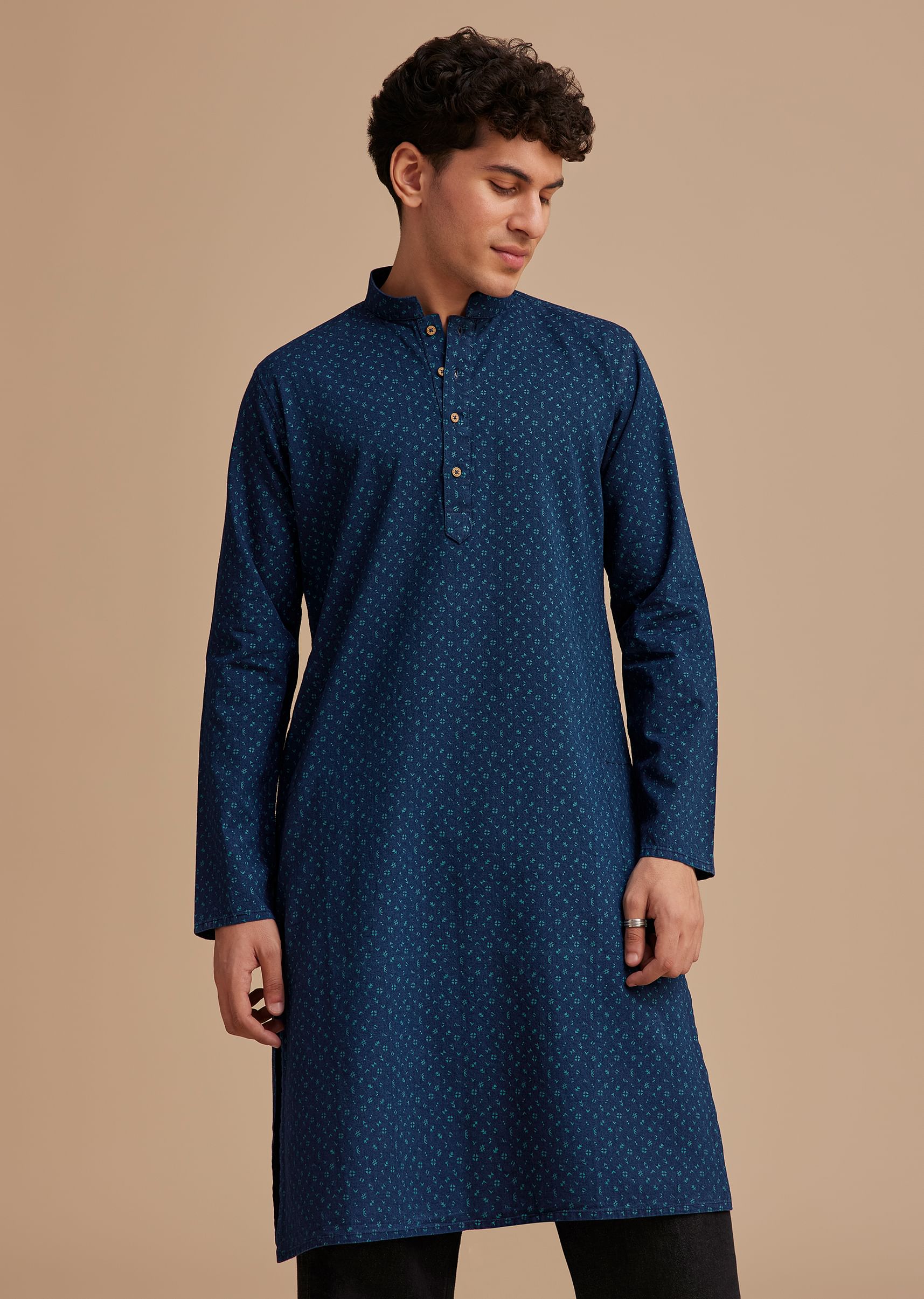 - Redefine Effortless Elegance With This Blue Cotton Kurta Set Adorned With A Subtle Micro Print That Adds A Refined Texture.