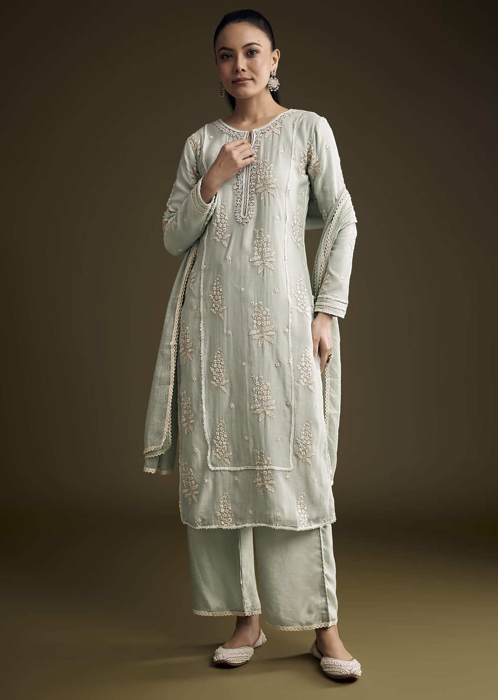 For everyday polish with craft, this blue cotton kurta set keeps the look breathable and tidy. Resham work adds quiet texture across the kurta for a subtle lift. You feel... More Product Details