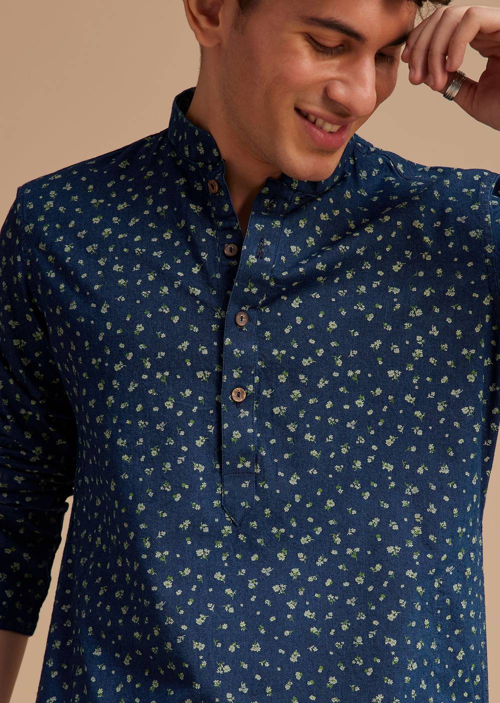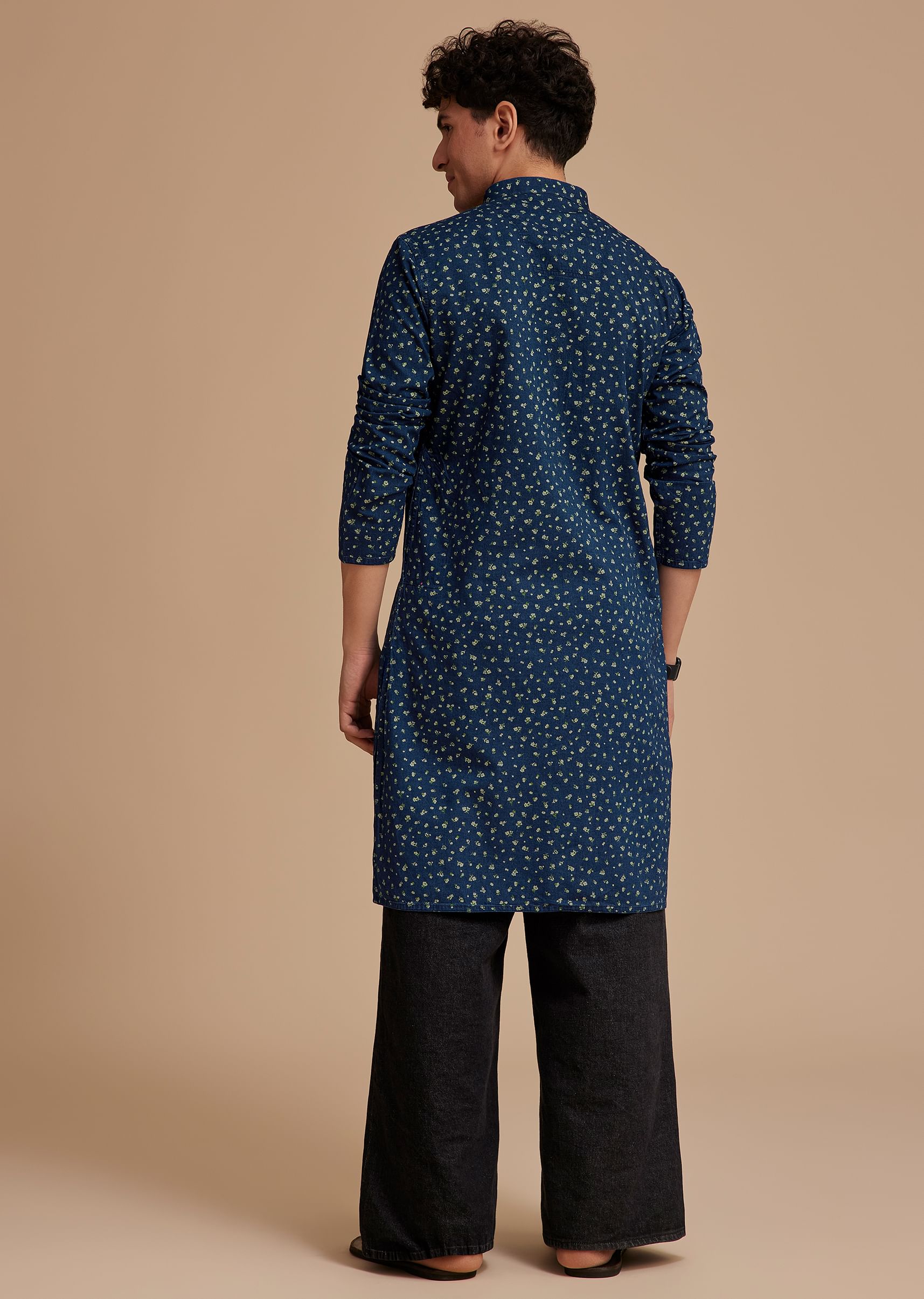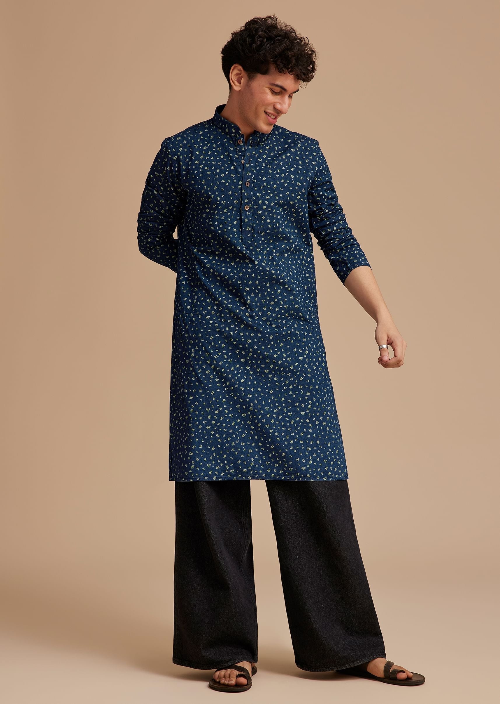 - Elevate Your Everyday Ethnic Style With This Blue Cotton Kurta Set Featuring A Subtle Micro Print That Adds A Refined Texture.
