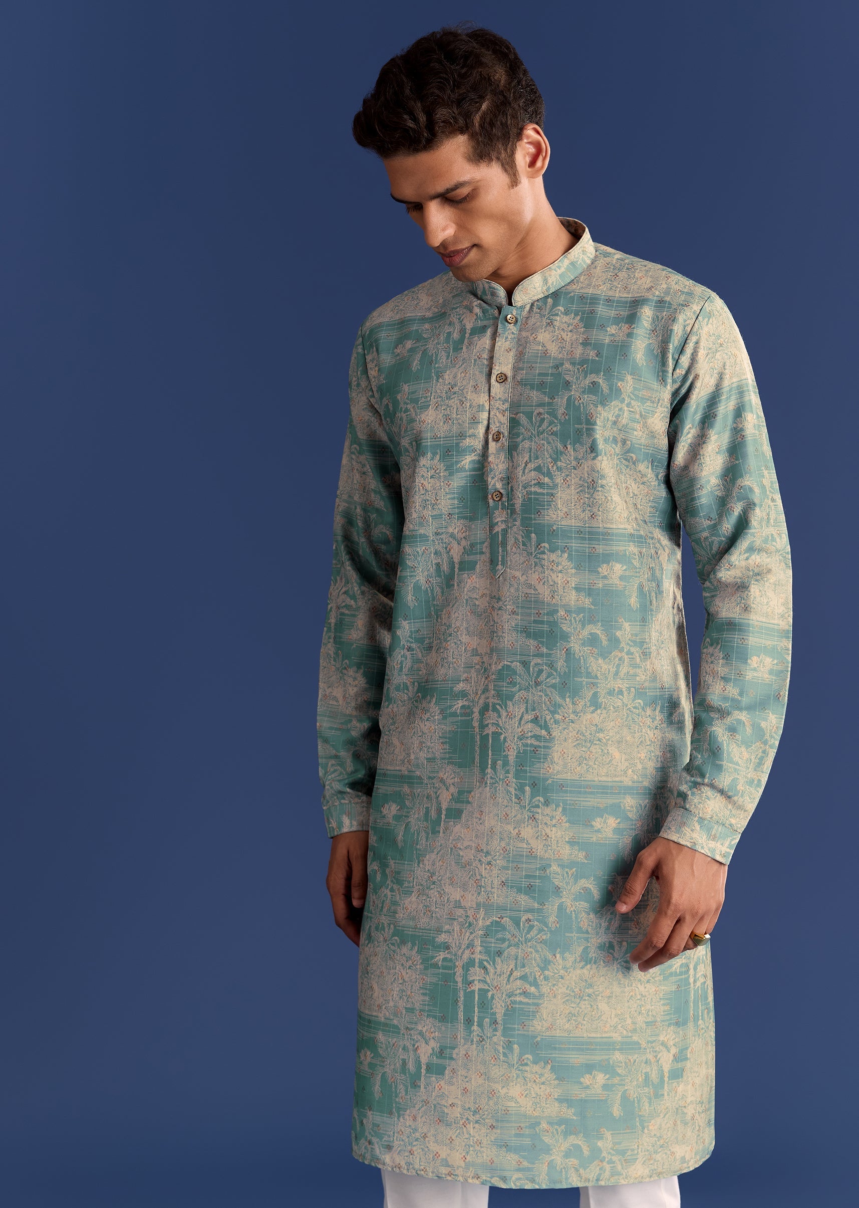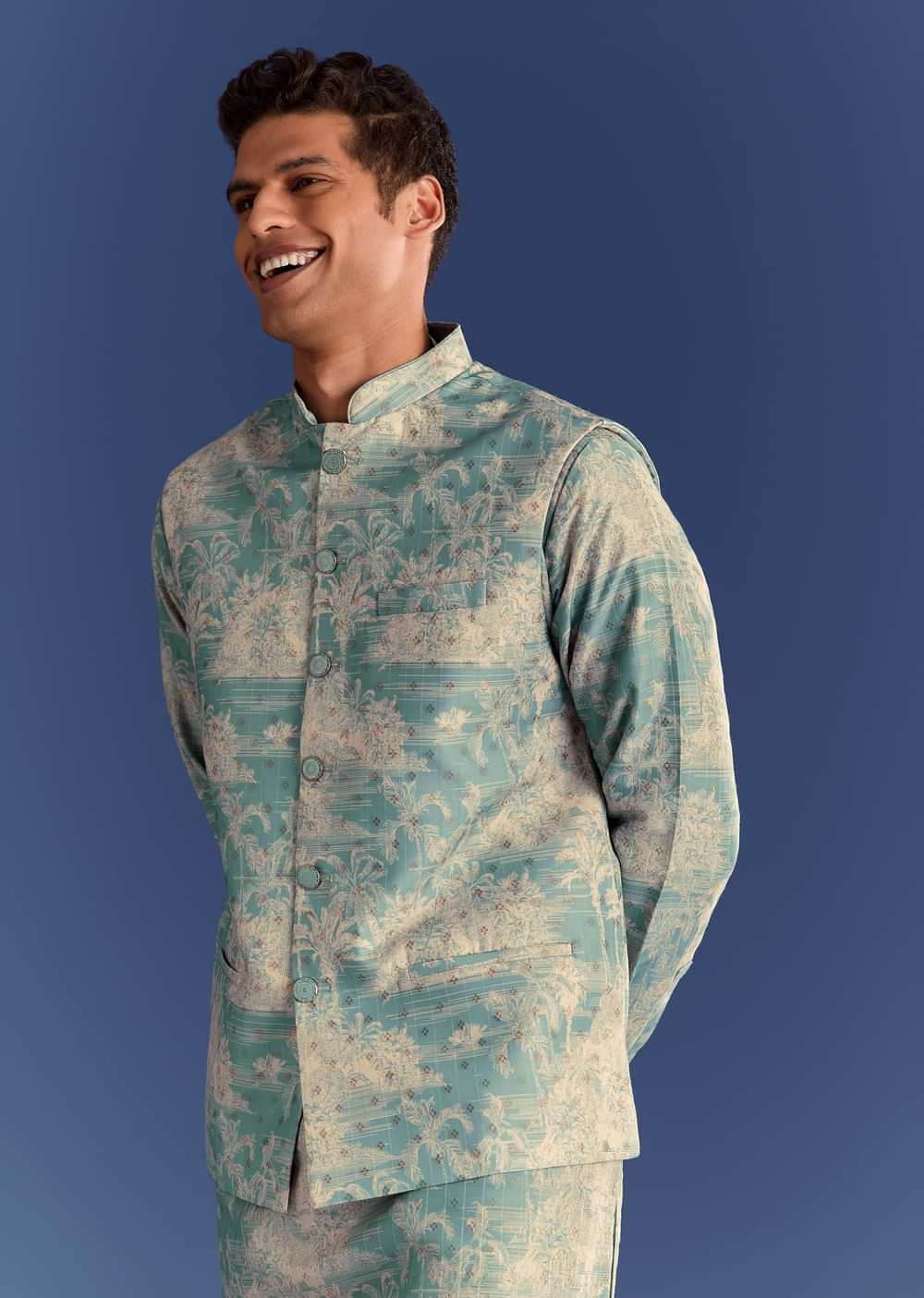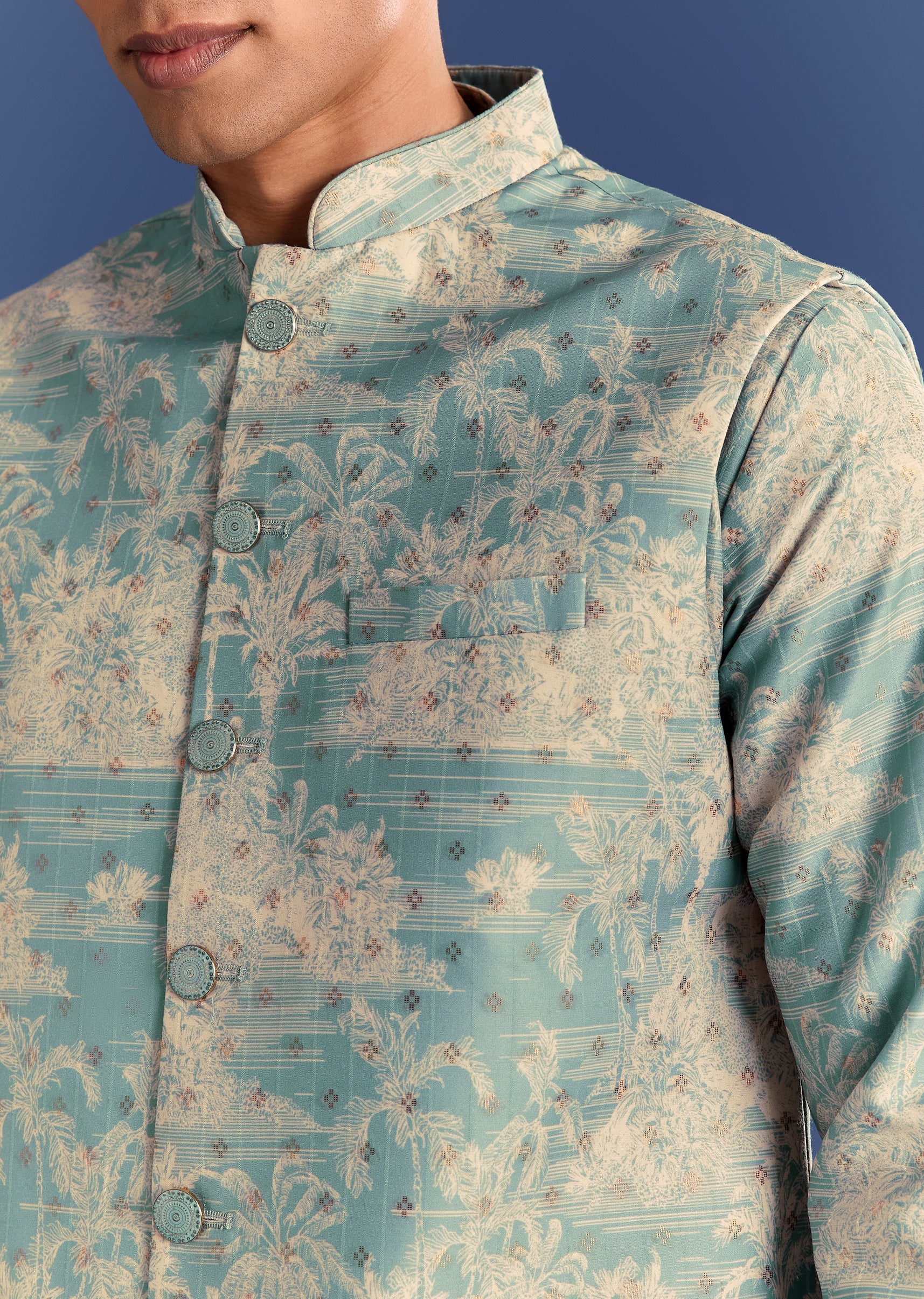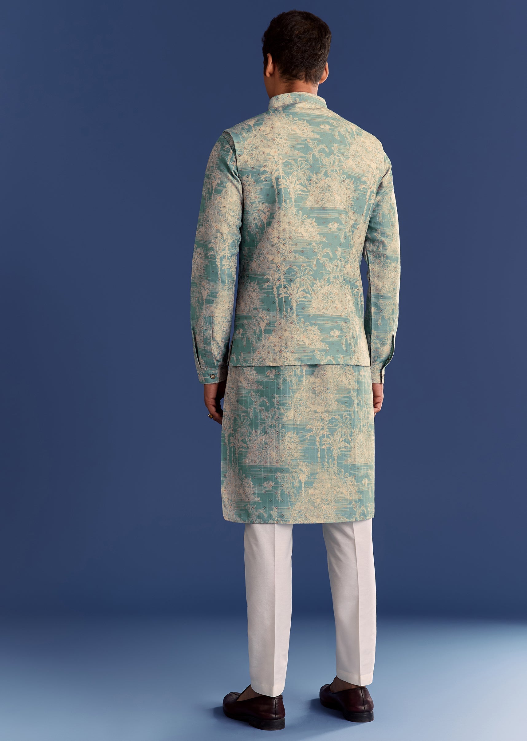 This blue cotton silk kurta jacket set is digitally printed for flair and sophistication, ideal for contemporary celebrations. Awarded as the Most Trusted Brand, we're delivering styles you love, just as promised.