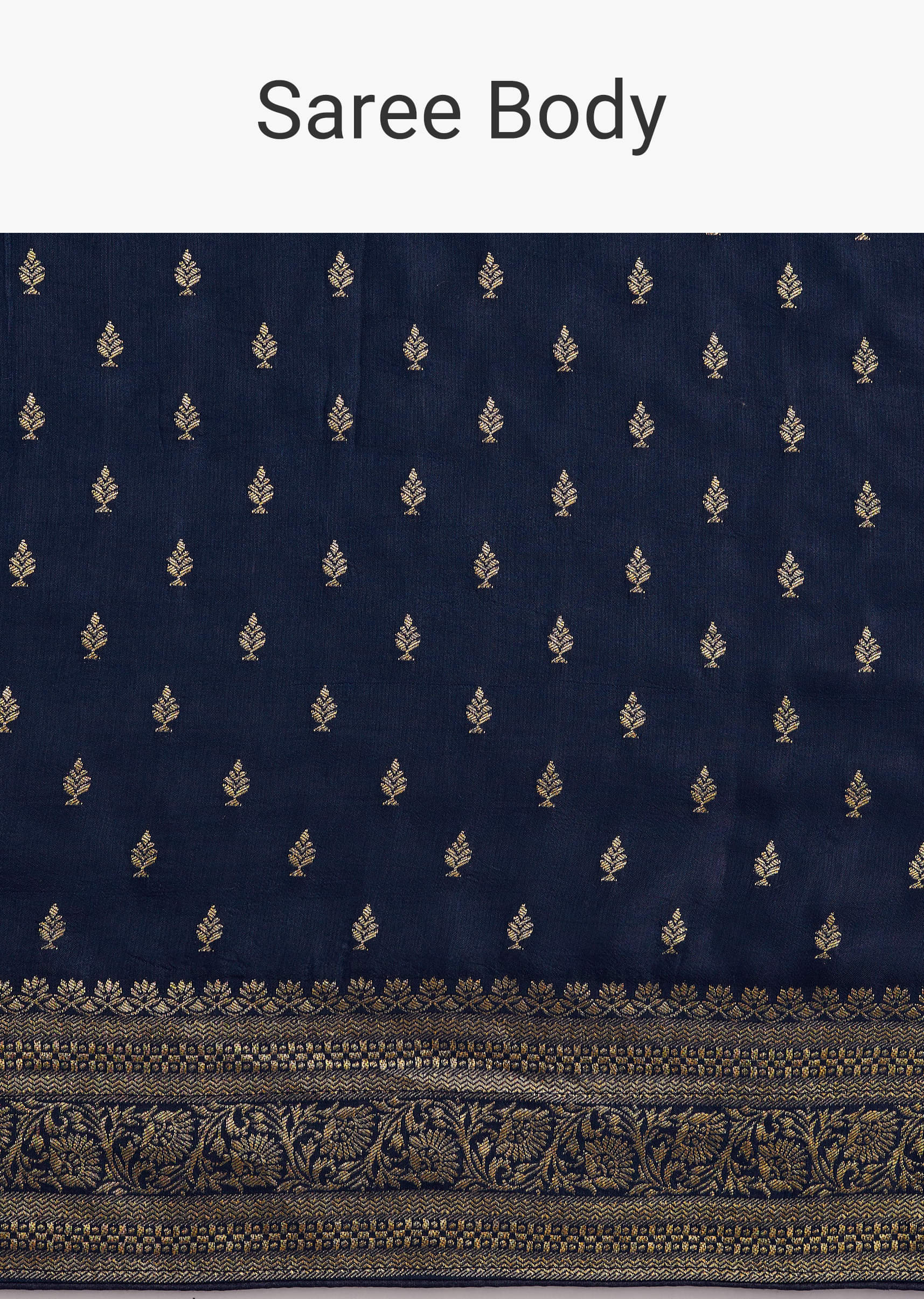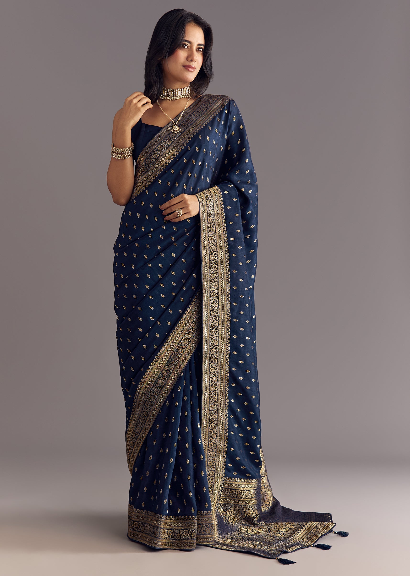 Blue Dola Silk Saree With Zari Border And Butti Work