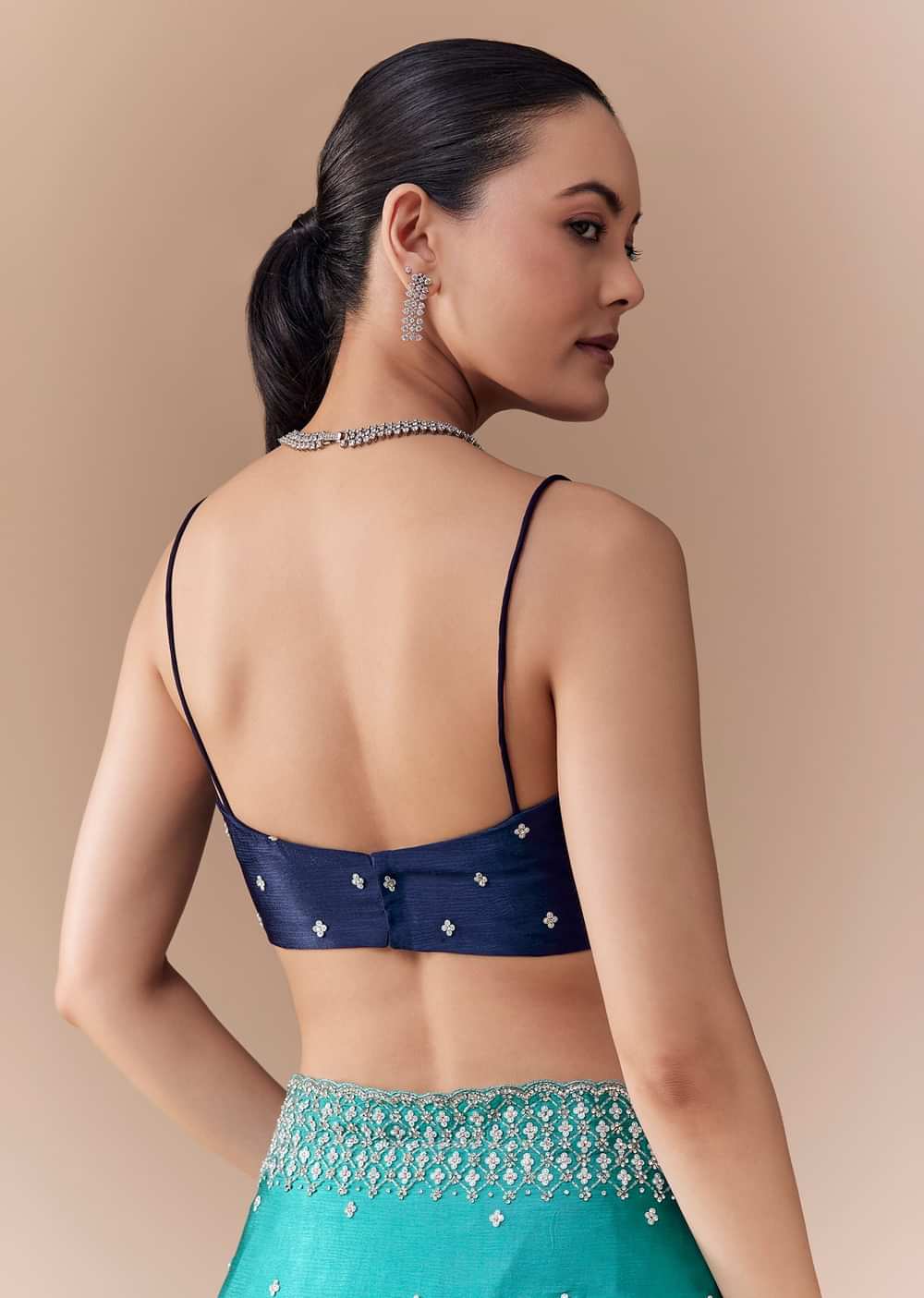 Fit Tips:Stitch the blouse for a structured, tailored fit to enhance the saree’s fluid drape and ornate detailing.