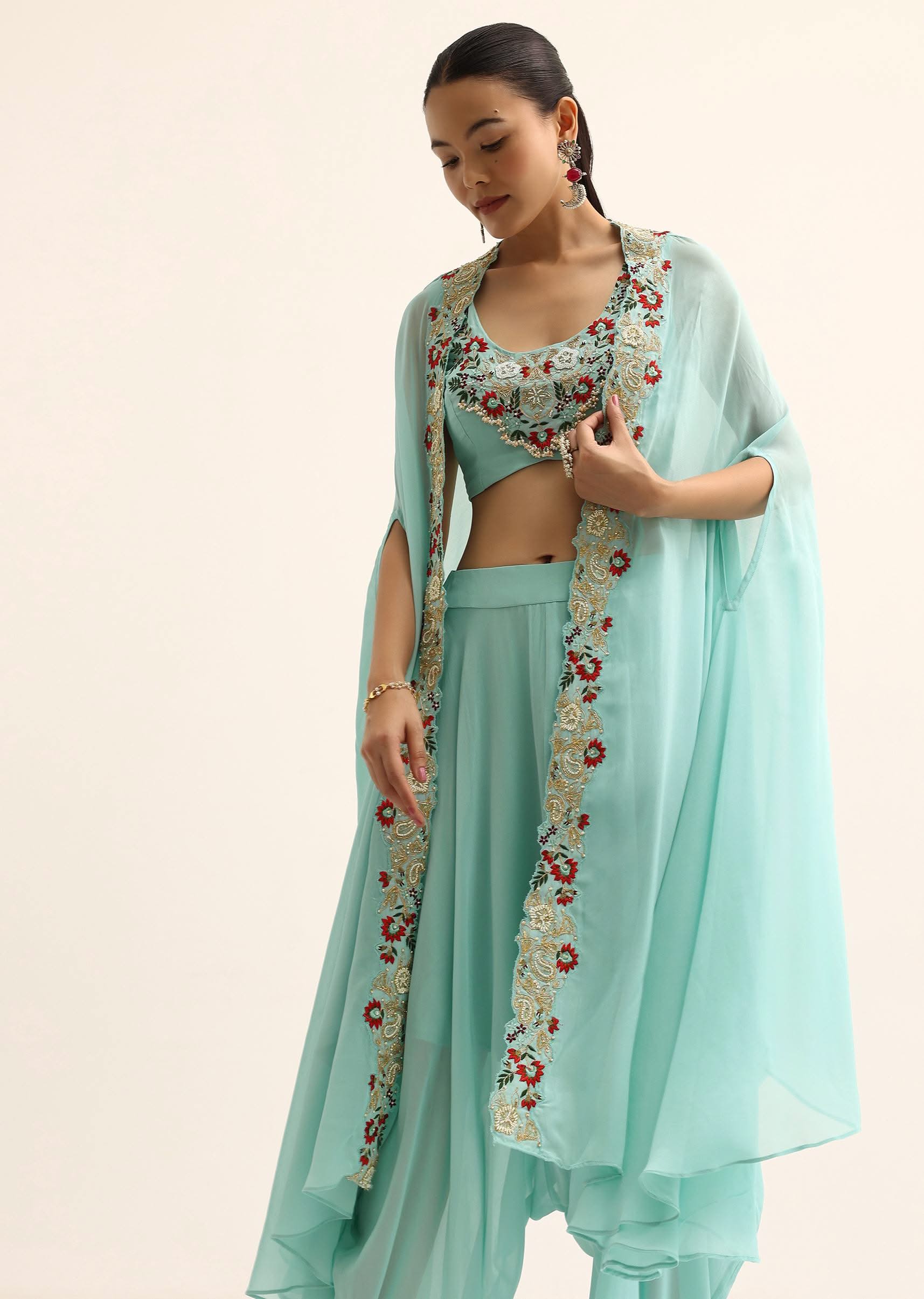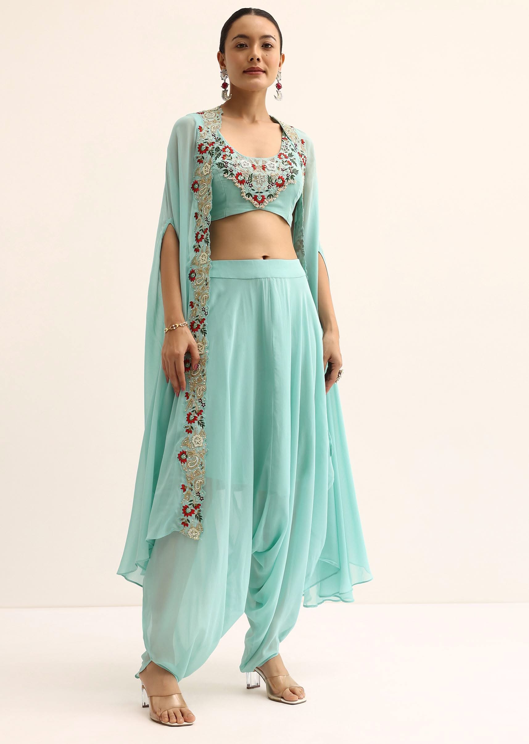 Opt for jewelled jhumkas and sky-high heels to complete your fusion attire.