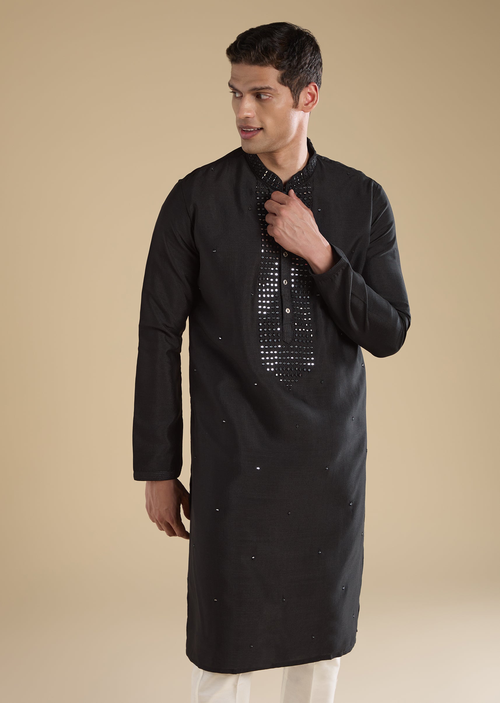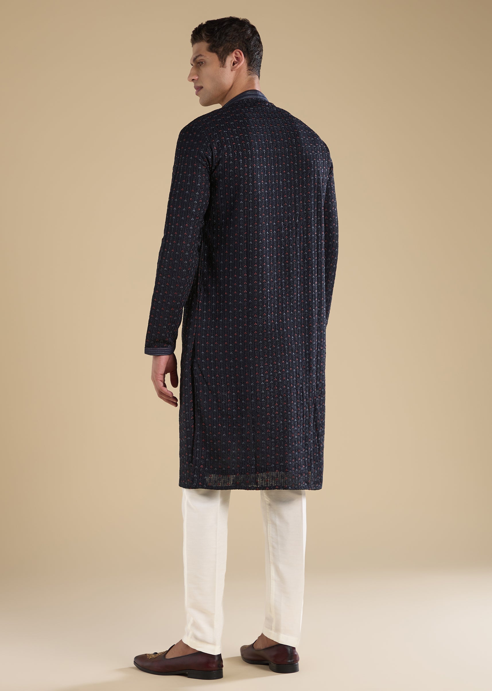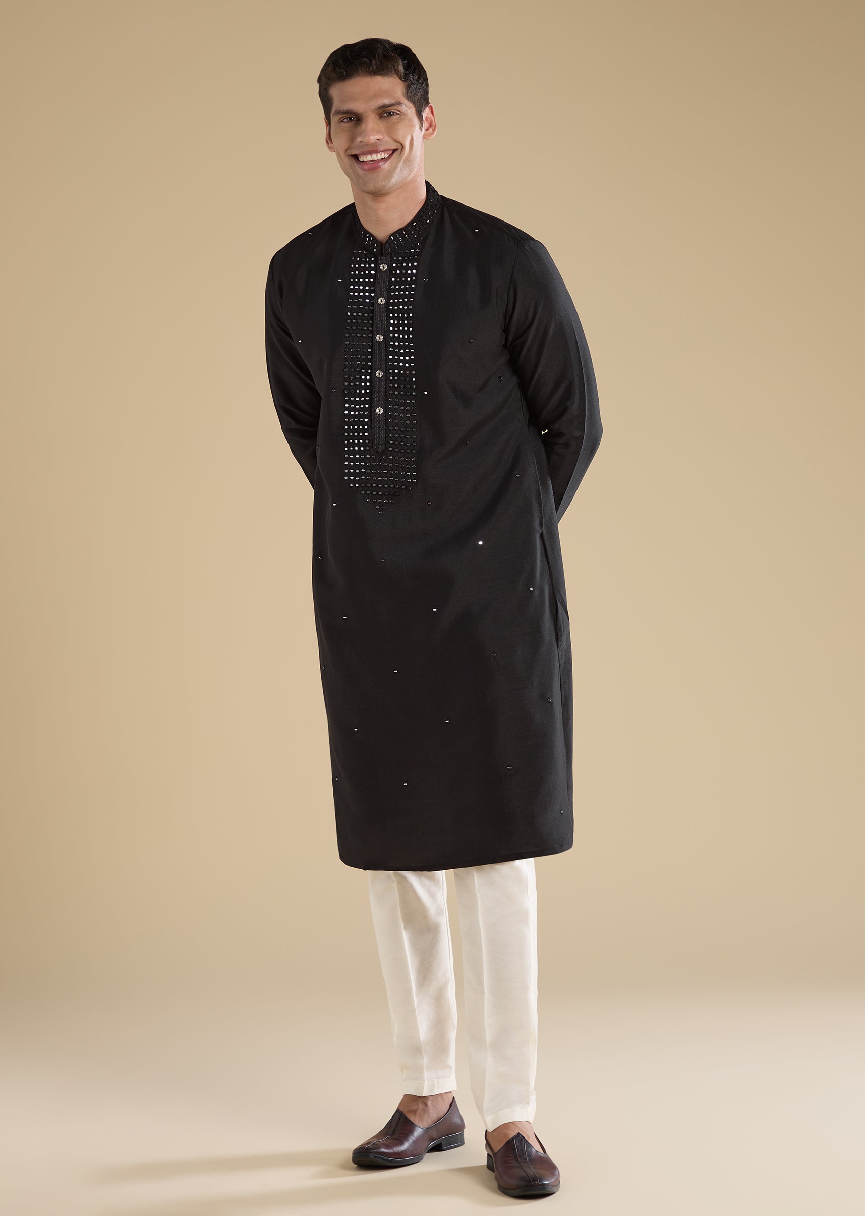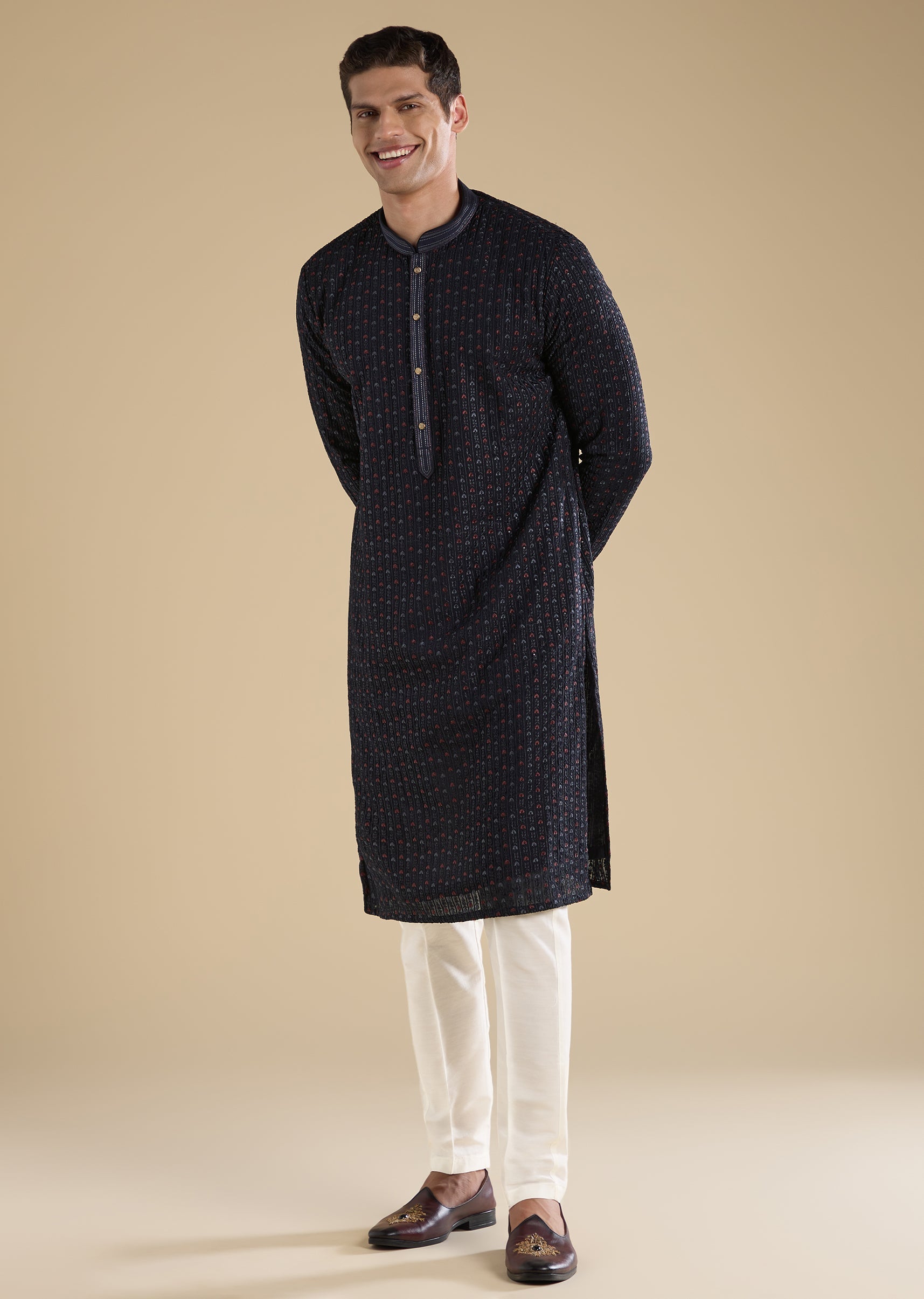 Pair with beige mojris for a clean, classic festive look.