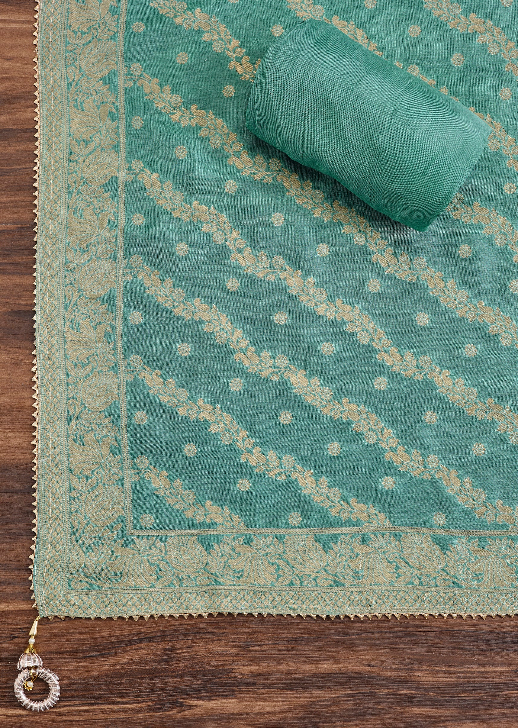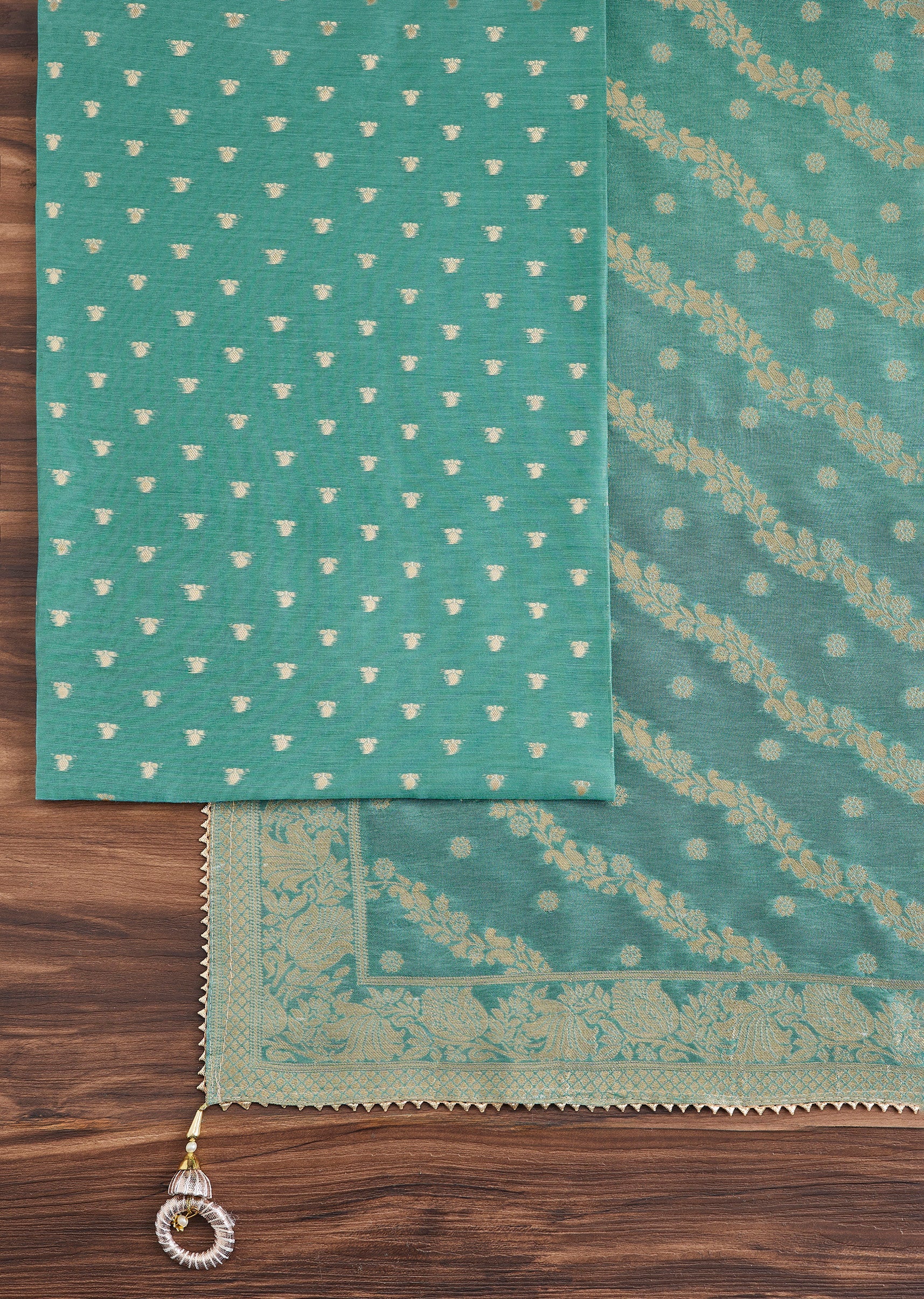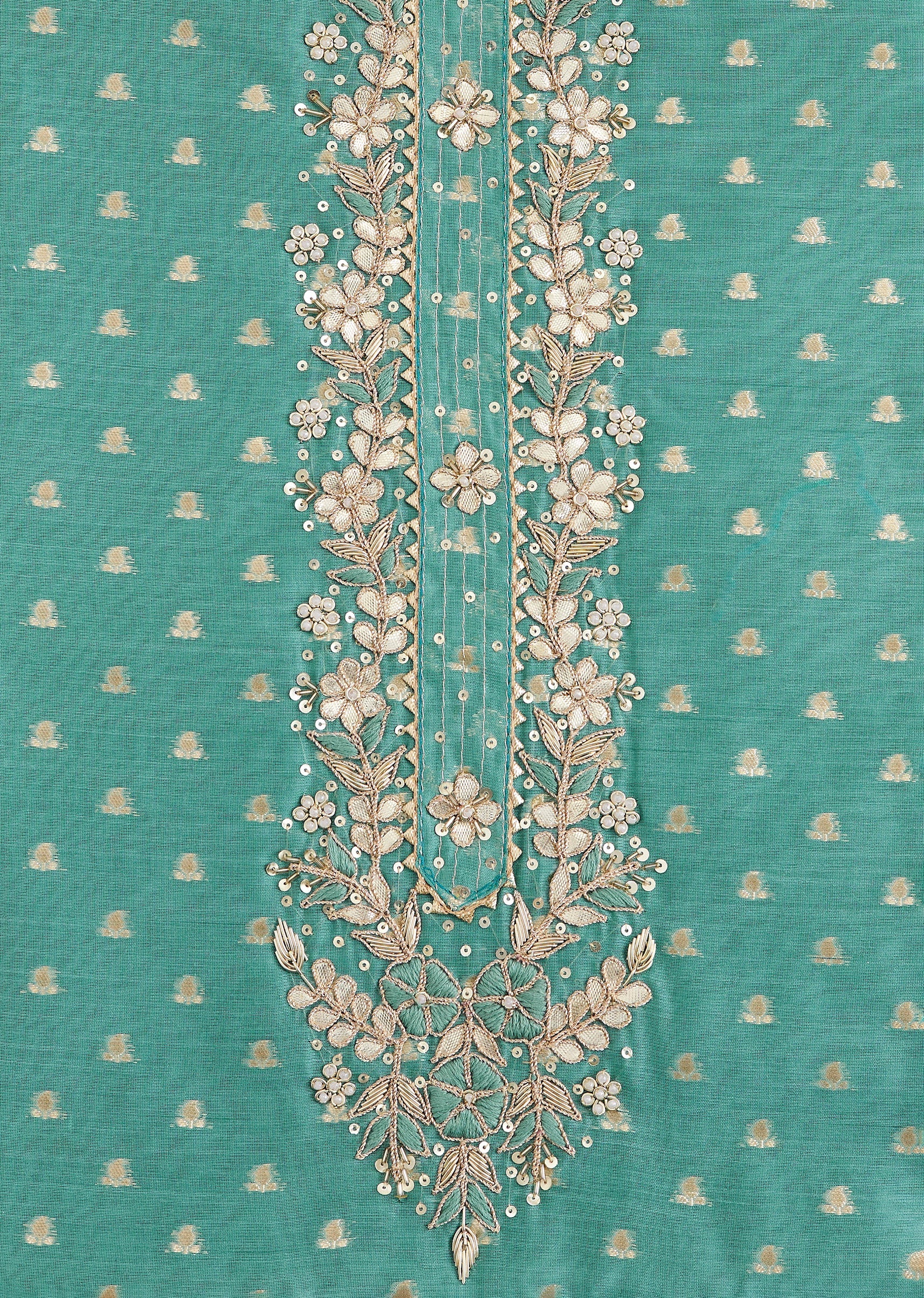 This blue unstitched suit set is made from lightweight chanderi fabric and detailed with refined embroidery. Finished with matching bottom fabric and dupatta, it offers effortless sophistication for celebrations. Awarded... More Product Details