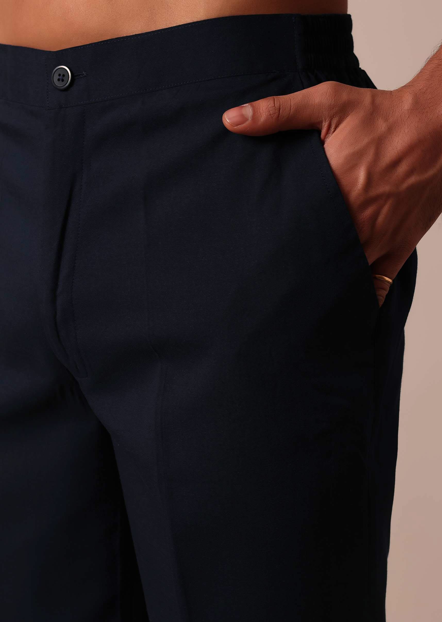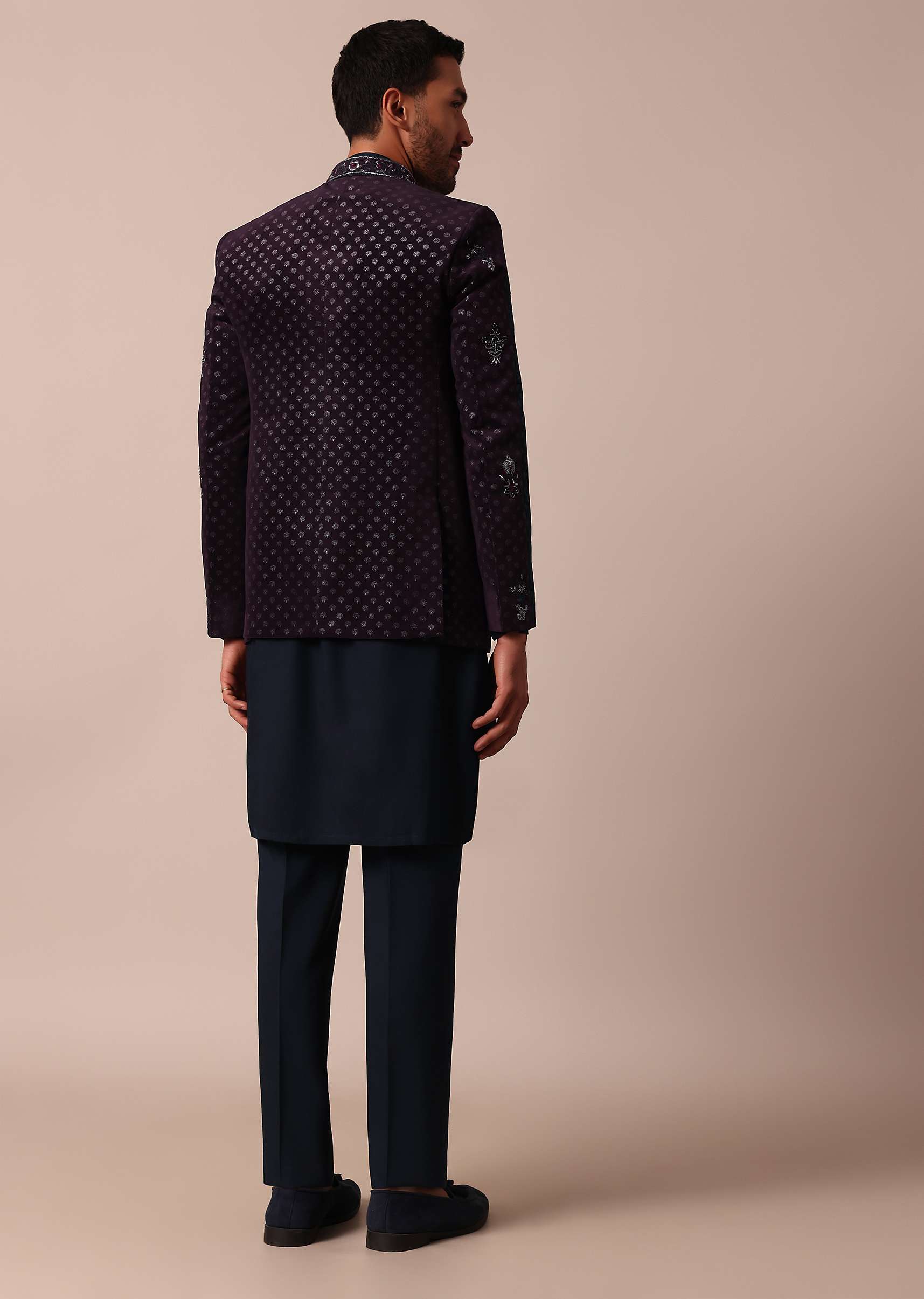 Style Tips: Complement the rich blue hue by pairing this Indowestern with gold accessories and classic leather shoes.