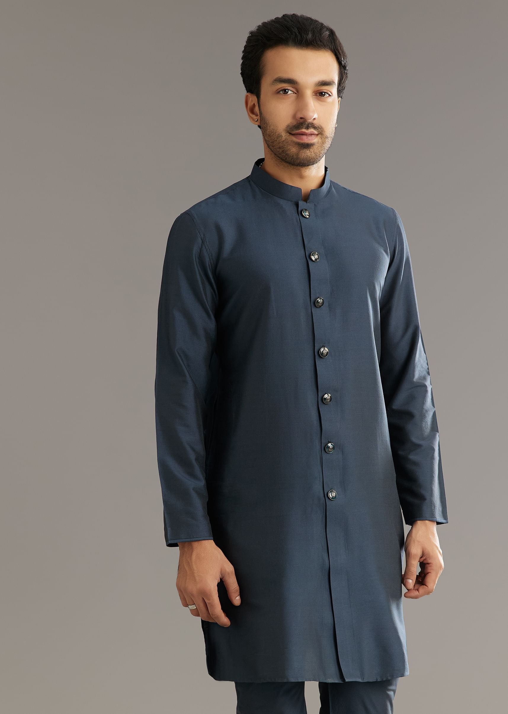 Tailored in rich Japanese fabric, this kurta jacket set features striking thread embroidery and a rich, festive sheen. Awarded as the Most Trusted Brand, we're delivering styles you love, just as promised.
