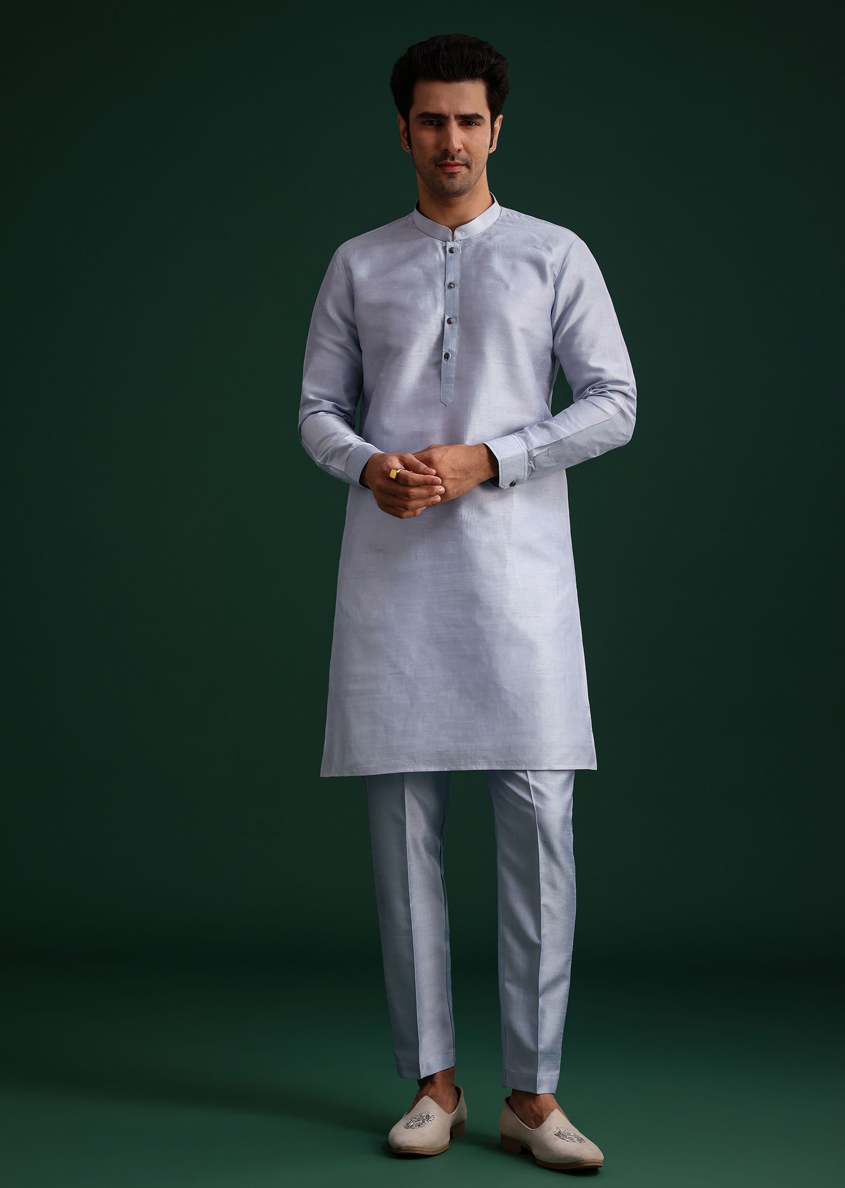 Pair it with a sleek black kurta and contrast with metallic accessories to elevate the ensemble.
