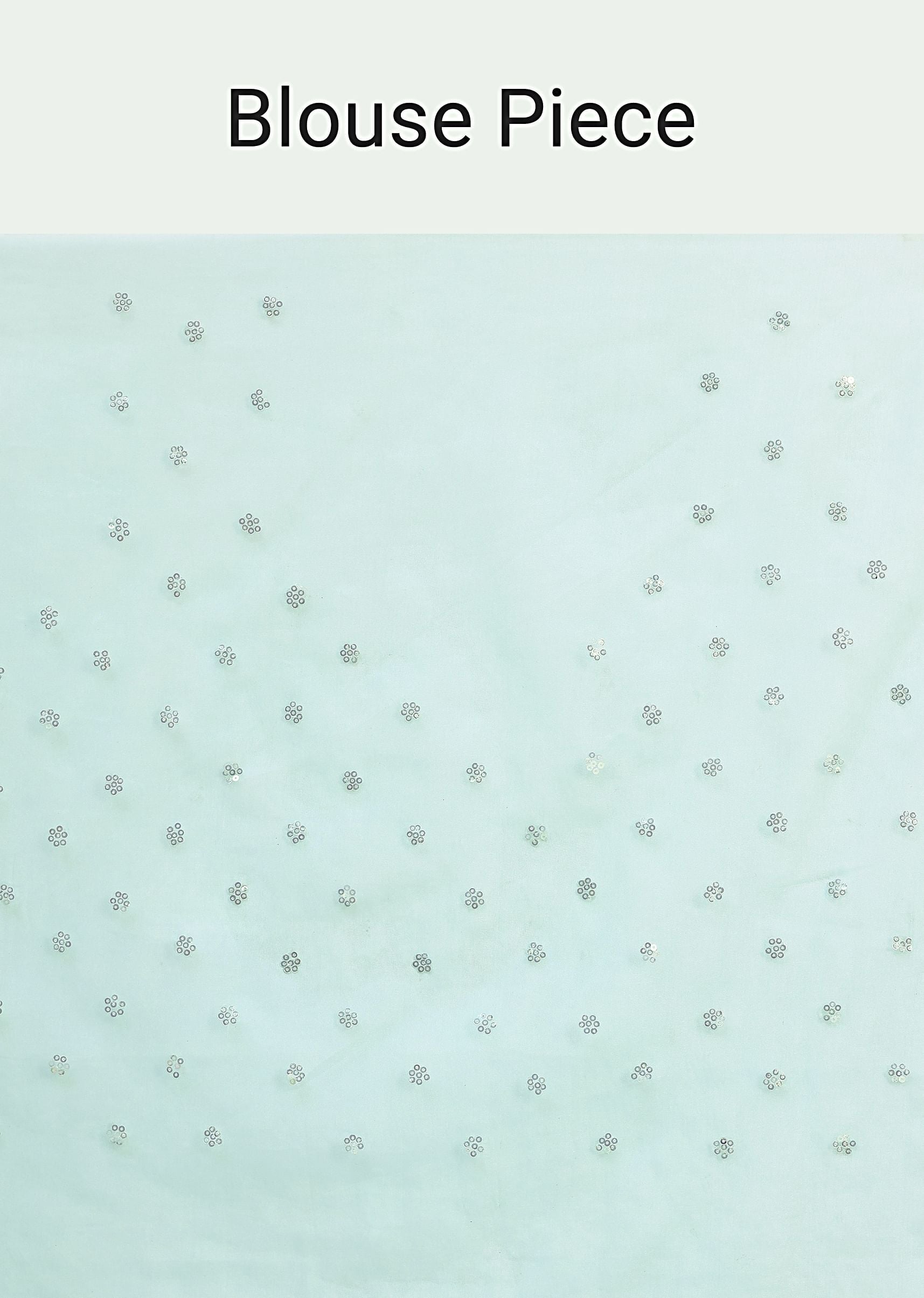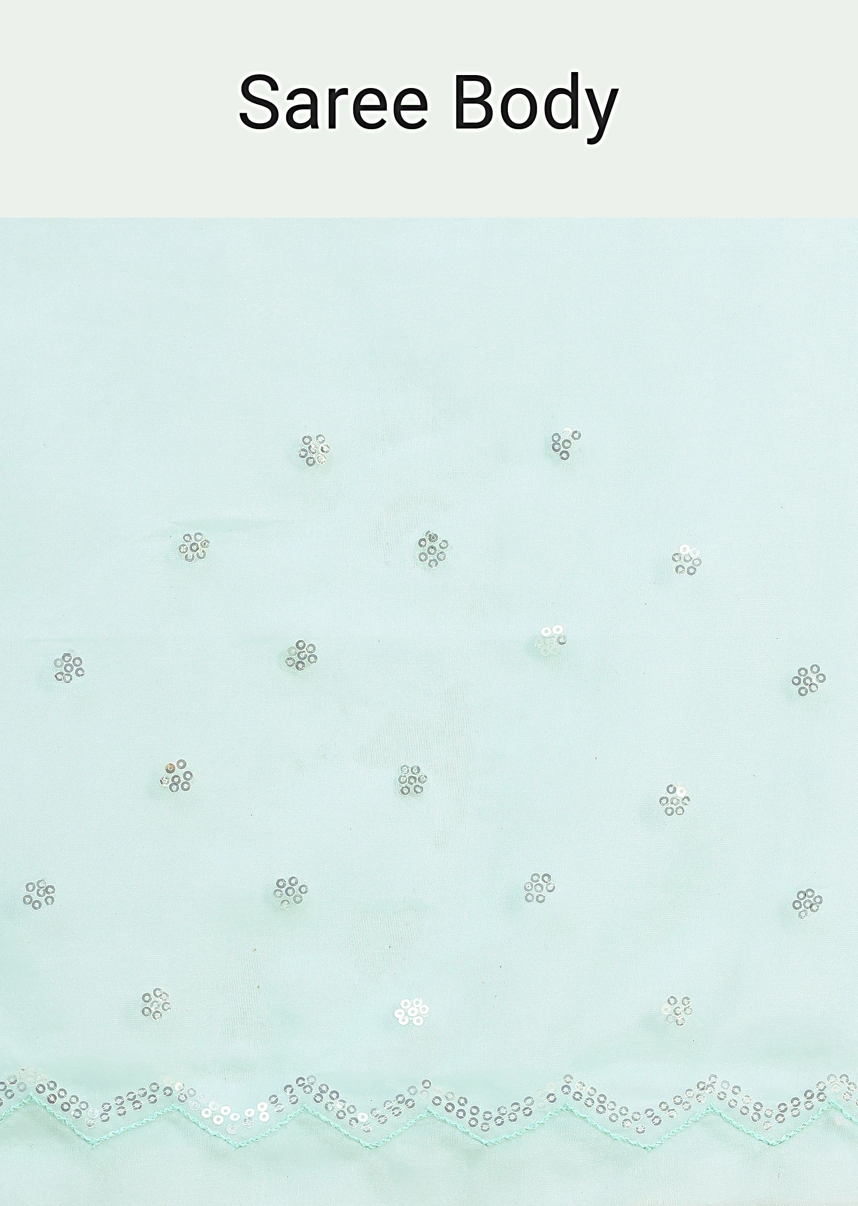 Blue Organza Floral Printed Saree With Sequin Scallop Border And Unstitched Blouse