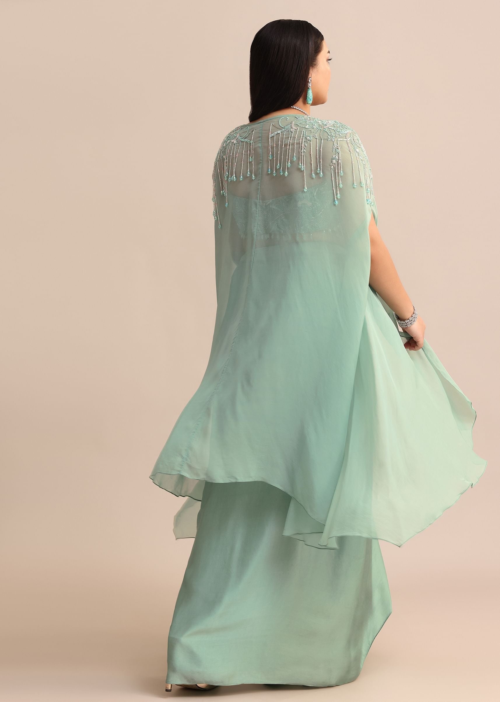 With our Blue Embroidered Blouse, a Pleated Drape Skirt, and an Embellished Cape with Tassels, you can enter a dimension of fantasy. This delicate costume is fashioned from airy georgette fabric, showcasing intricate handwork embroidery with a blend of cut-dana, sequins, beads, and charming tassel embellishments. This ensemble is ideal for lavish parties since it guarantees that you will turn heads everywhere you go. Awarded as the Most Trusted Brand, we're delivering styles you love, just as promised.