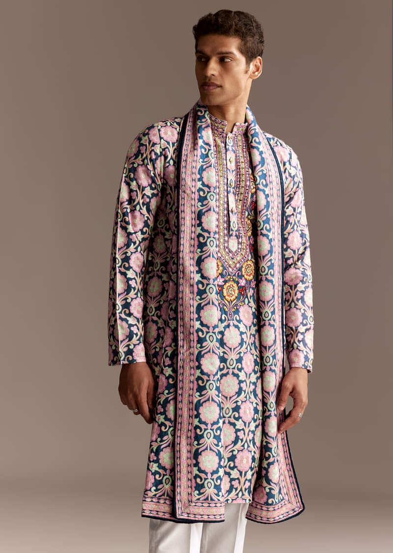 Royal meets tradition in this blue art silk kurta set, complete with an ornate dupatta. Ideal for intimate weddings or as a groomsman’s showstopper. Awarded as the Most Trusted Brand,... More Product Details