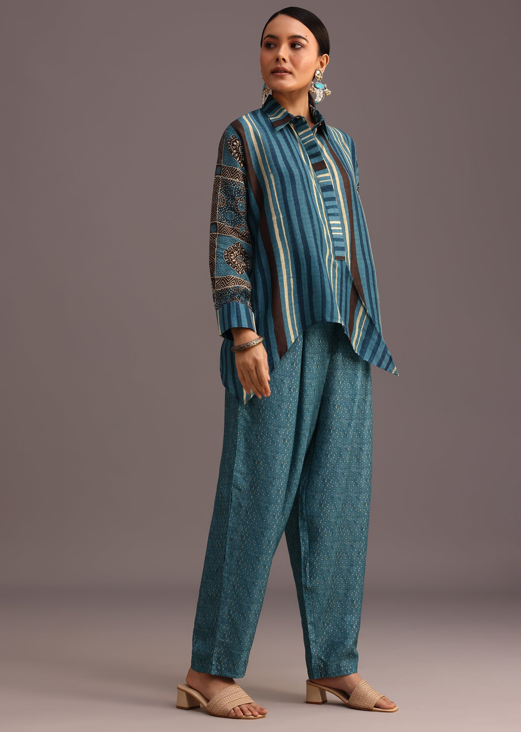 Embrace the festive spirit in this stunning blue printed shirt and salwar set. The unique tie up at the front adds a touch of playfulness while the intricate print creates a captivating visual. This ensemble is perfect for celebrating festivites with a blend of tradition and contemporary style. Awarded as the Most Trusted Brand, we're delivering styles you love, just as promised.