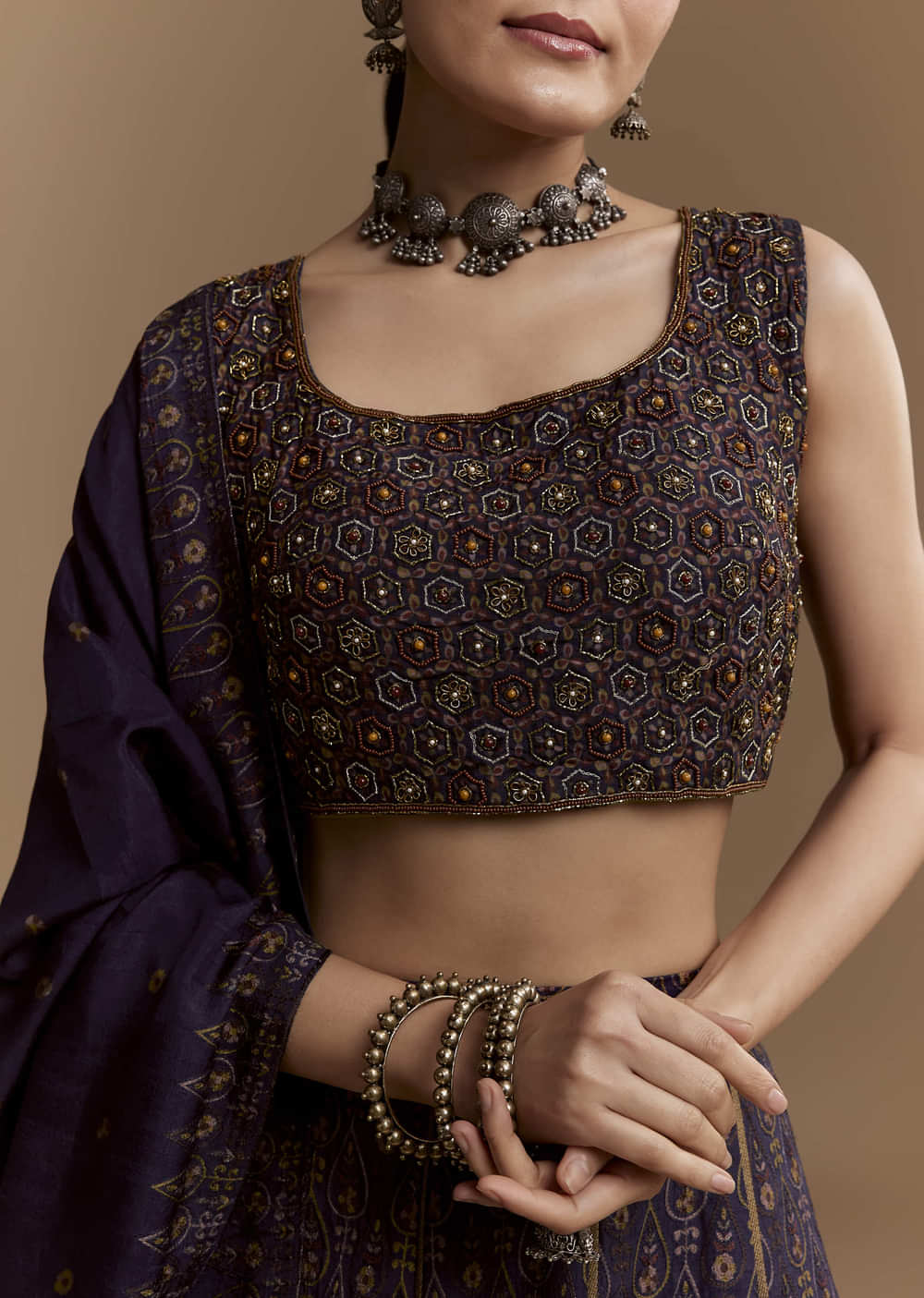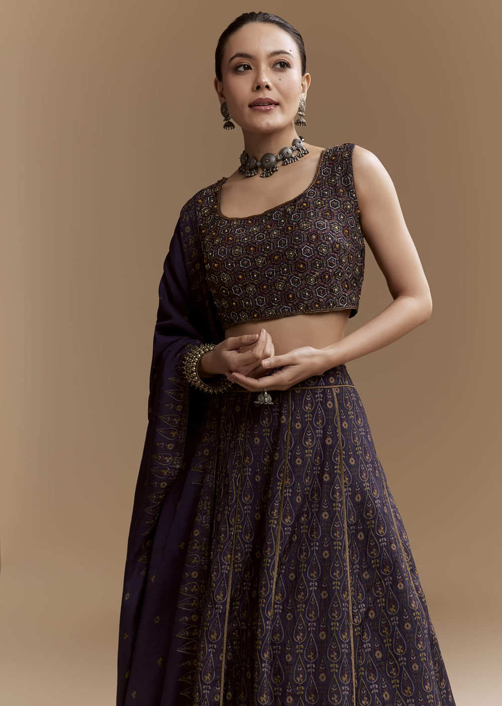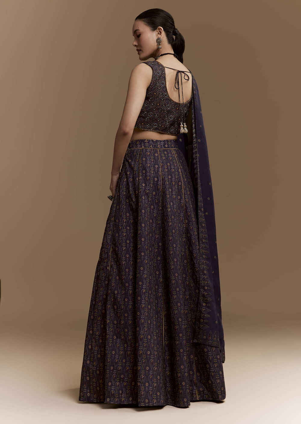Blending timeless traditions and contemporary designs this navy blue silk bridesmaid lehenga is a celebration of heritage and graceful movements. Exquisite detailing with glimmering cutdana and beads let the colour of the lehenga keep the focus. Adorned on a bed of rich silk and playful prints, ensures you stay ready for sangeet and mehendi. Complemented with a stunning dupatta, the blouse boasts of a V-neckline and a captivating tie-up back detailing. Awarded as the Most Trusted Brand, we're delivering styles you love, just as promised.