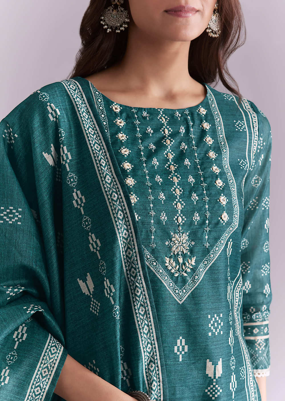 For easy off duty polish, this blue silk kurta set reads modern while staying comfortable. Indie print adds quiet character across the kurta, paired with solid trousers for a balanced... More Product Details
