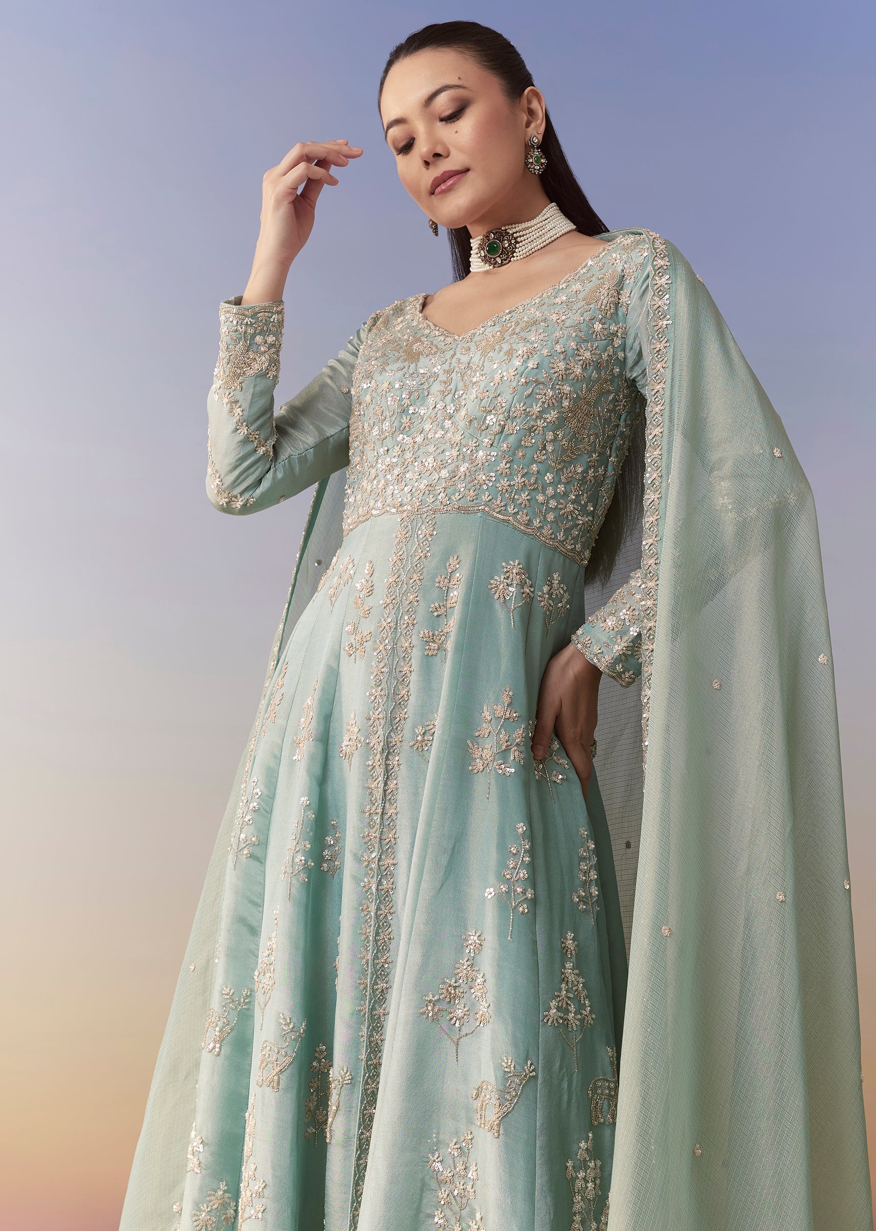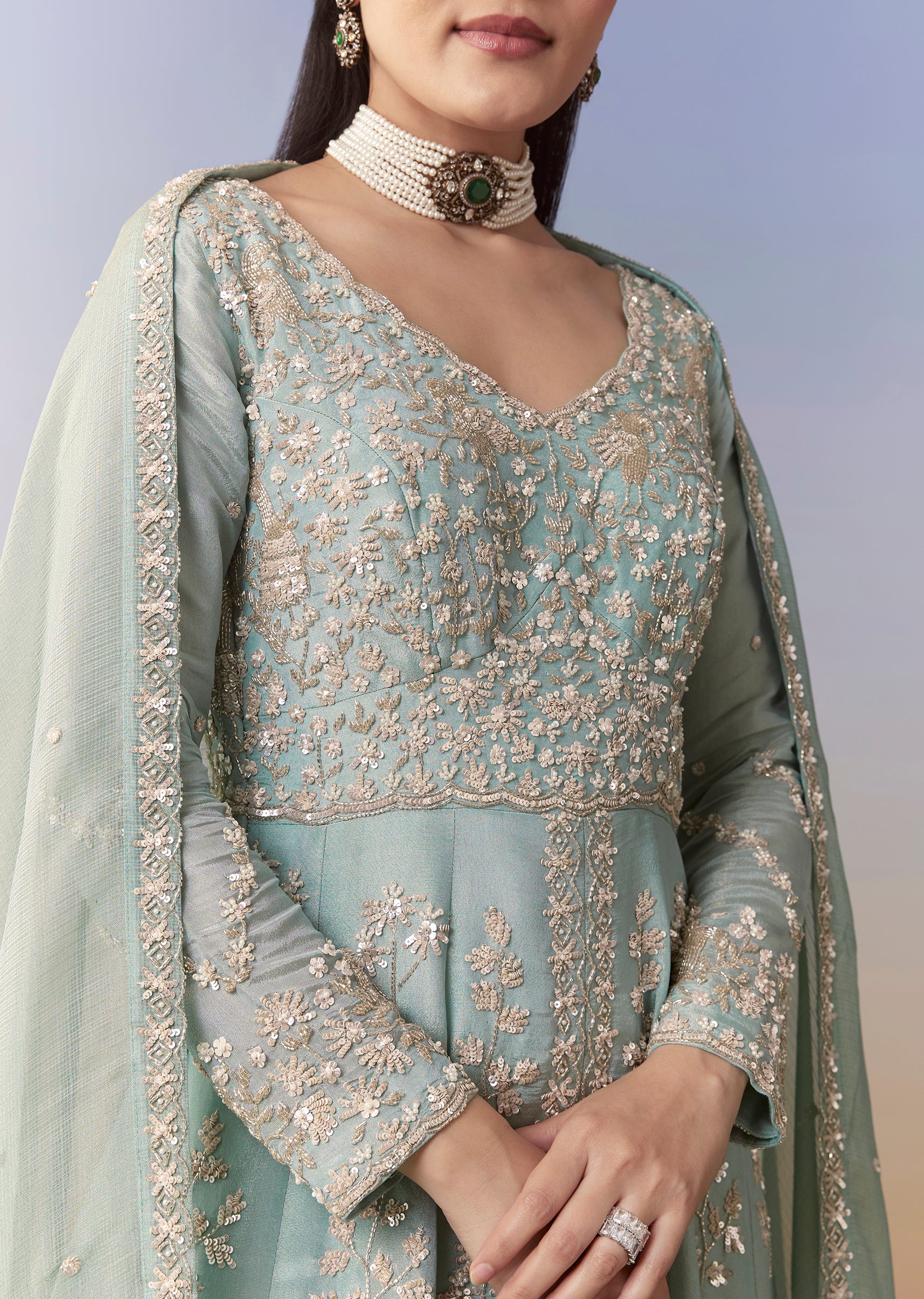 Blue Slit Anarkali Palazzo Set with Sequin Work