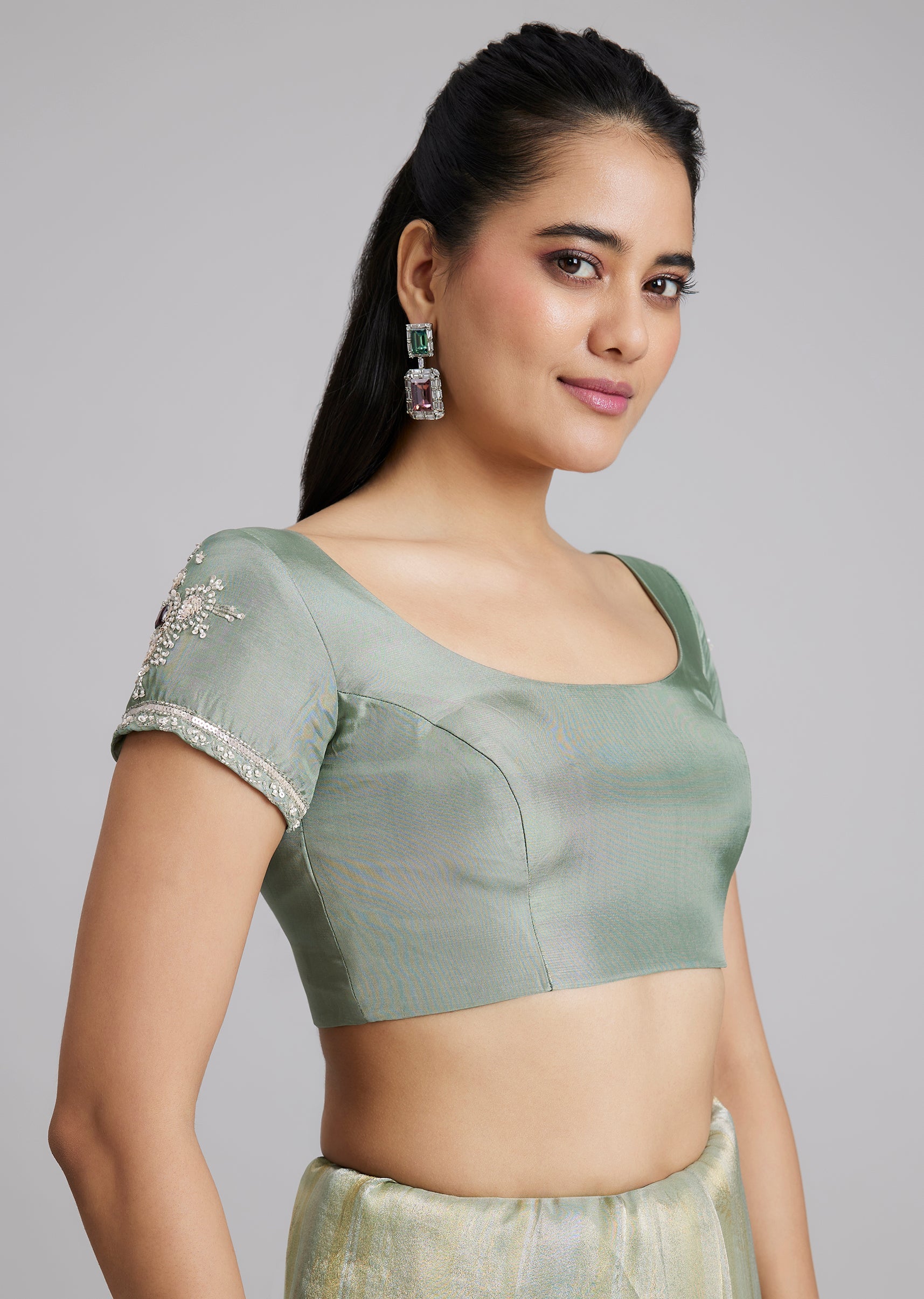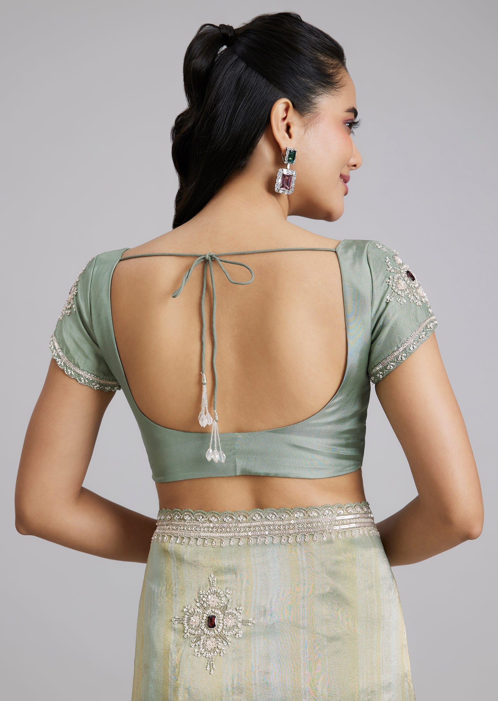 Fit Tips:Ensure the blouse fits snug at the bust and waist for a smooth drape and better pallu fall.