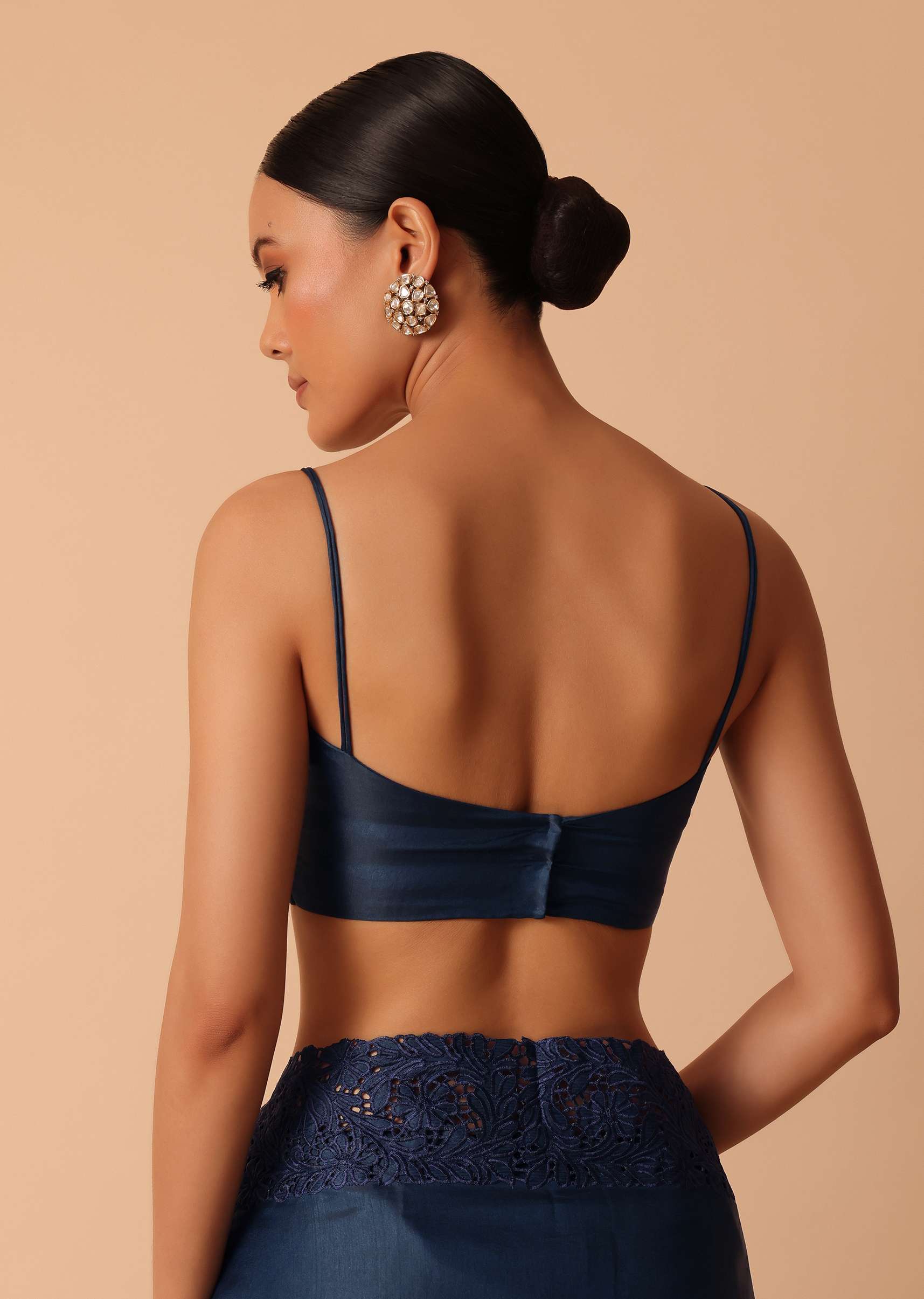 Perfect for stylish festive nights and special events, this solid saree comes decked in a striking navy blue color. Cut from rich tussar fabric, it is elevated with exquisite lace... More Product Details