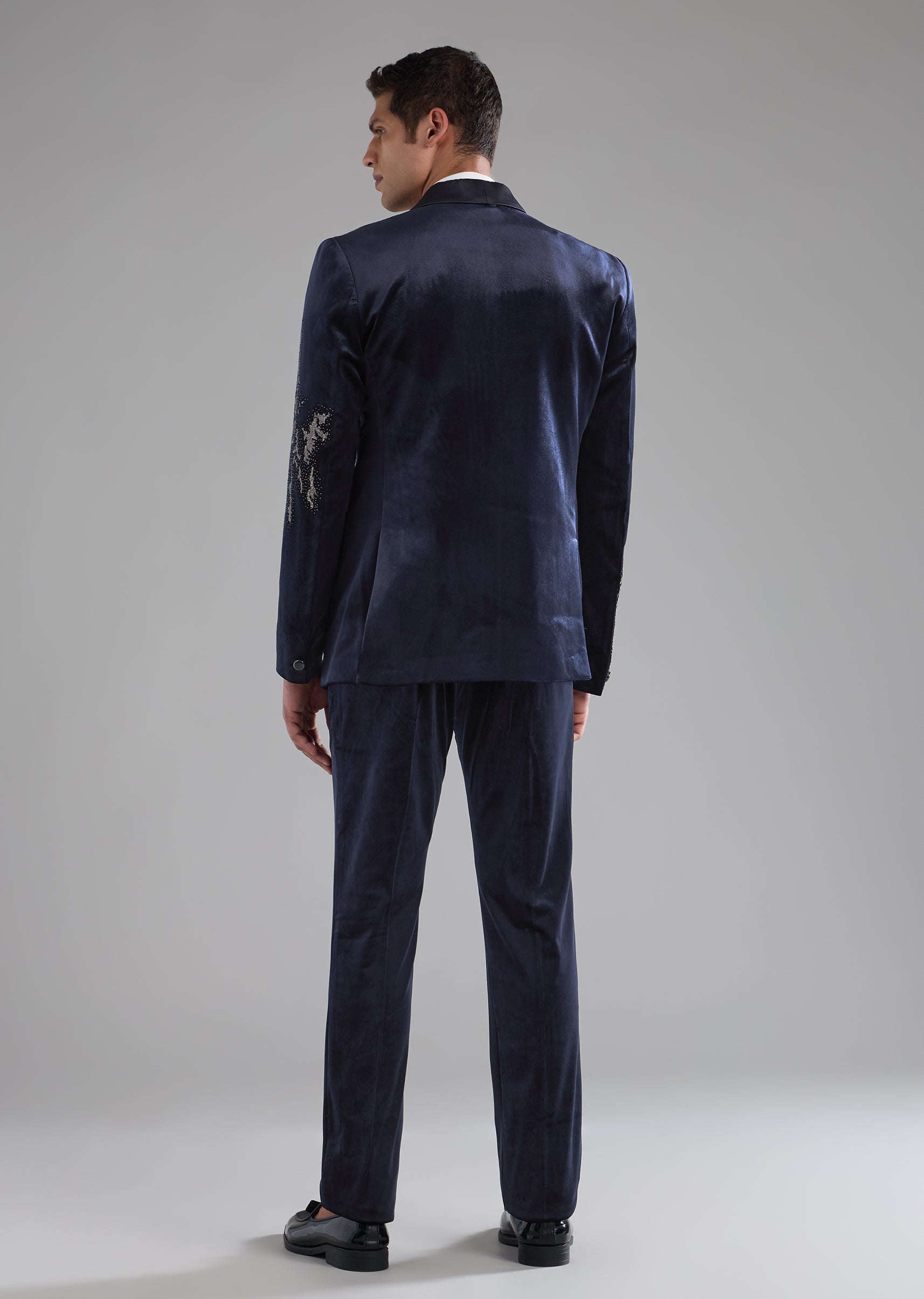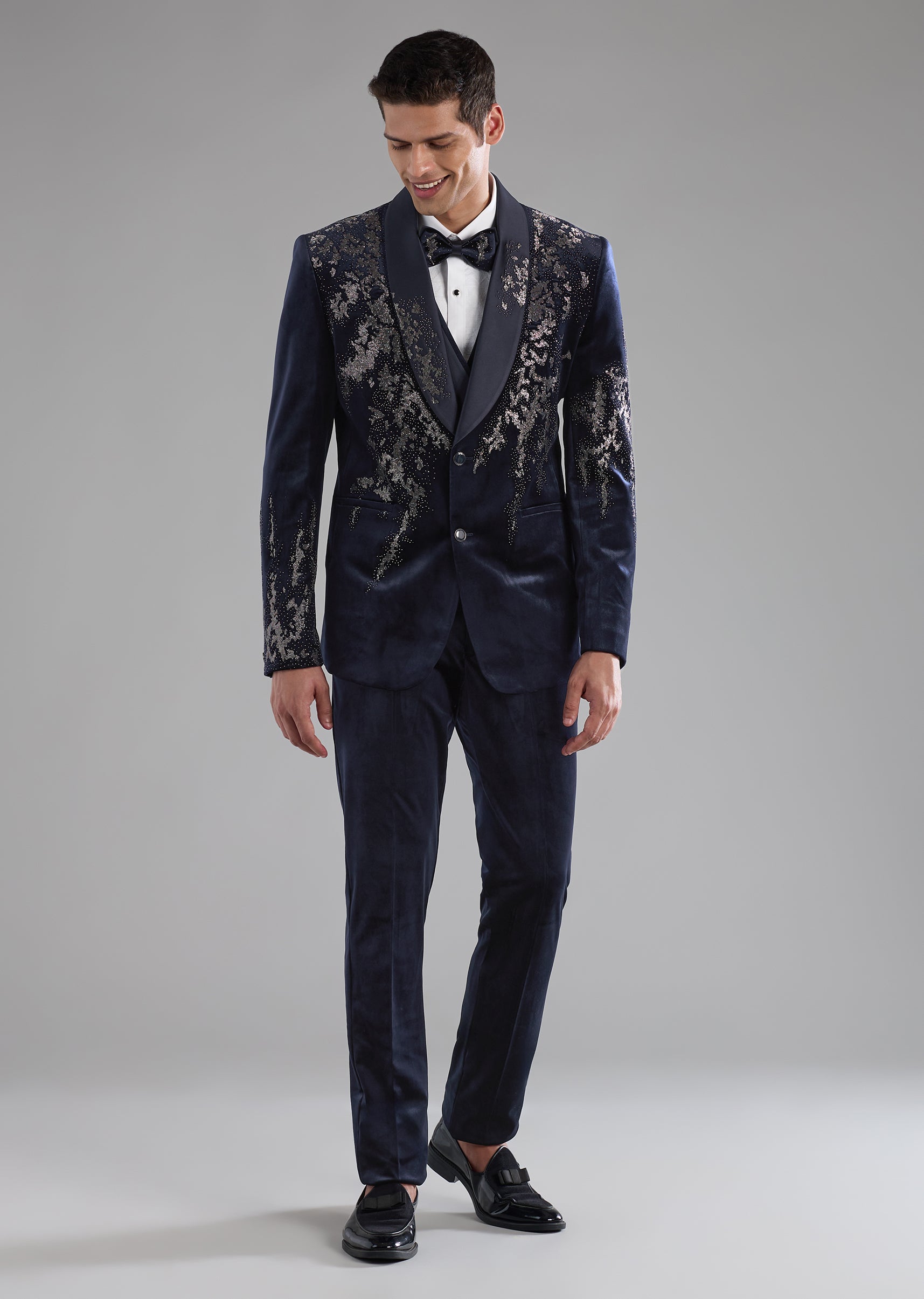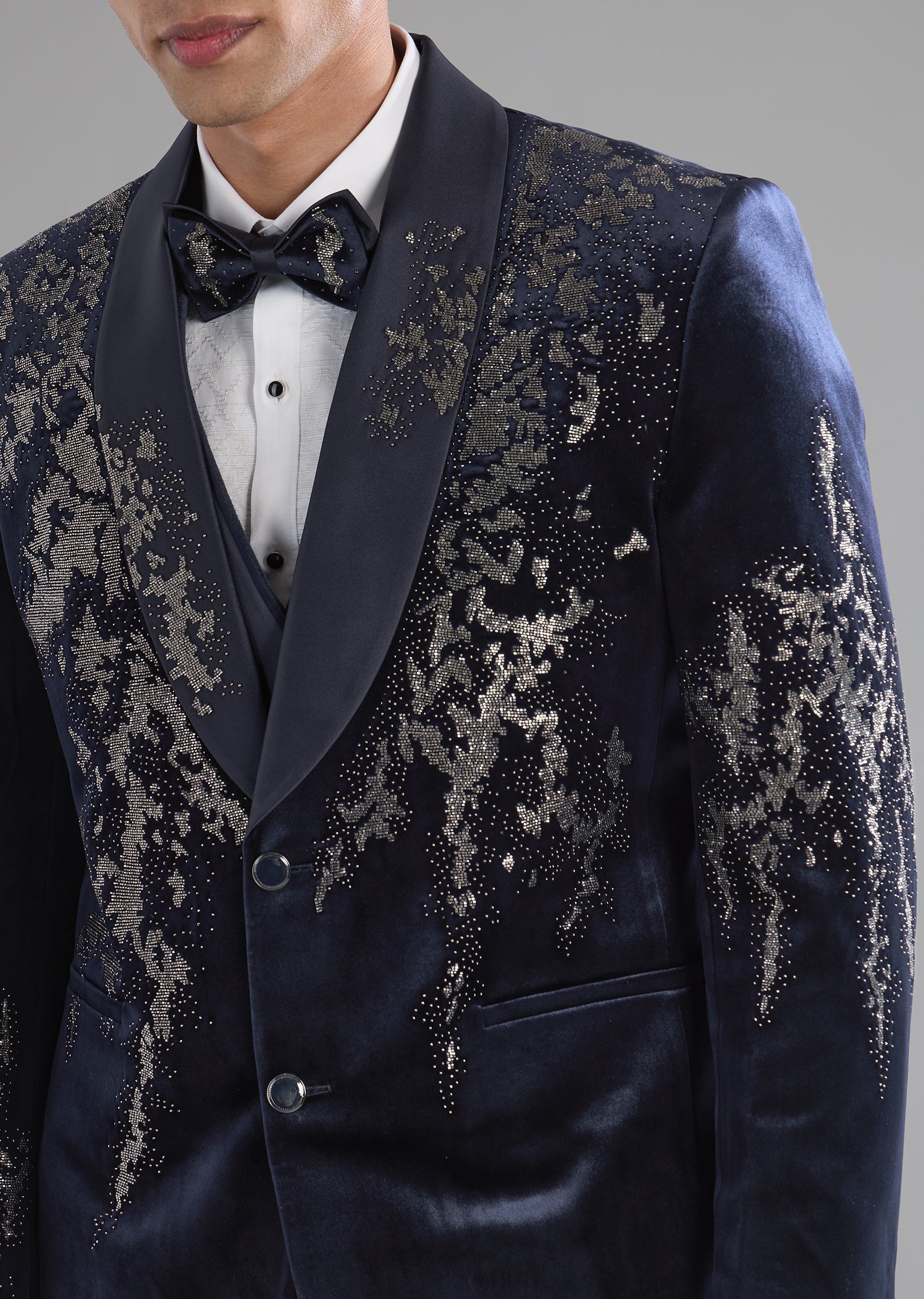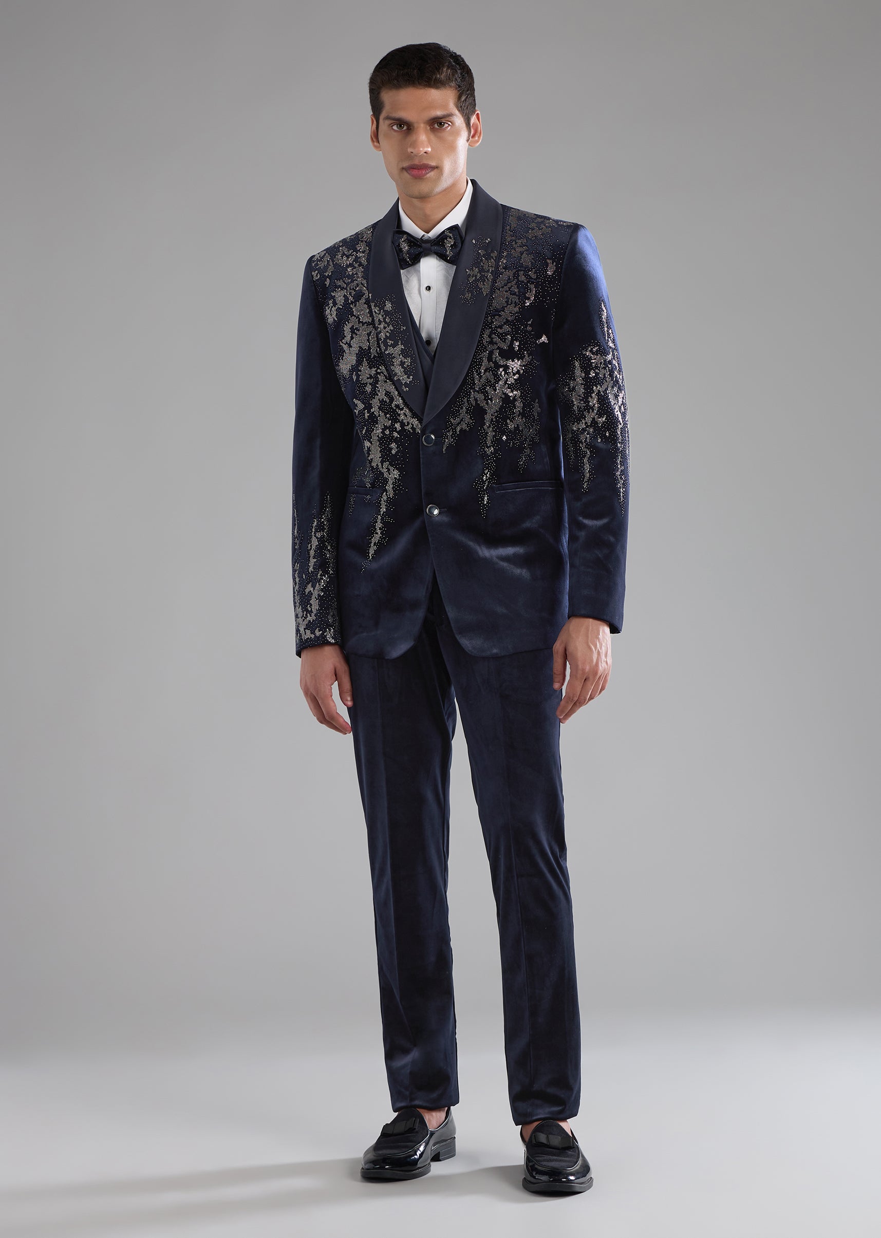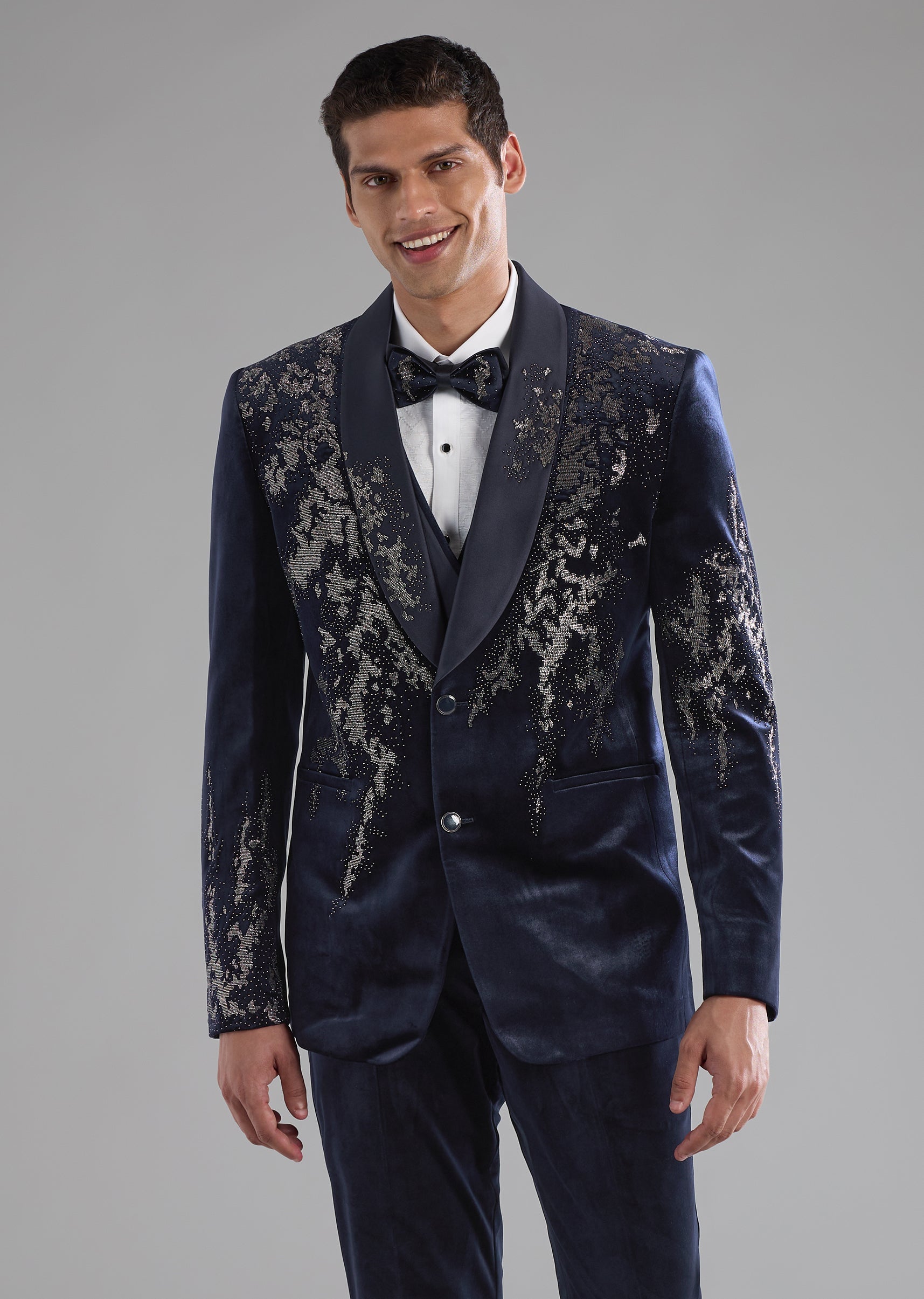 Luxurious and commanding, this velvet tuxedo set is designed for occasions that call for refined grandeur. Accented with elegant beadwork, the rich velvet fabric adds depth and a regal finish... More Product Details