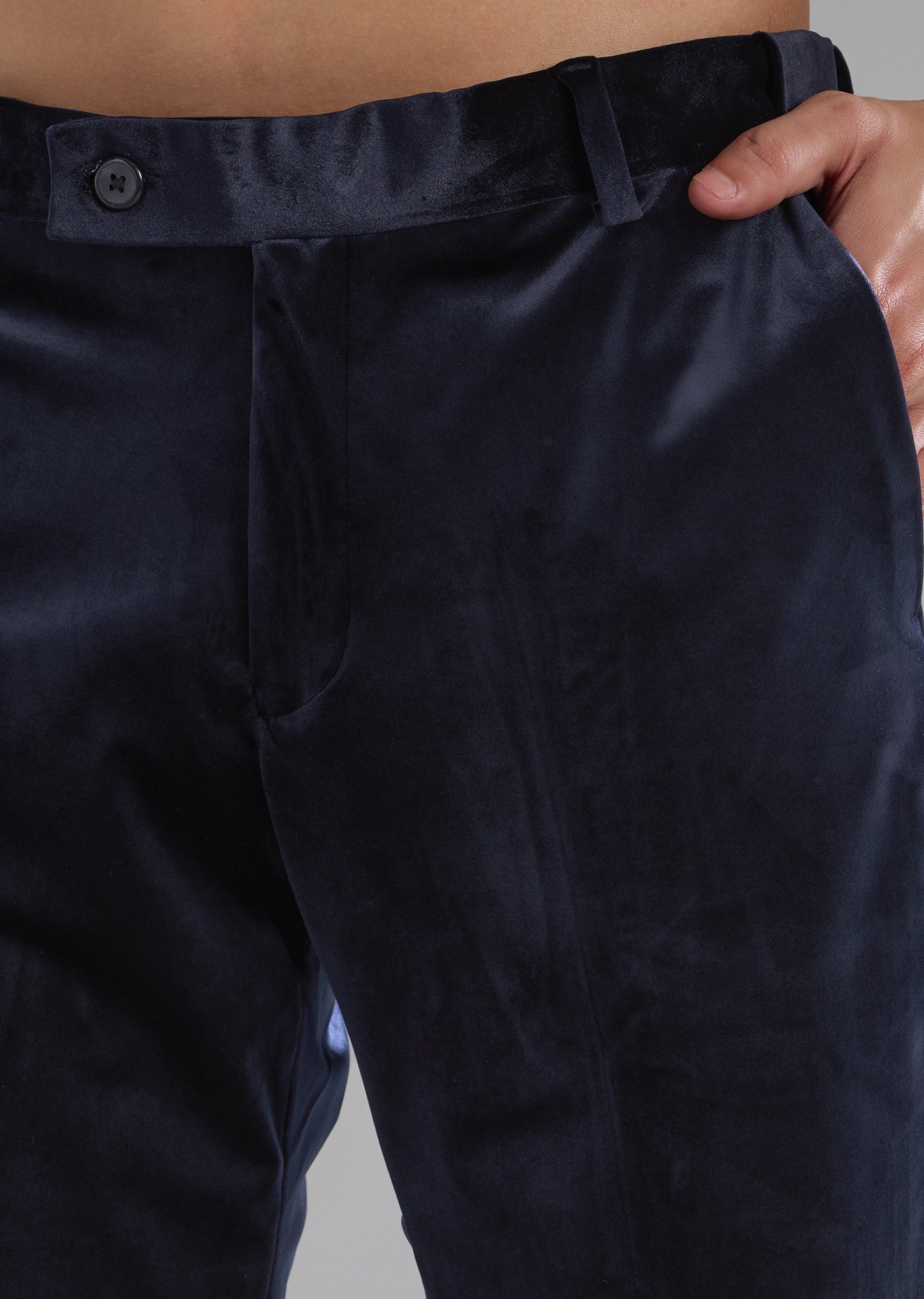 Pair with polished formal shoes and keep accessories minimal to let the velvet texture and bead detailing stand out.