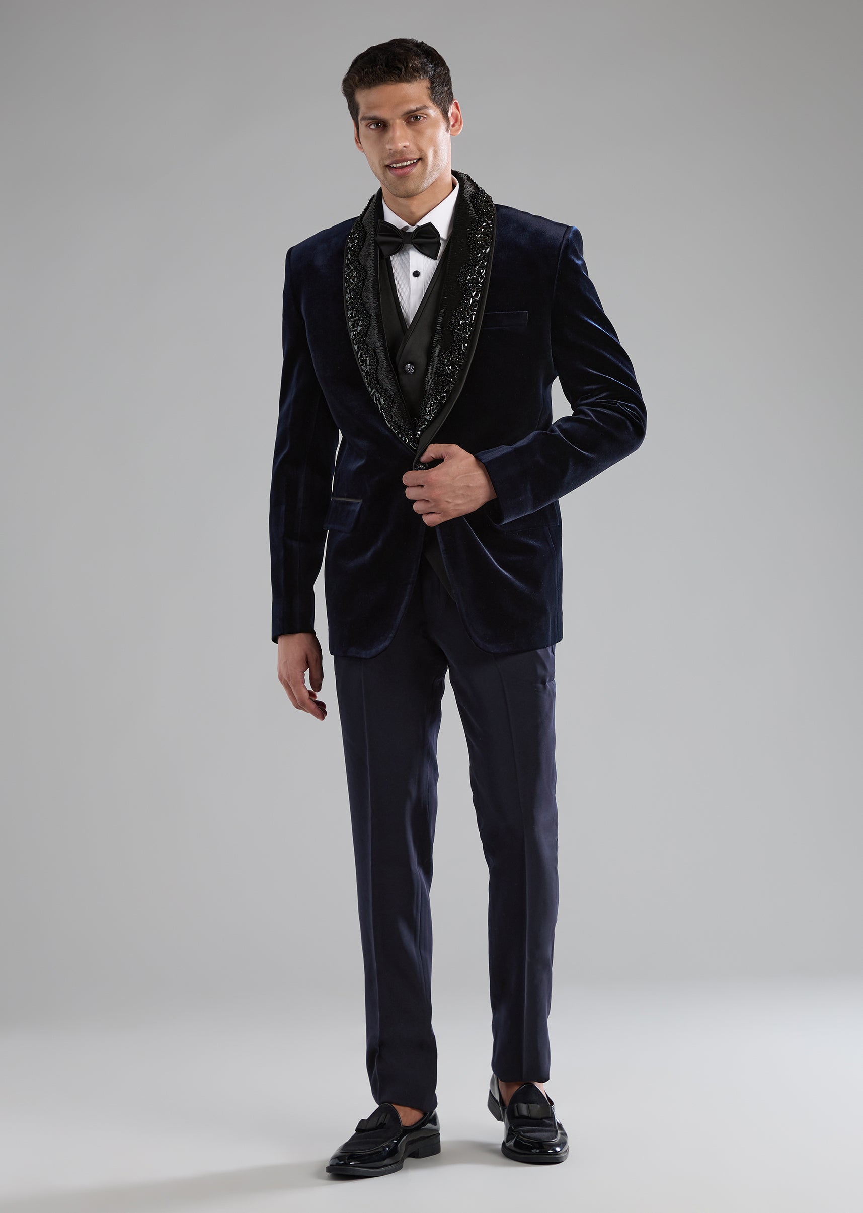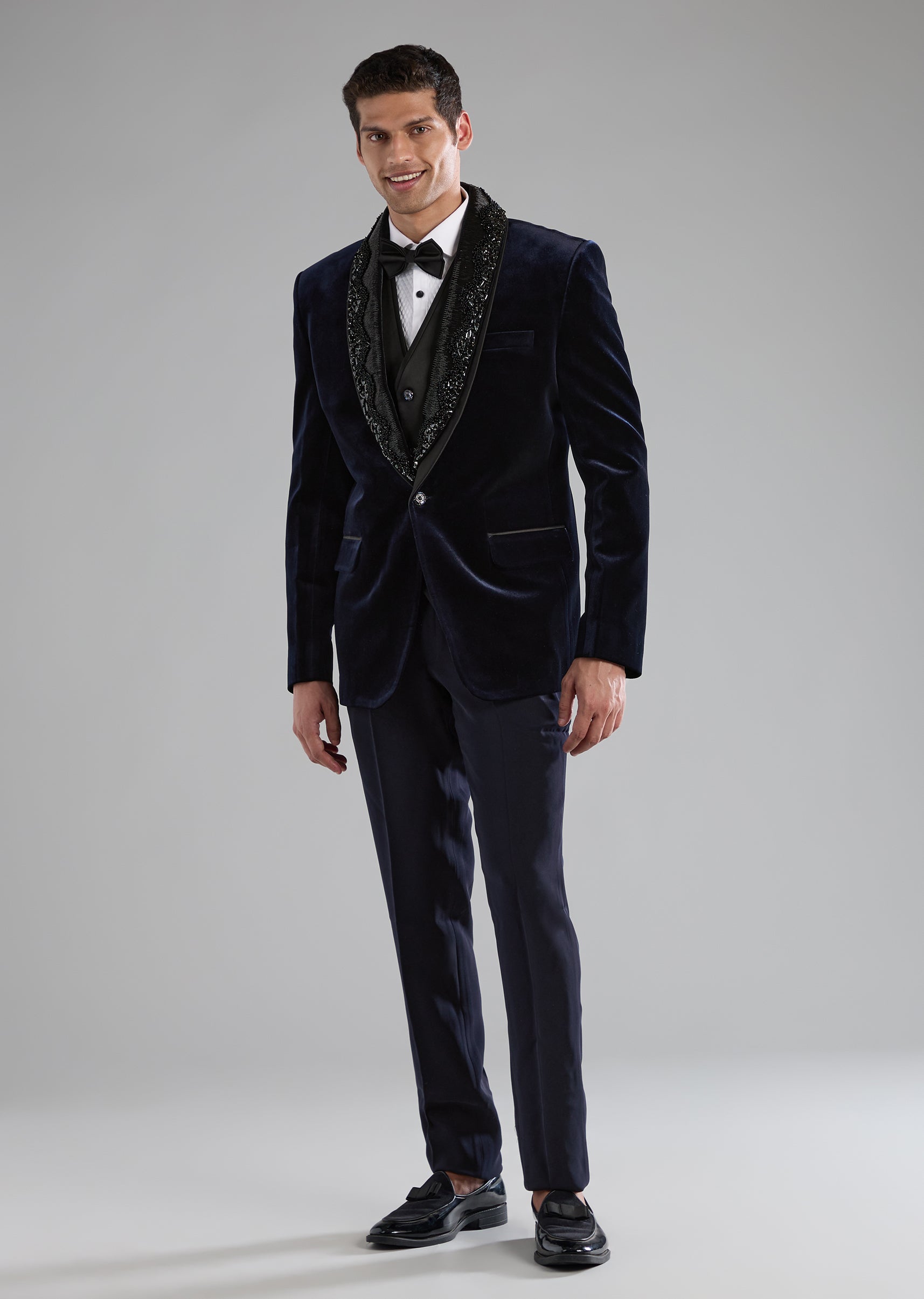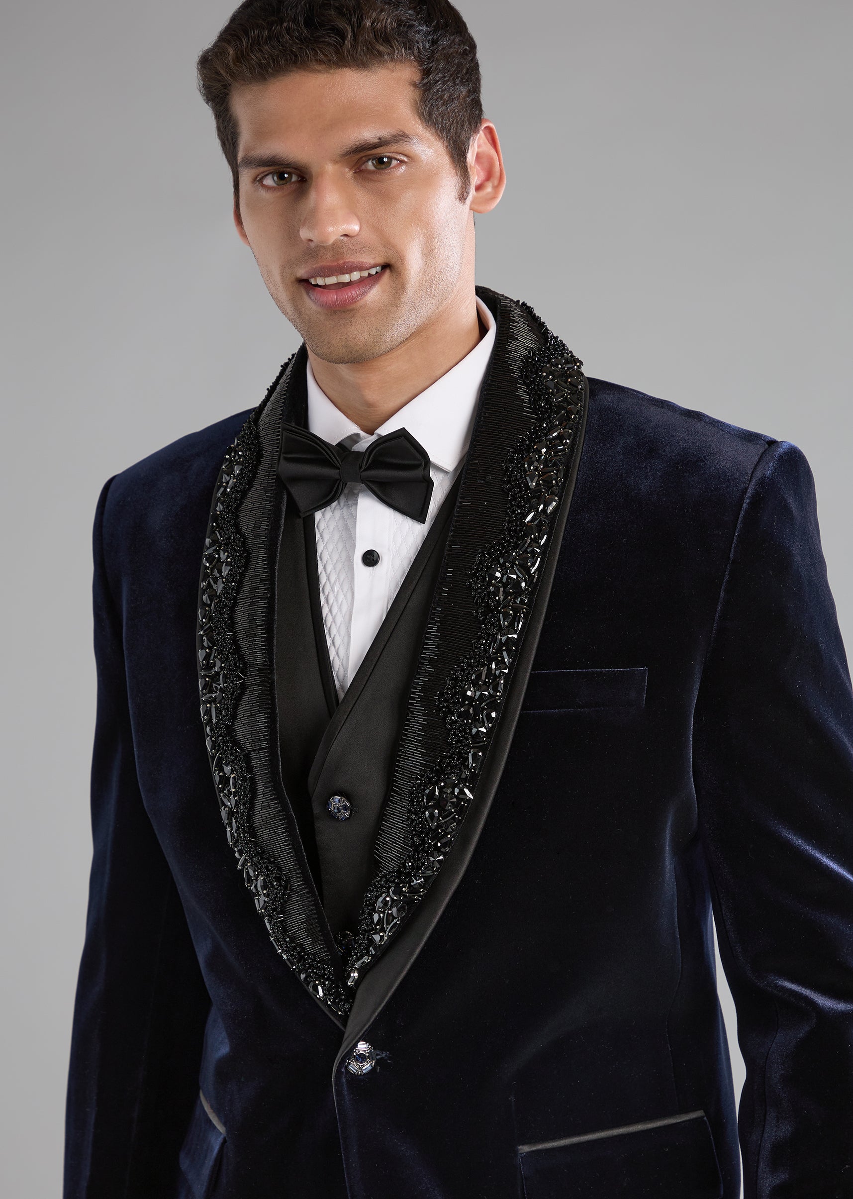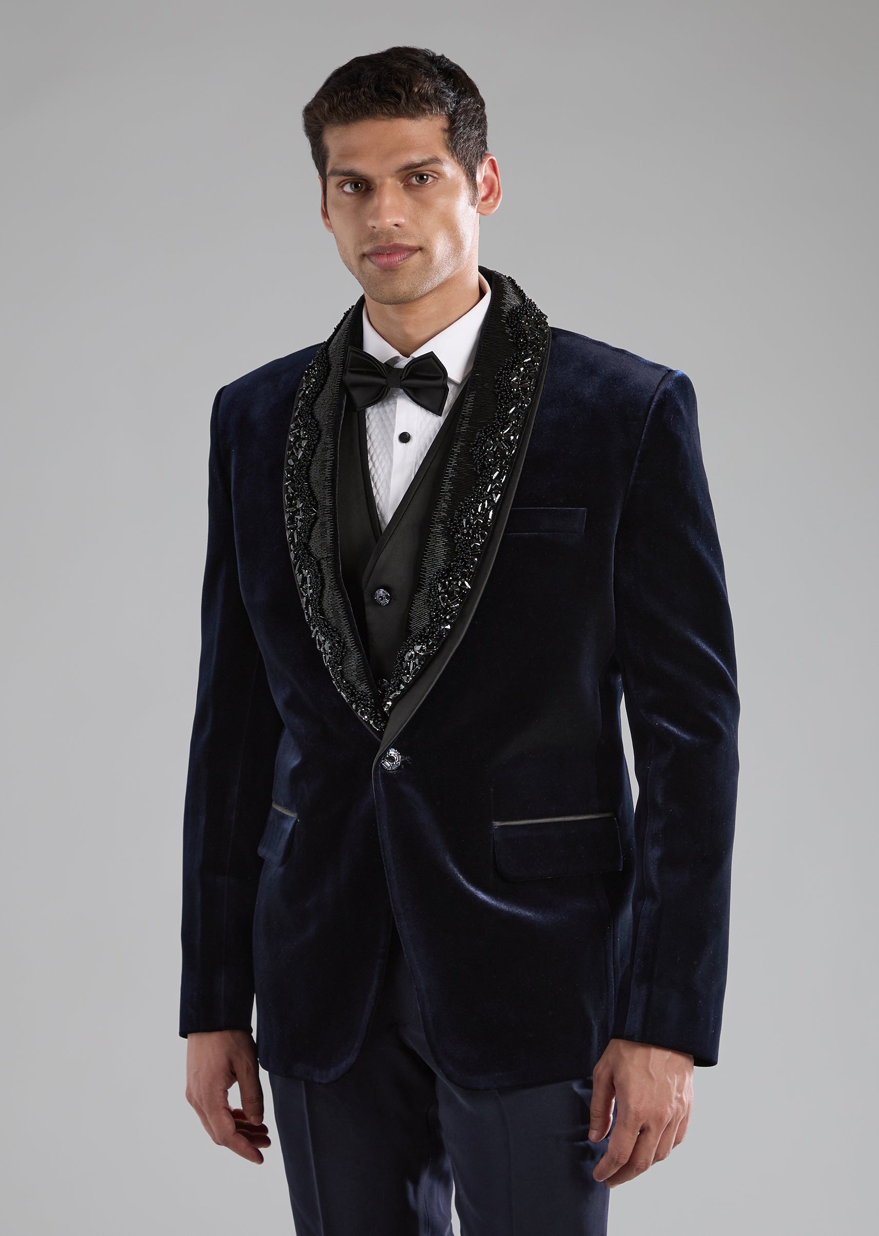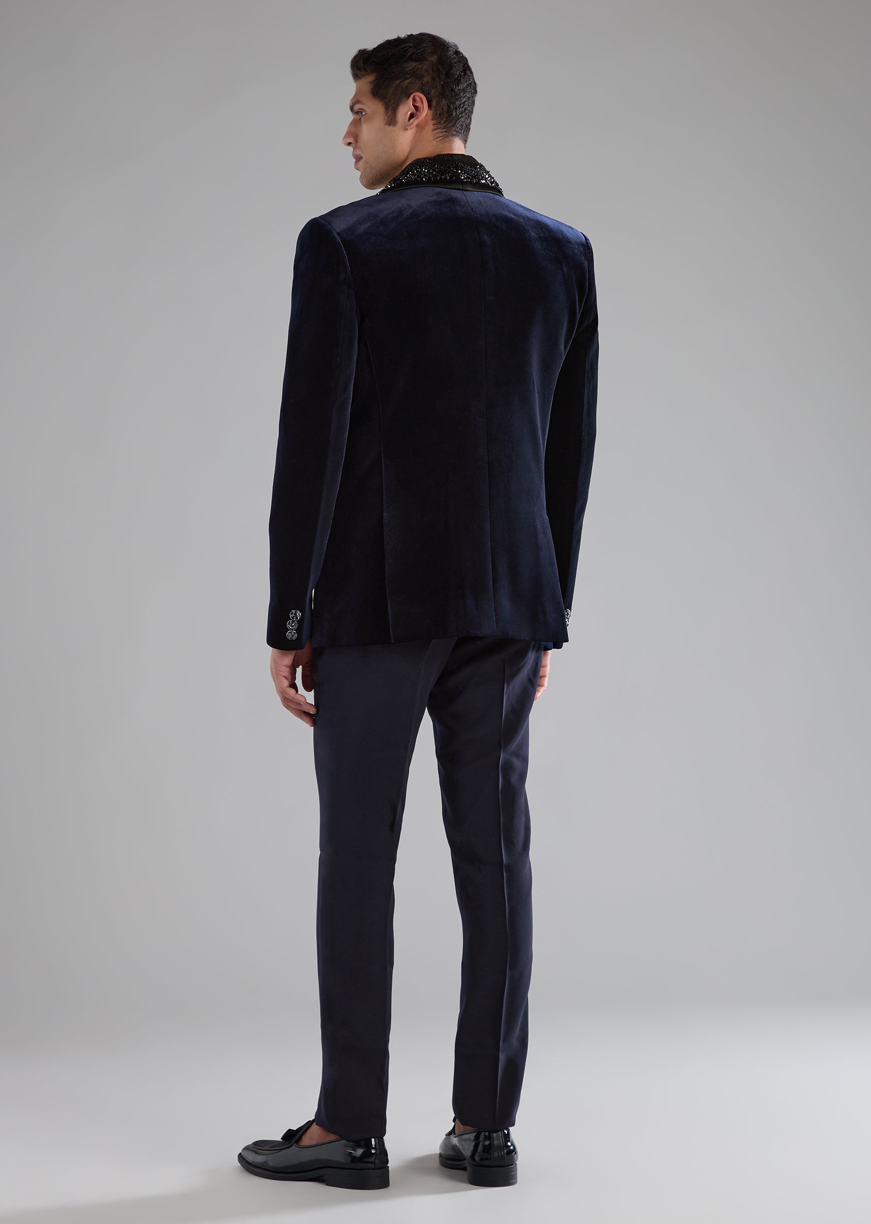 Blue Velvet Tuxedo with Embellished Detail