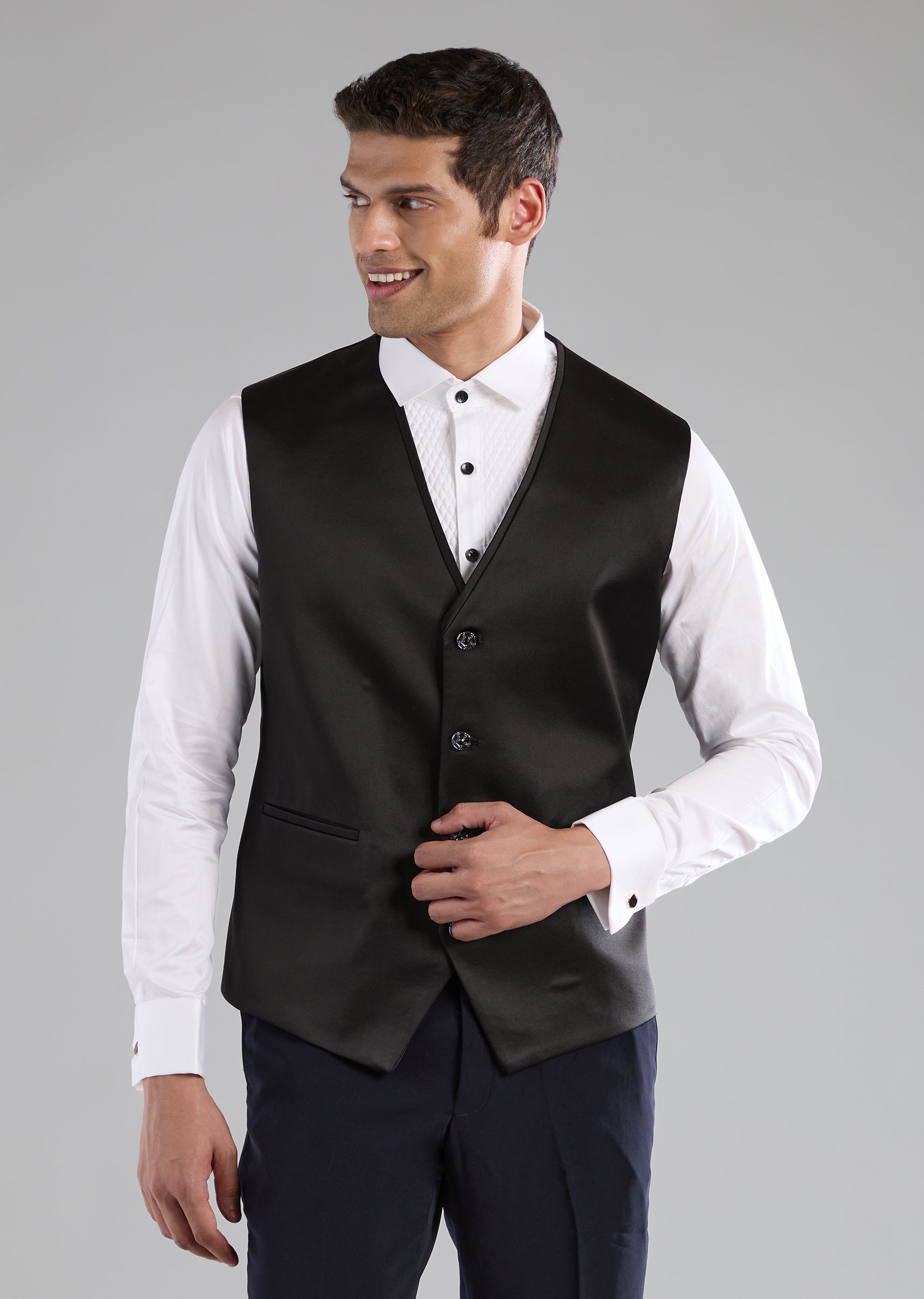 Fit Tips:The front button closure ensures a secure, tailored fit, offering comfort and a clean silhouette throughout long celebrations.