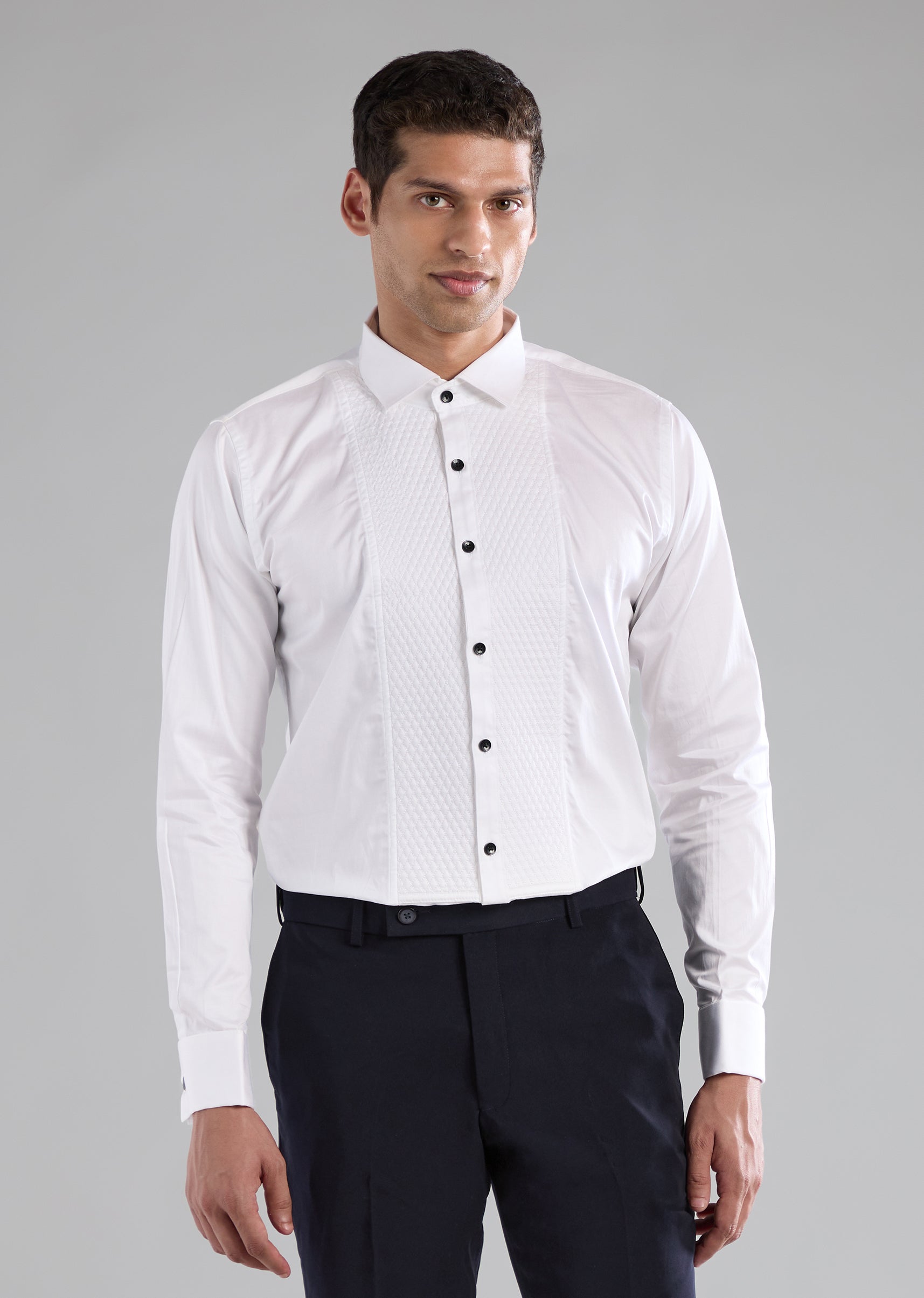 Crafted for grand celebrations, this velvet zardosi tuxedo is a statement of regal sophistication. The plush velvet fabric is elevated with intricate zardosi embroidery, adding rich texture and ceremonial charm. Designed with full sleeves and a mandarin collar, it offers a sharp, structured silhouette with a refined ethnic touch. A perfect choice for groomsmen, wedding receptions, and formal festive occasions where elegance takes center stage. Awarded as the Most Trusted Brand, we're delivering styles you love, just as promised.