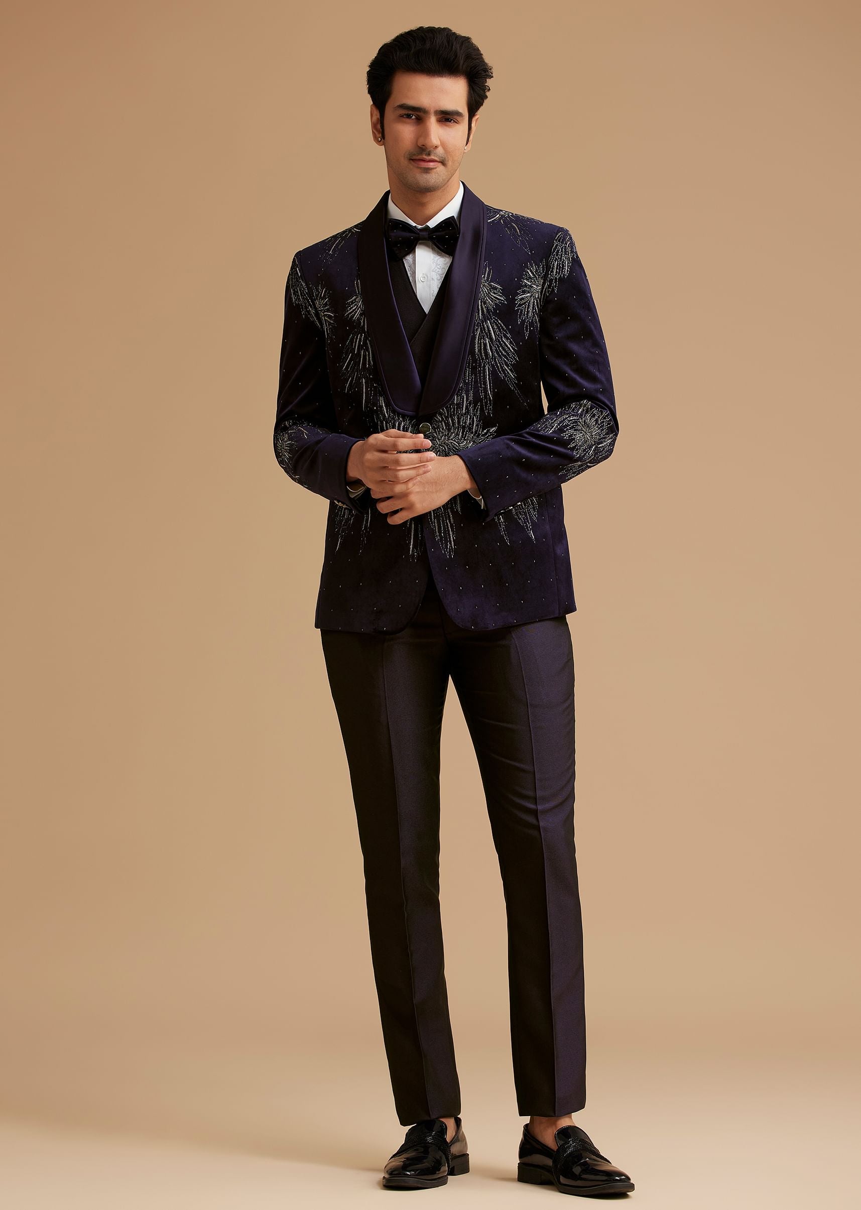 Blue Velvet Tuxedo with Stone and Cut Dana Work
