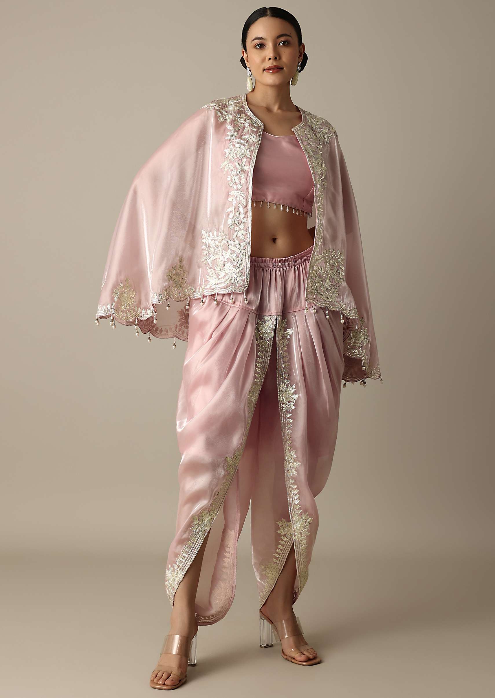 Blush Pink Organza Gotta Patti Work Dhoti Set