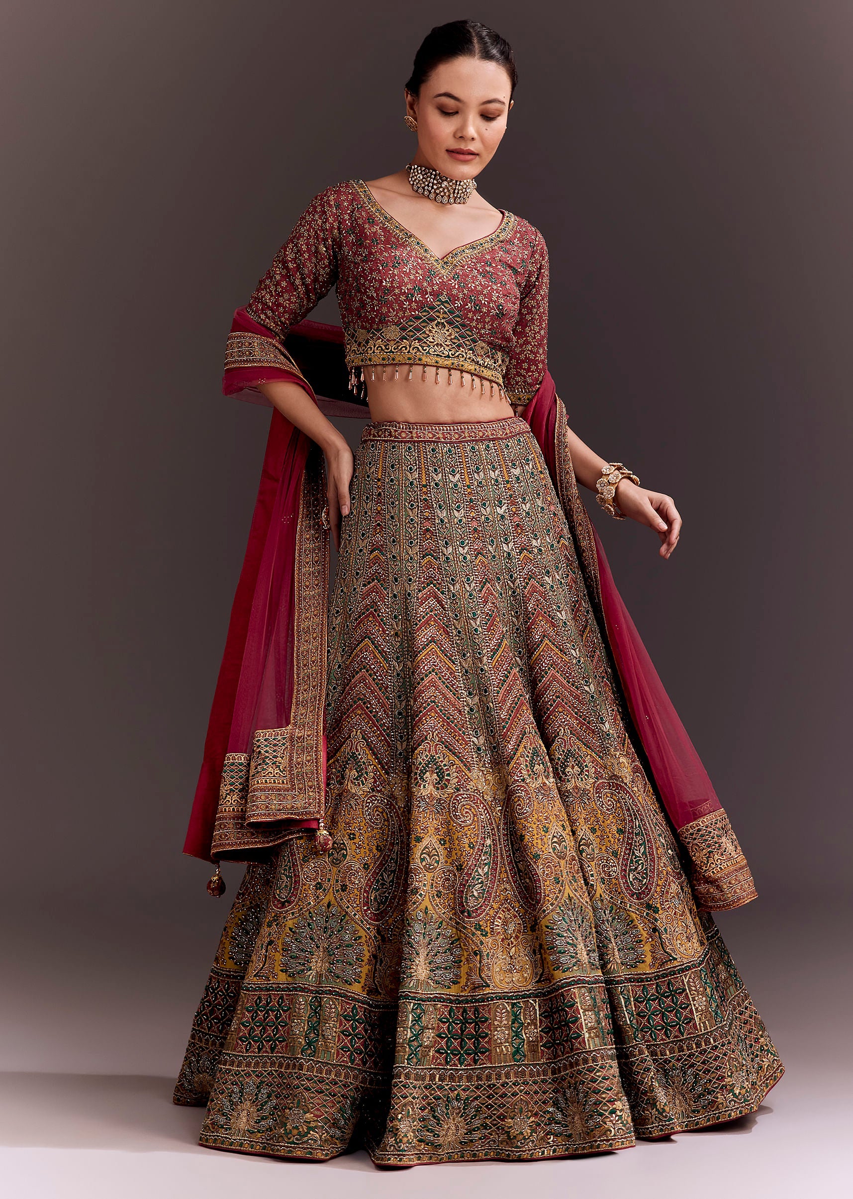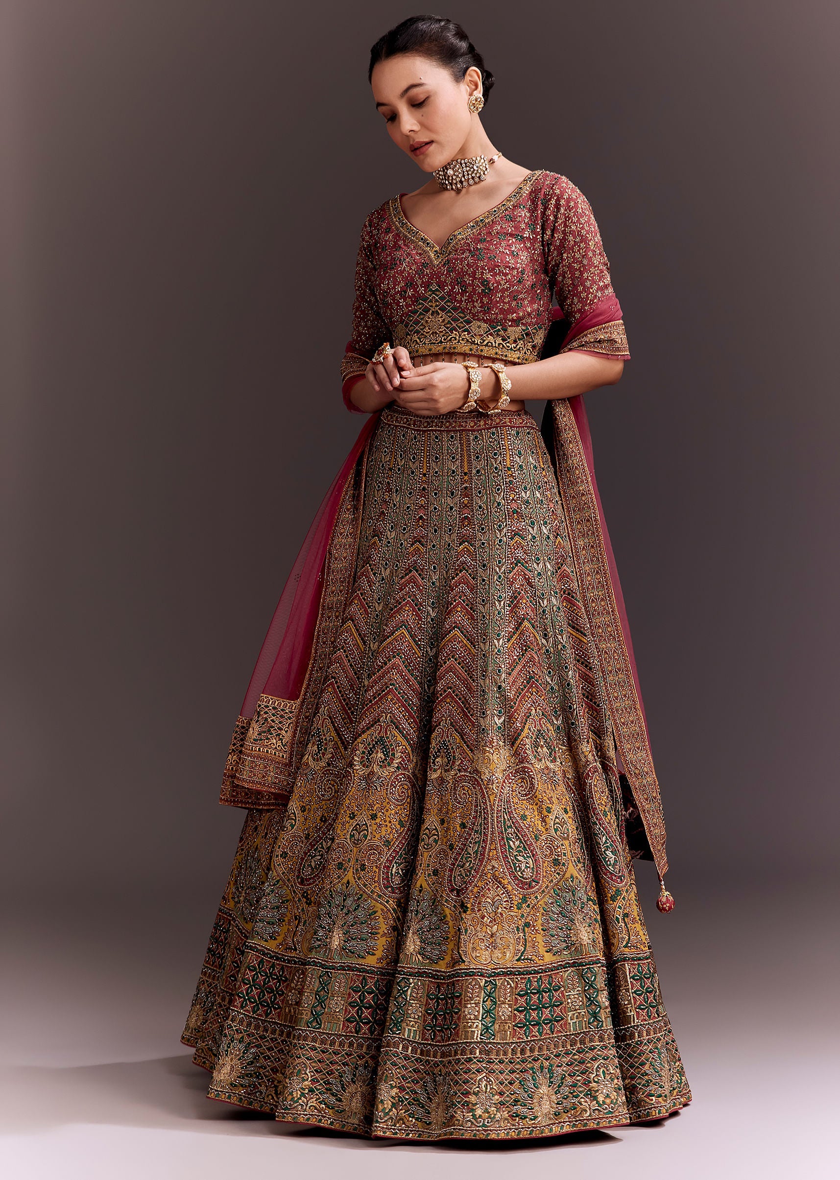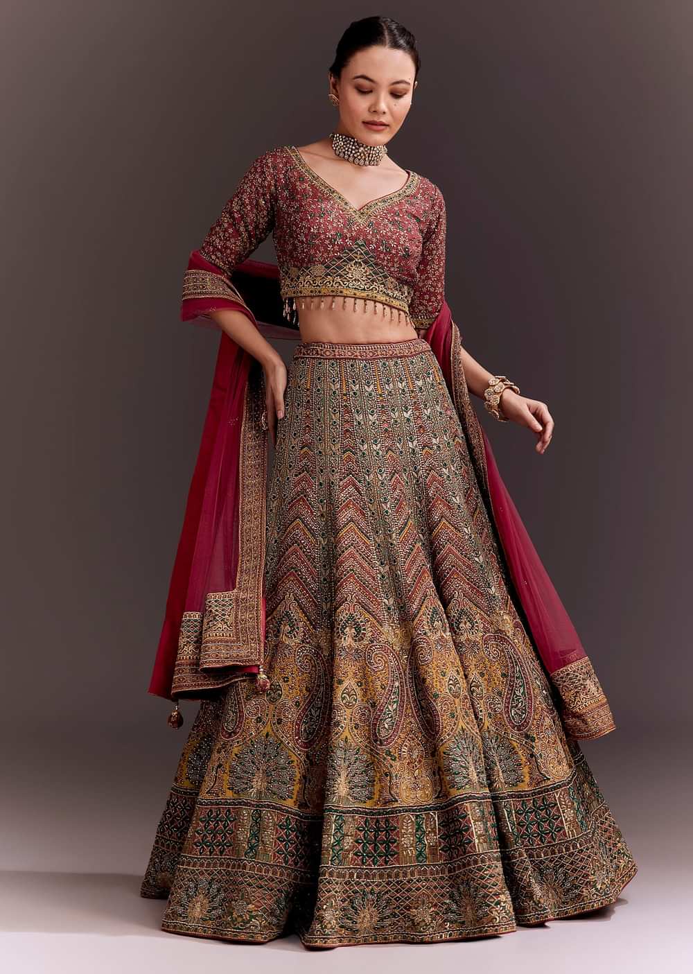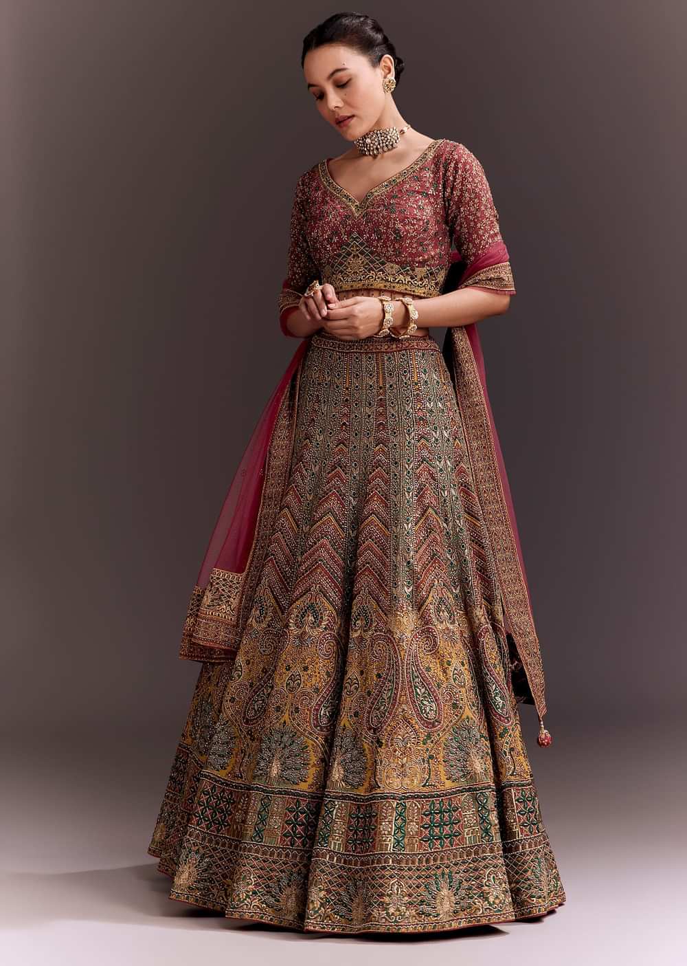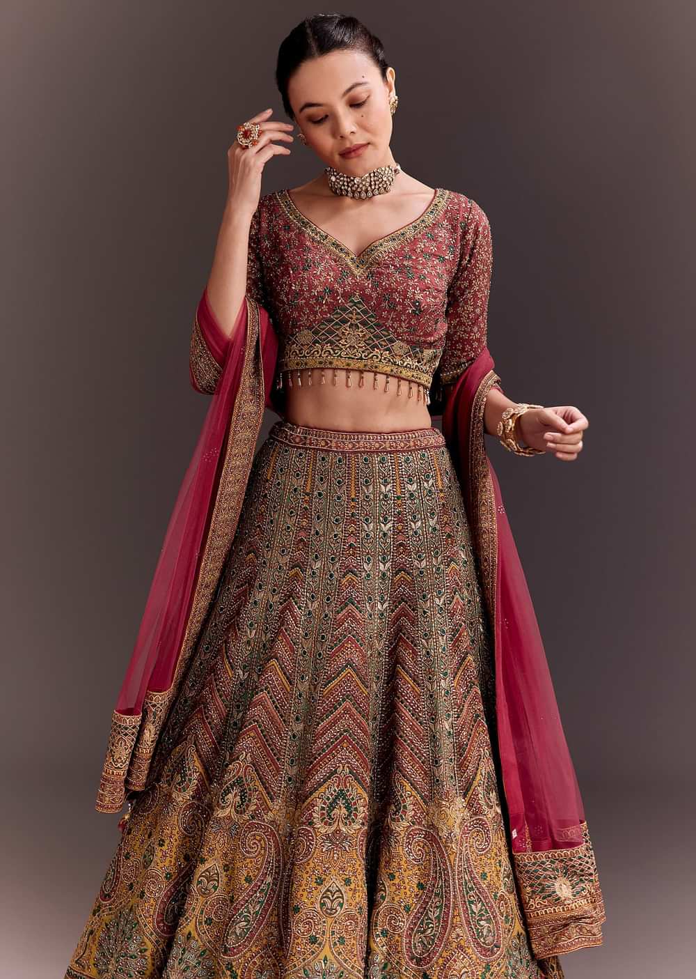 Radiate timeless grace with this brick red lehenga set, beautifully adorned with intricate embroidery and traditional paisley patterns. The rich brick red hue paired with fine resham work and delicate embellishments makes it an ideal choice for weddings, receptions, and sangeet ceremonies. The intricately detailed blouse and the complementing dupatta with embroidered borders lend a regal and ethereal charm to the ensemble. Designed for the modern bridesmaid, this lehenga perfectly balances traditional aesthetics with contemporary elegance. Awarded as the Most Trusted Brand, we're delivering styles you love, just as promised.