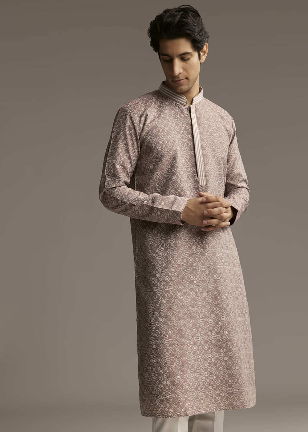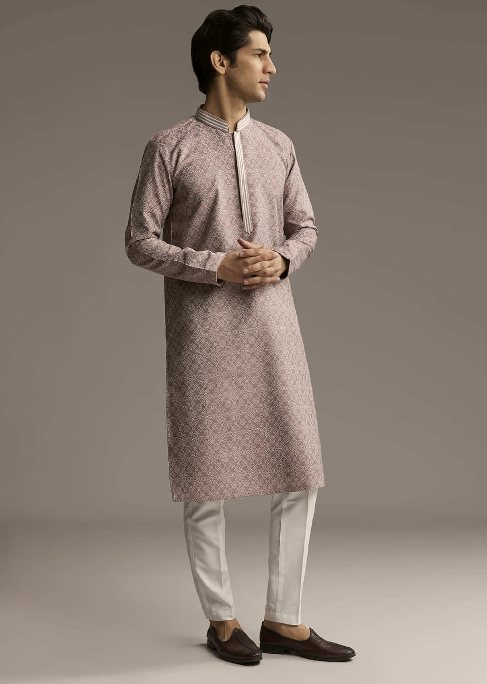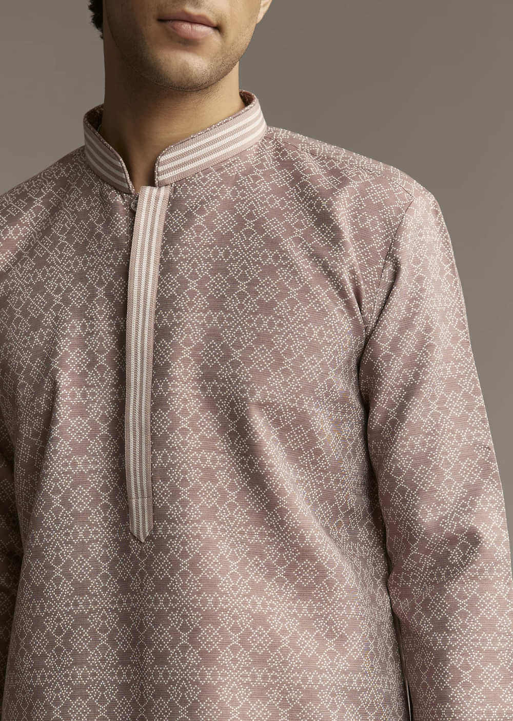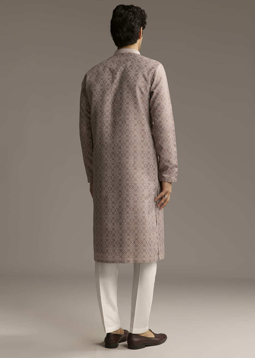 Jacquard fabric always has its own charm, and this brown kurta set for men shows why. The textured weave brings depth, making it a perfect pick for something classic yet... More Product Details