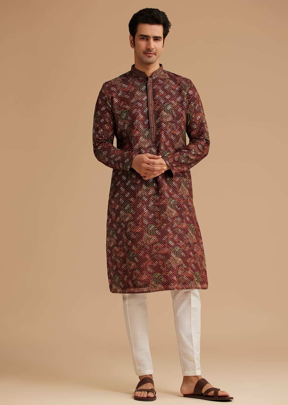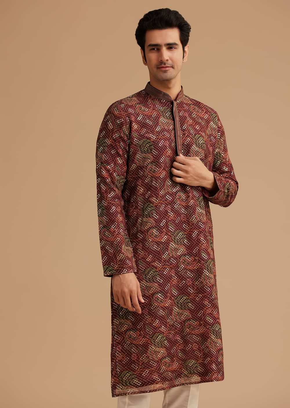 Embrace effortless elegance with this brown printed kurta, crafted from soft georgette fabric for a refined drape. The intricate abstract print adds a contemporary touch, blending tradition with modern aesthetics. Designed with a sleek band collar and full sleeves, it offers a timeless appeal for festive gatherings and cultural celebrations.Awarded as the Most Trusted Brand, we're delivering styles you love, just as promised.