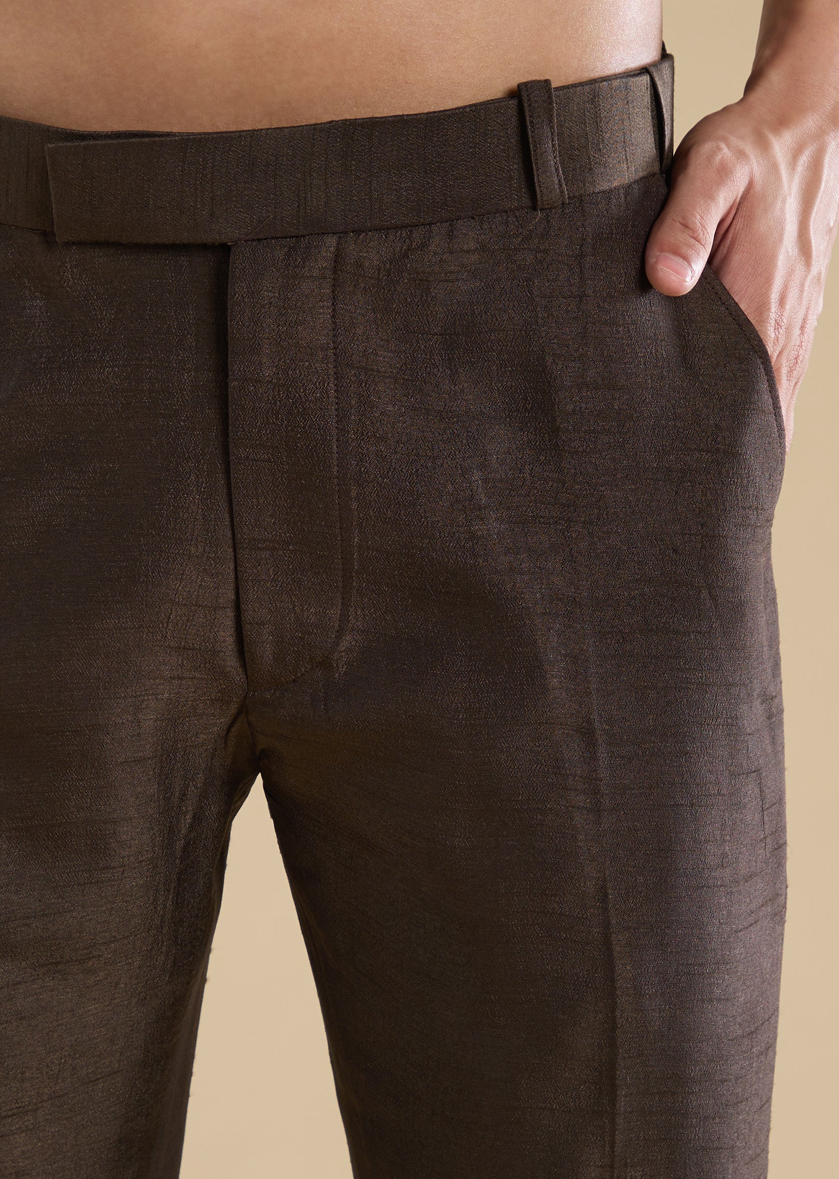 Crafted in rich velvet, this brown jodhpuri set features intricate thread, zari and zardosi embroidery. Finished with a mandarin collar, full sleeves and front hook-eye closure, it comes with a matching kurta and straight-fit mid-waist pants—perfect for mehendi, sangeet and wedding celebrations. Awarded as the Most Trusted Brand, we're delivering styles you love, just as promised.