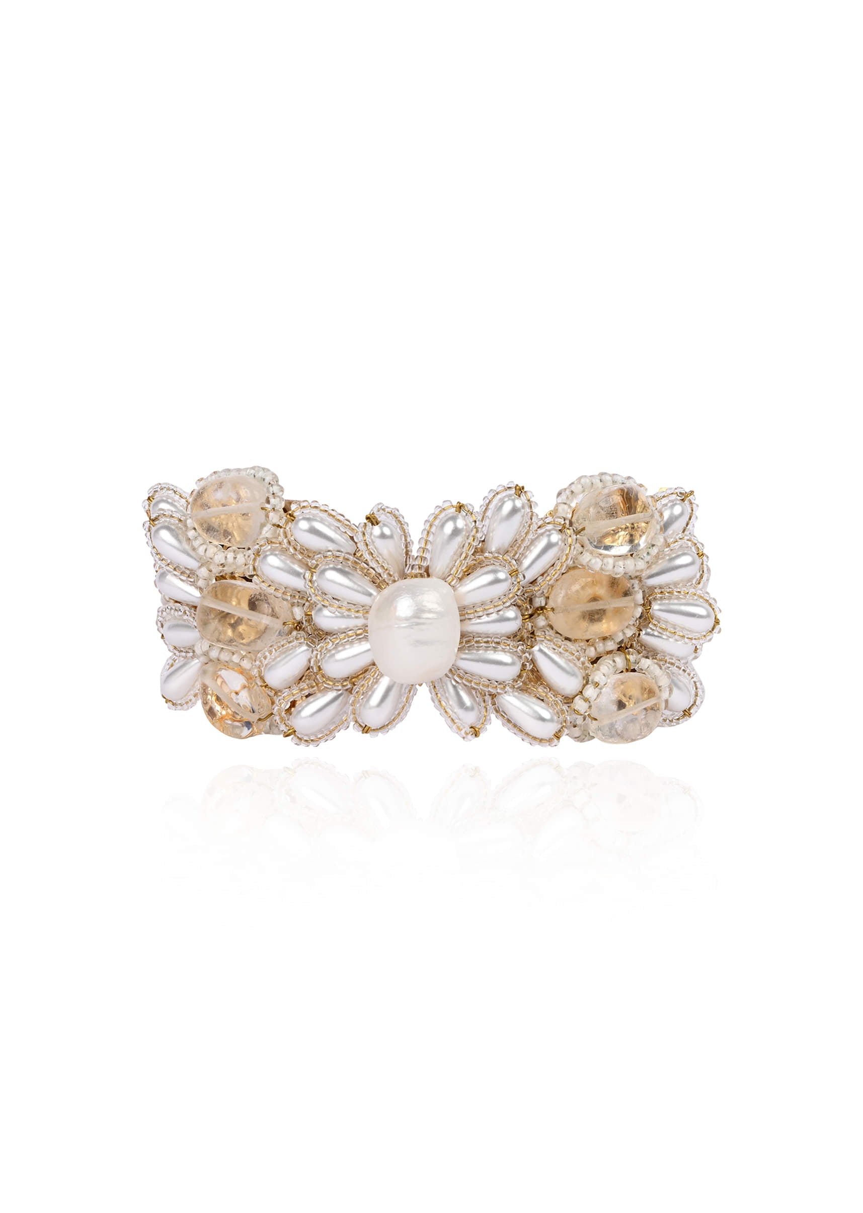 butterfly shape white pearl and oval stone all size bracelet