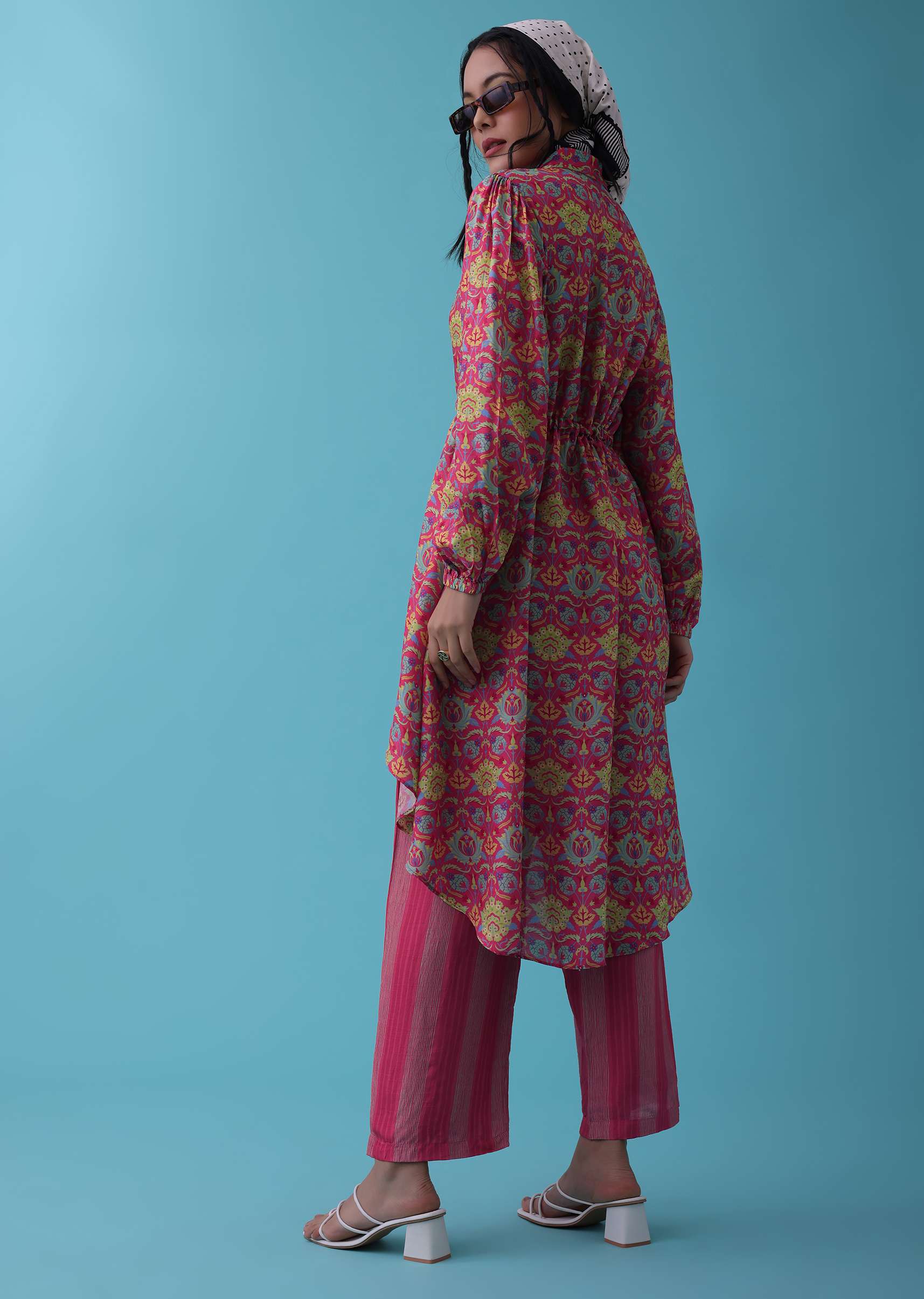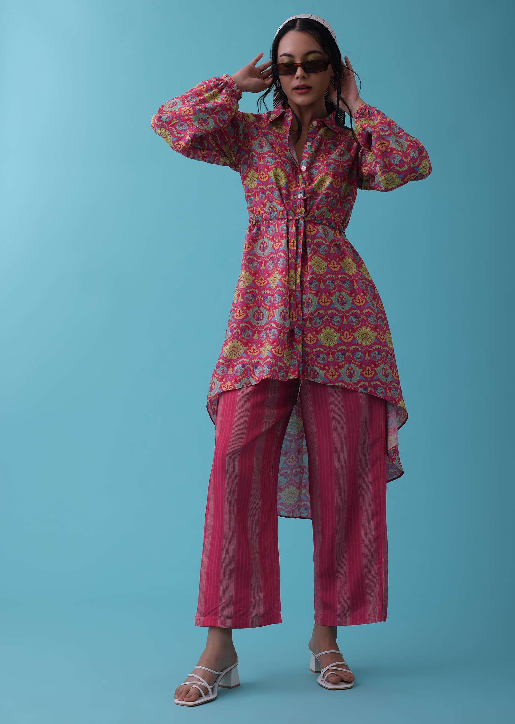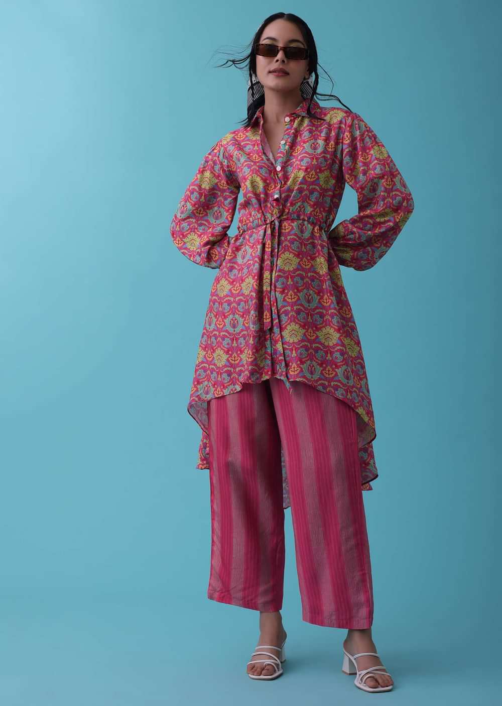 Cherry Pink Floral Printed Co-ord Set In Tussar - RE By Kalki