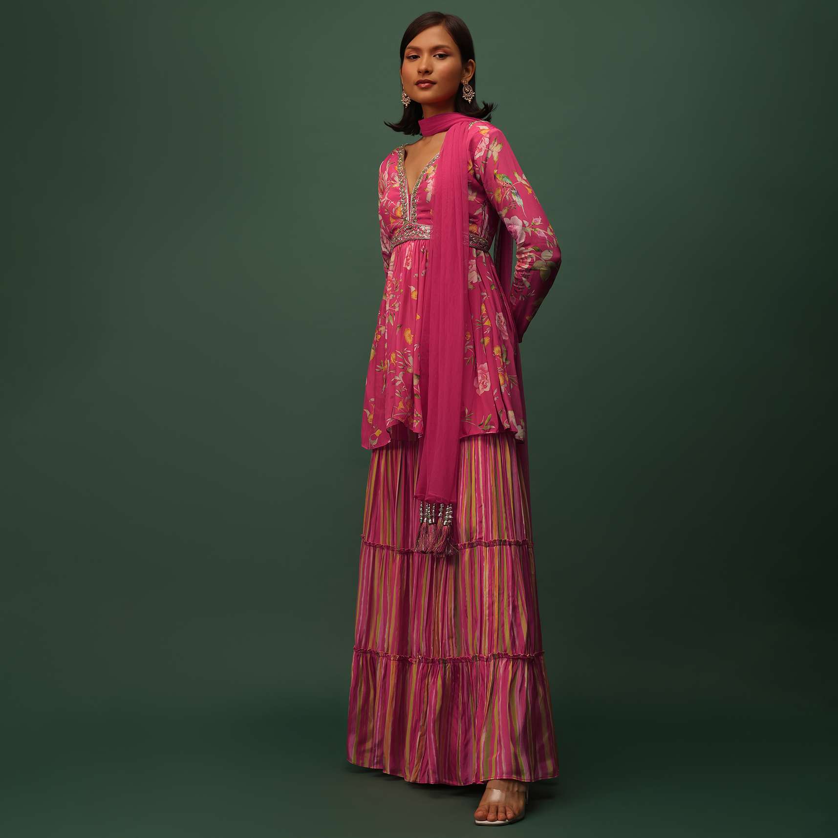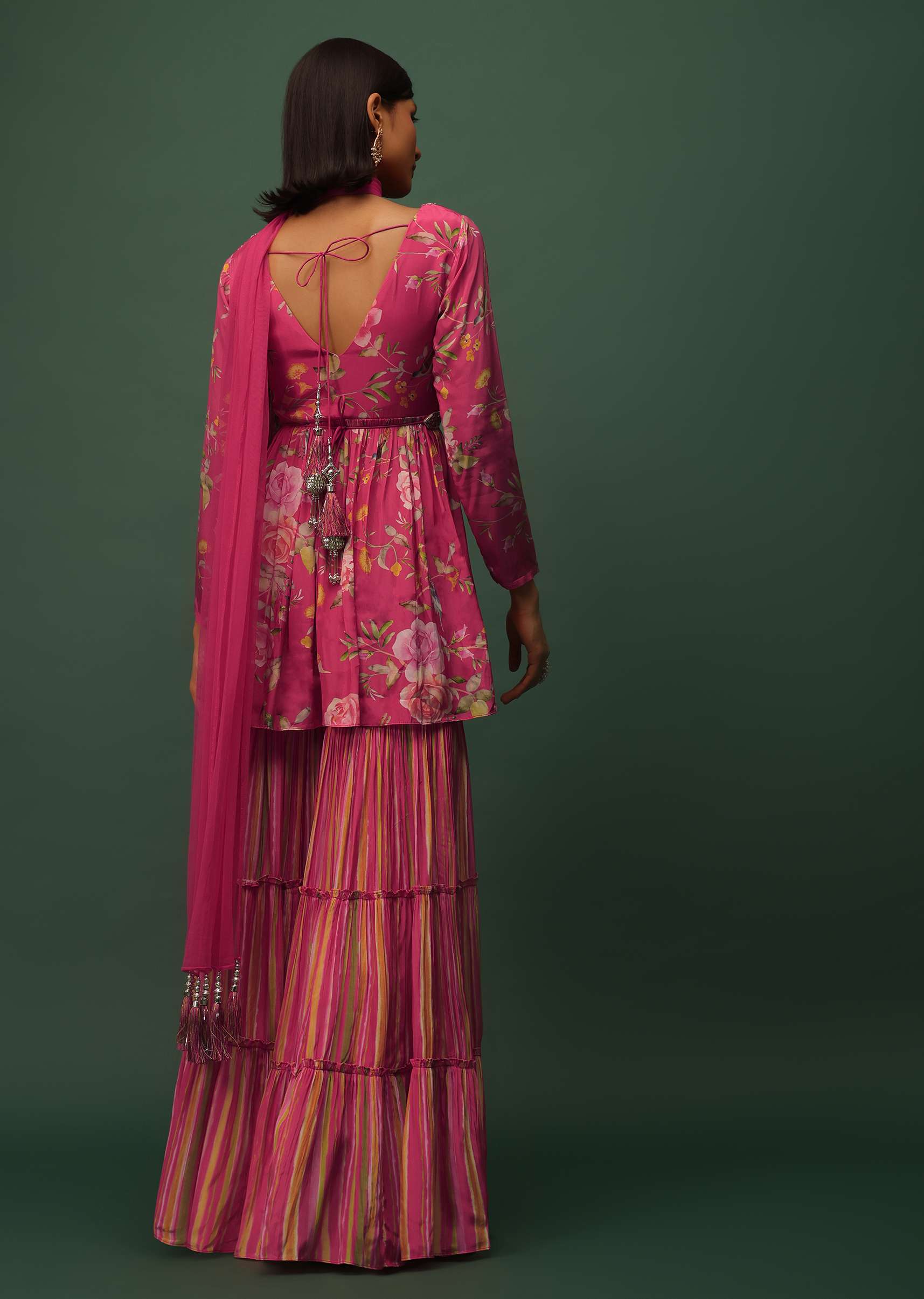 Pack Contains: 1 Peplum Top , 1Belt , 1 Sharara, 1 Dupatta