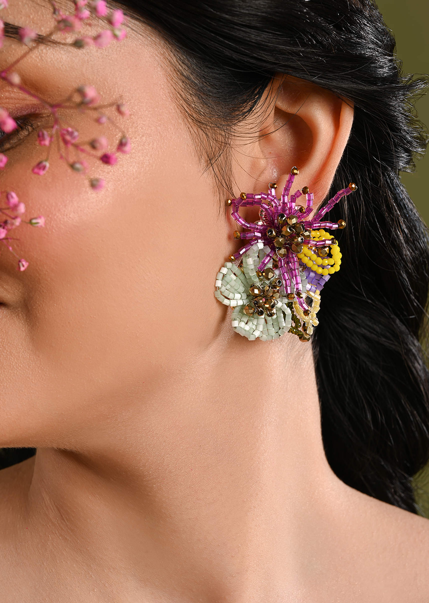 Colourful Crystal Beaded Flower Abstart Big Studs