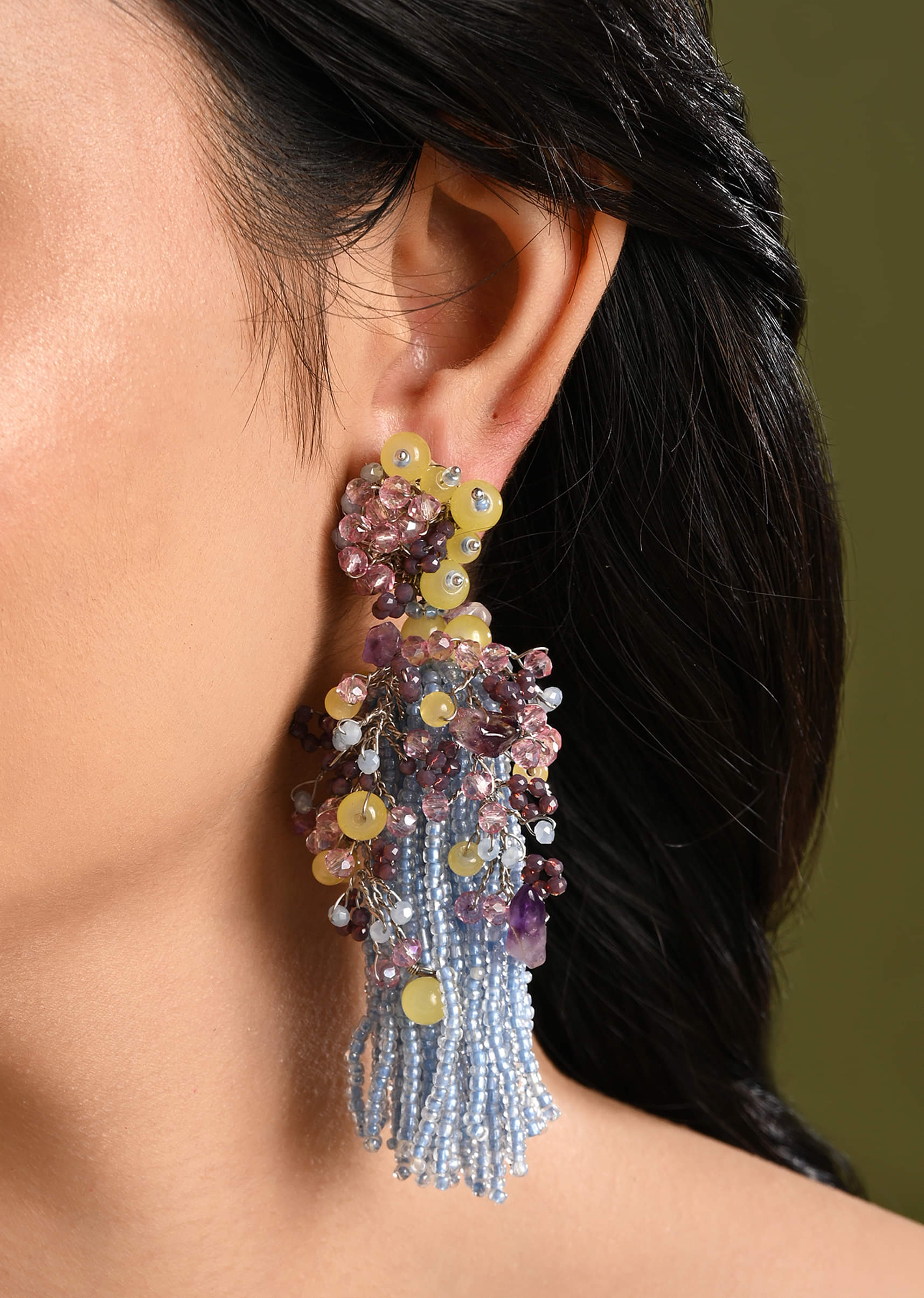 Colourful Stone Long Jhumka Earrings