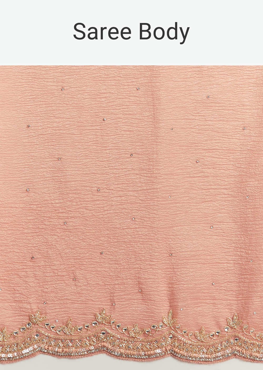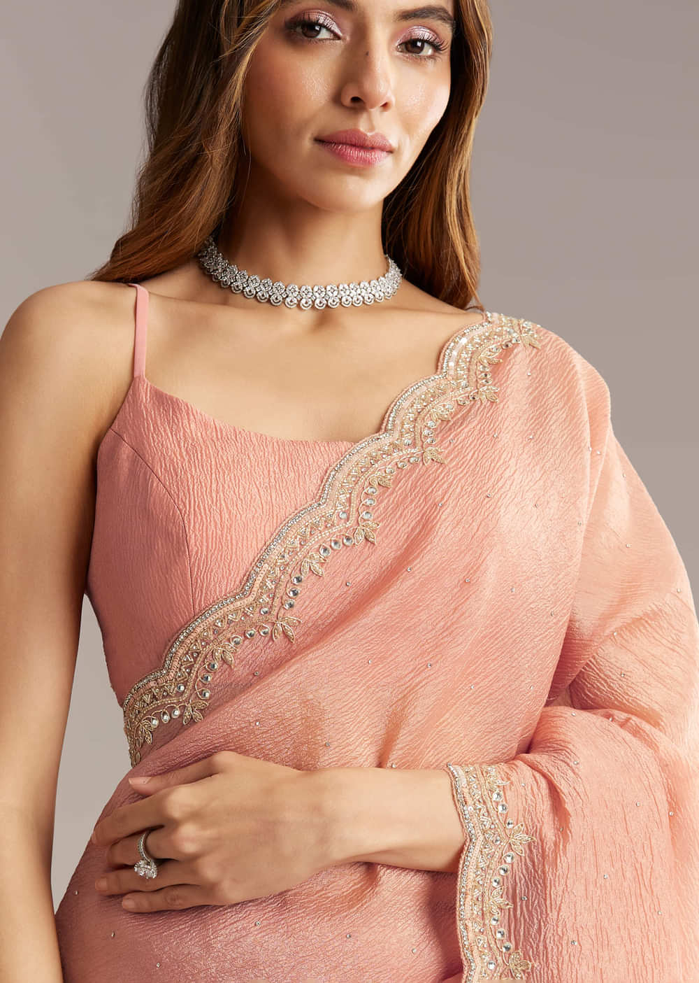 Copper Tissue Saree With Scallop Border And Sequin Embroidery